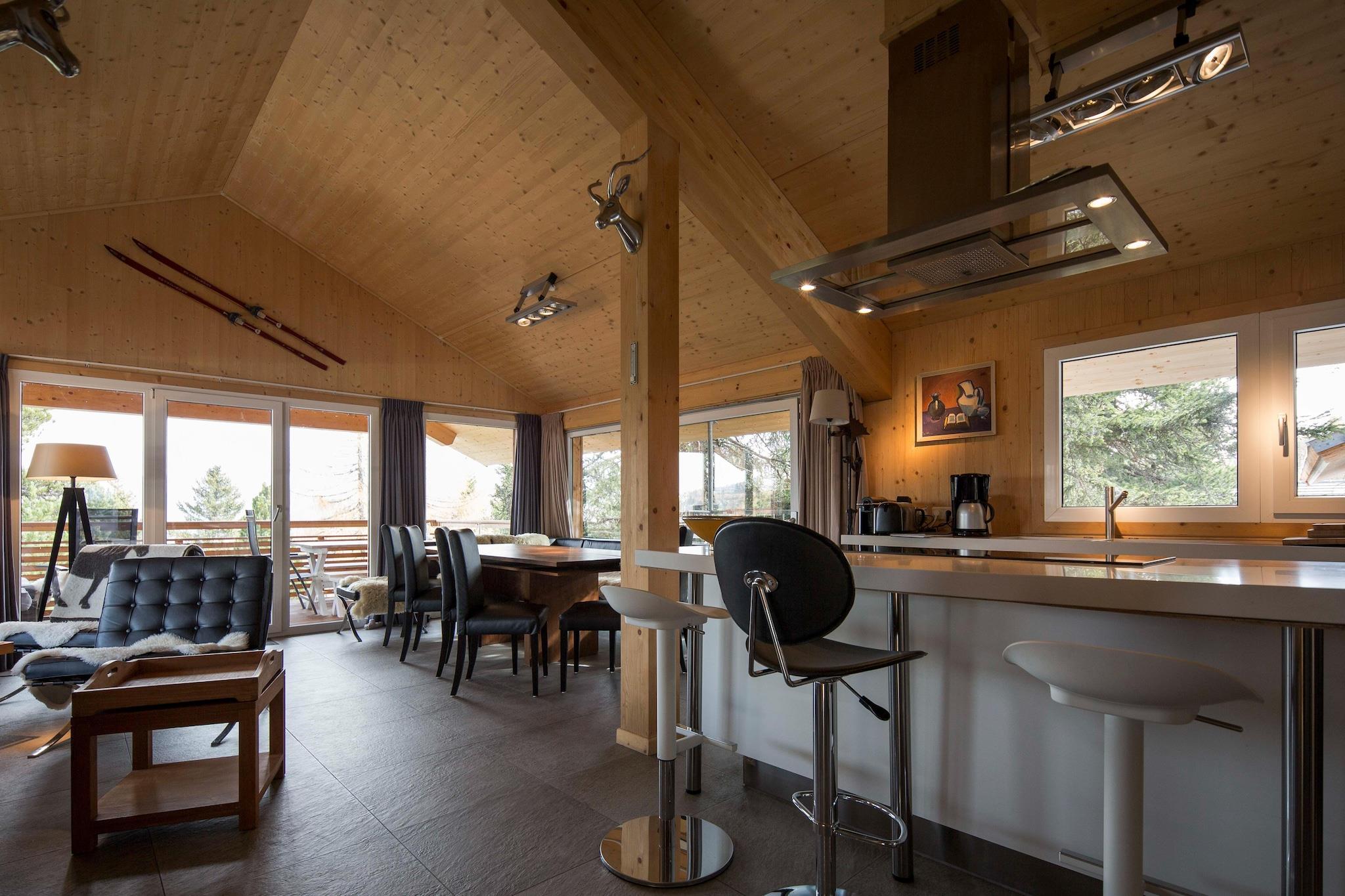 Fritliggende design hytte i Alpenpark med en fænomenal udsigt over de omkringliggende høje bjerge, dejlig naturlig beliggenhed i en pinjeskov i en højde på 1800 meter. Gennem sin unikke beliggenhed på bjerget har hver hytte en fantastisk udsigt over panoramaet af Gurktaler Alperne. Alpenparken er nået på ski. Den fritliggende træ design chalet blev bygget i 2011 og forsynet med alle de luksus du kan forestille dig. Den rummelige 5-stjernede chalet har 4 soveværelser, 1 badeværelse og eget wellness-område med egen infrarød sauna, boblebad (med dejlig udsigt over bjergene!), Brusebad, dobbeltvask og dampkabine. I stueetagen af denne hytte finder du en rummelig stilfuld stue med åbent designkøkken, rummeligt opholdsområde, spisekrog og endda en gas pejs til de hyggelige vinteraftener. Fra stuen har du adgang til altanen. Fra hytten og de forskellige terrasser har du en storslået udsigt over bjergene. Østrigs bedst bevarede hemmelighed er uden tvivl Turracher Höhe, bjergpaset, der forbinder Kärnten og Steiermark. Her er du omgivet af bjergets smukke indretning , snoede veje og maleriske landsbyer. Turracher Höhe er kendt som et af de mest attraktive feriekomplekser i Kärnten og Steiermark-regionen. Hvis du leder efter vinterunderholdning, er Turracher Höhe det rigtige sted. Det er et vidunderligt familie skiområde med mange charmerende bjergrestauranter. Højhøjden og de mange sneinstallationer garanterer perfekte sneforhold i hele vintersæsonen, som starter i slutningen af november og slutter kun i begyndelsen af maj. Om sommeren er området kendt for dets imponerende flora og fauna, de mange vandreruter, de mange aktiviteter og de tre bjergsøer, Turracher See, Schwarzsee og Gruensee. Den dejlige Turrachersee og villaen Ge center er inden for gåafstand. Der er mange butikker og restauranter der. Fordi området omkring c