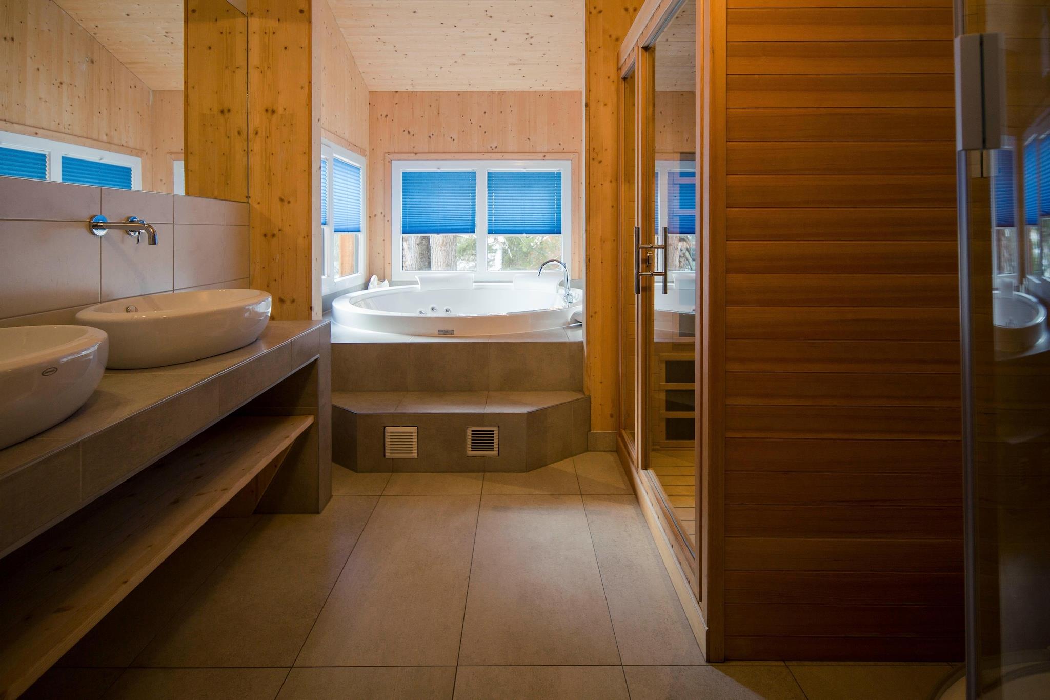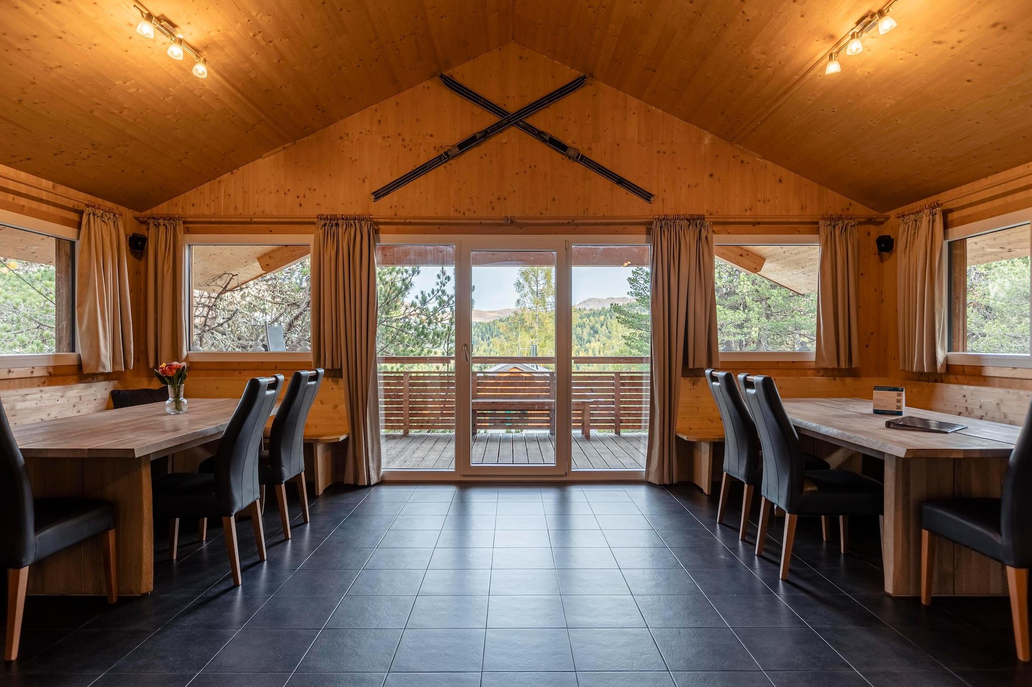 Velkommen til dit alpine paradis! Denne rummelige hytte på 140 m² i massivt træ kan komfortabelt rumme op til 16 personer, hvilket gør den til det perfekte valg til store familiefester eller grupperejser. Beliggende i en stille fyrreskov i 1.800 meters højde, kombinerer denne chalet traditionel charme med moderne bekvemmeligheder for et uforglemmeligt ophold. Nyd den betagende udsigt fra balkonen, som er et perfekt sted at nyde den naturlige skønhed i det omkringliggende område. Efter en begivenhedsrig dag kan du slappe af i den infrarøde sauna eller i det runde spabad (kun brugbart om sommeren!), som tilbyder en luksuriøs afslutning på dagen. Hyttens førsteklasses beliggenhed giver nem adgang til vandreture, skiløb og cykling, med centrum og skoven tæt på for nem udforskning. Hytten har seks indbydende soveværelser: fire med dobbeltsenge og to med køjesenge, der hver tilbyder fleksible sovemuligheder for alle. Med fire moderne badeværelser, hver udstyret med bruser, er der plads og komfort nok til hele din gruppe. Det åbne køkken er fuldt udstyret til at opfylde alle dine kulinariske behov, herunder bestik, køkkengrej, keramisk kogeplade, ovn, opvaskemaskine og køleskab, fryser. Andre faciliteter såsom brødrister, kedel og kaffemaskine er også inkluderet. For at sikre, at dit ophold kommer godt fra start, står et lille startsæt med opvaskemaskinefaner, opvaskemiddel (prøve), svamp, affaldssække, rengøringsmidler og et viskestykke klar ved din ankomst. Hold forbindelsen med gratis Wi-Fi, og nyd dine foretrukne satellit-tv-shows. Med Butler Card eller Butler Program får du personlig service, der vil gøre dit ophold endnu mere behageligt. Nyd den perfekte blanding af komfort, stil og eventyr i dette storslåede alpine tilbagetog.