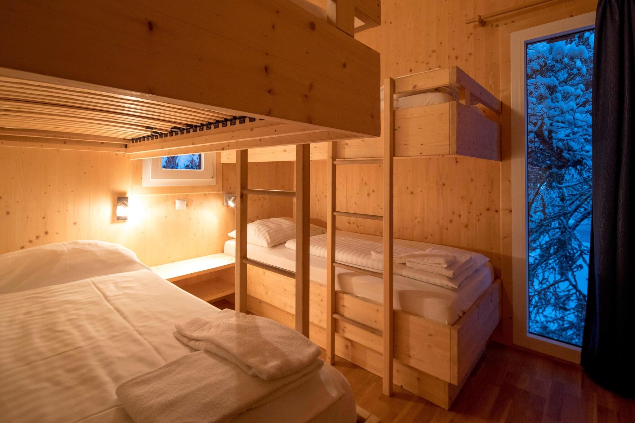 Stueetage: (Indgang , soveværelse(dobbeltseng), soveværelse(køjeseng, køjeseng, balkon), Soveværelse med badeværelse(dobbeltseng, bruser, toilet, balkon), Soveværelse med badeværelse(dobbeltseng, bruser, toilet), badeværelse(hottub, dampbruser, infrarød sauna, toilet), Internetadgang) På 1. etage: (Stue(Fjernsyn, spisebord, pejs, sofahjørne, DVD-afspiller), åbent køkken(kogeplade(Komfur med fire kogeplader, glaskeramisk), elkedel, brødrister, kaffemaskine(espresso, kaffetragt), ovn, mikrobølgeovn, opvaskemaskine , køle-fryseskab), soveværelse(køjeseng, køjeseng), soveværelse(dobbeltseng), badeværelse(bruser, toilet, føntørrer), balkon) skiopbevaring, hottub, skistøvlevarmere, varme(central), havemøbler