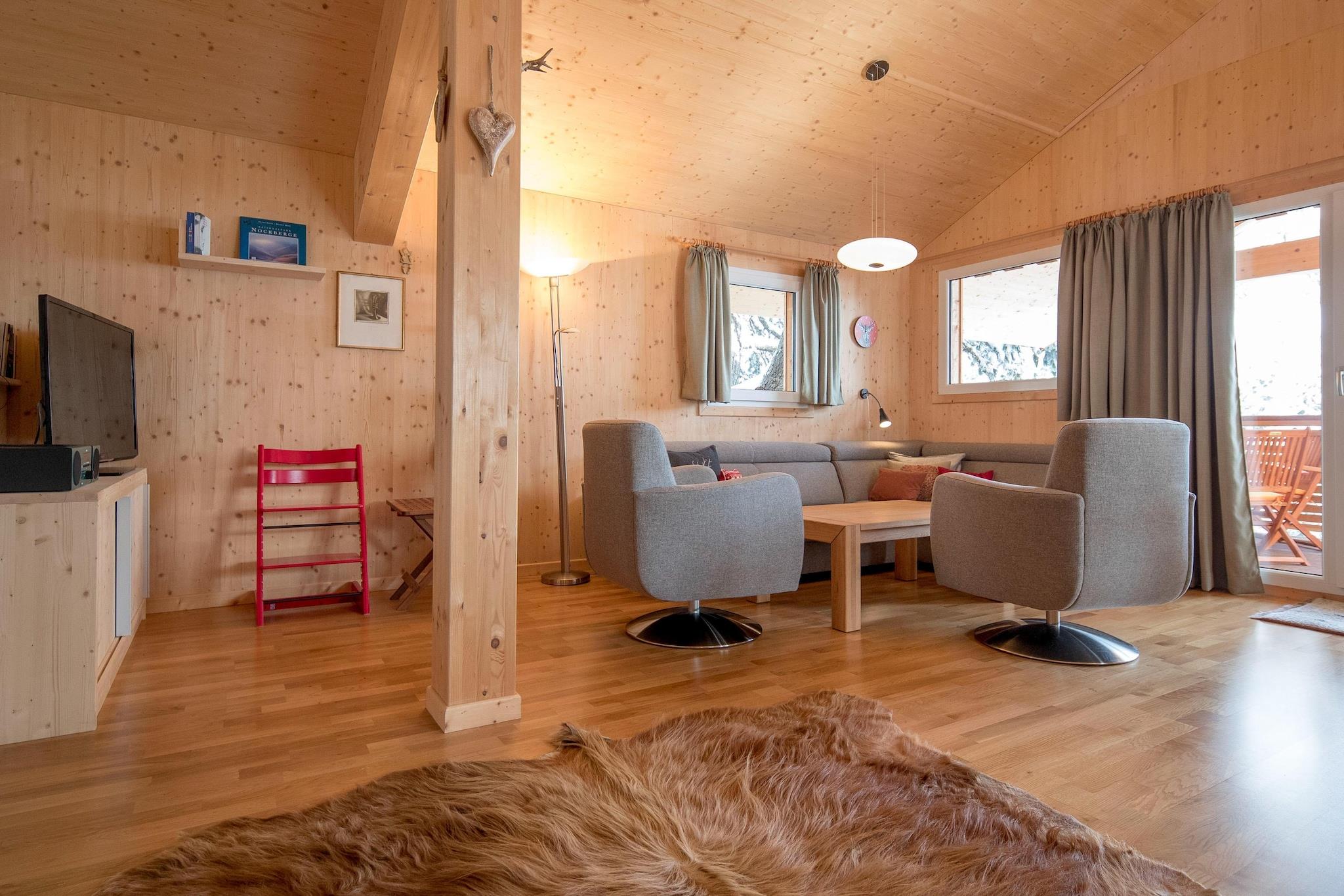 Oplev det perfekte alpine tilflugtssted i denne charmerende 130 m² massive træhytte, designet til komfortabelt at rumme op til 12 gæster. Beliggende i en fredfyldt fyrreskov på 1.800 meter, tilbyder denne rummelige hytte en blanding af rustik elegance og moderne komfort. Nyd panoramaudsigten over bjergene fra balkonen, et perfekt sted at slappe af og nyde den omkringliggende naturlige skønhed. Slap af efter en dag med eventyr i den finske sauna eller nyd i boblebadet, som begge tilbyder en beroligende afslutning på din dag. Beliggende tæt på vandrestier, skiløjper og cykelruter, er denne hytte den ideelle base for at udforske den naturlige skønhed og udendørs aktiviteter i regionen Hytten har fem smukt indrettede soveværelser: fire med dobbeltsenge og et med to køjesenge, hvilket giver fleksible sovearrangementer for familier eller grupper. Tre moderne badeværelser med brusere sikrer rigelig bekvemmelighed og privatliv for alle gæster. Det åbne køkken er fuldt udstyret til at imødekomme alle dine kulinariske behov, herunder bestik, køkkengrej, en keramisk kogeplade, ovn, opvaskemaskine og et køleskab med fryser. Yderligere bekvemmeligheder omfatter en brødrister, elkedel og kaffemaskine. For at sikre en problemfri ankomst vil der blive stillet et lille startsæt til rådighed, inklusive opvaskemaskiner, opvaskemiddel (prøve), svamp, affaldsposer, rengøringsmidler og et viskestykke. Hold forbindelsen med gratis Wi-Fi og nyd underholdningsmuligheder med satellit-tv. Hytten inkluderer også en e-ladestation, der kan bruges til en ugentlig fast takst. For yderligere information, kontakt venligst receptionen ved ankomsten. Et Butler-kort eller Butler-program er inkluderet for at give personlig service og forbedre dit ophold. Oplev komfort, bekvemmelighed og betagende alpine udsigt i denne udsøgte hytte.
