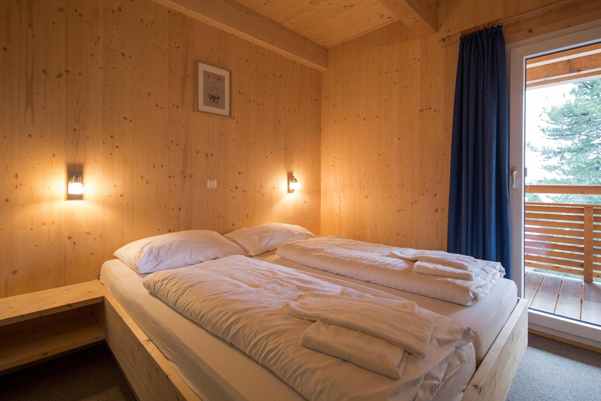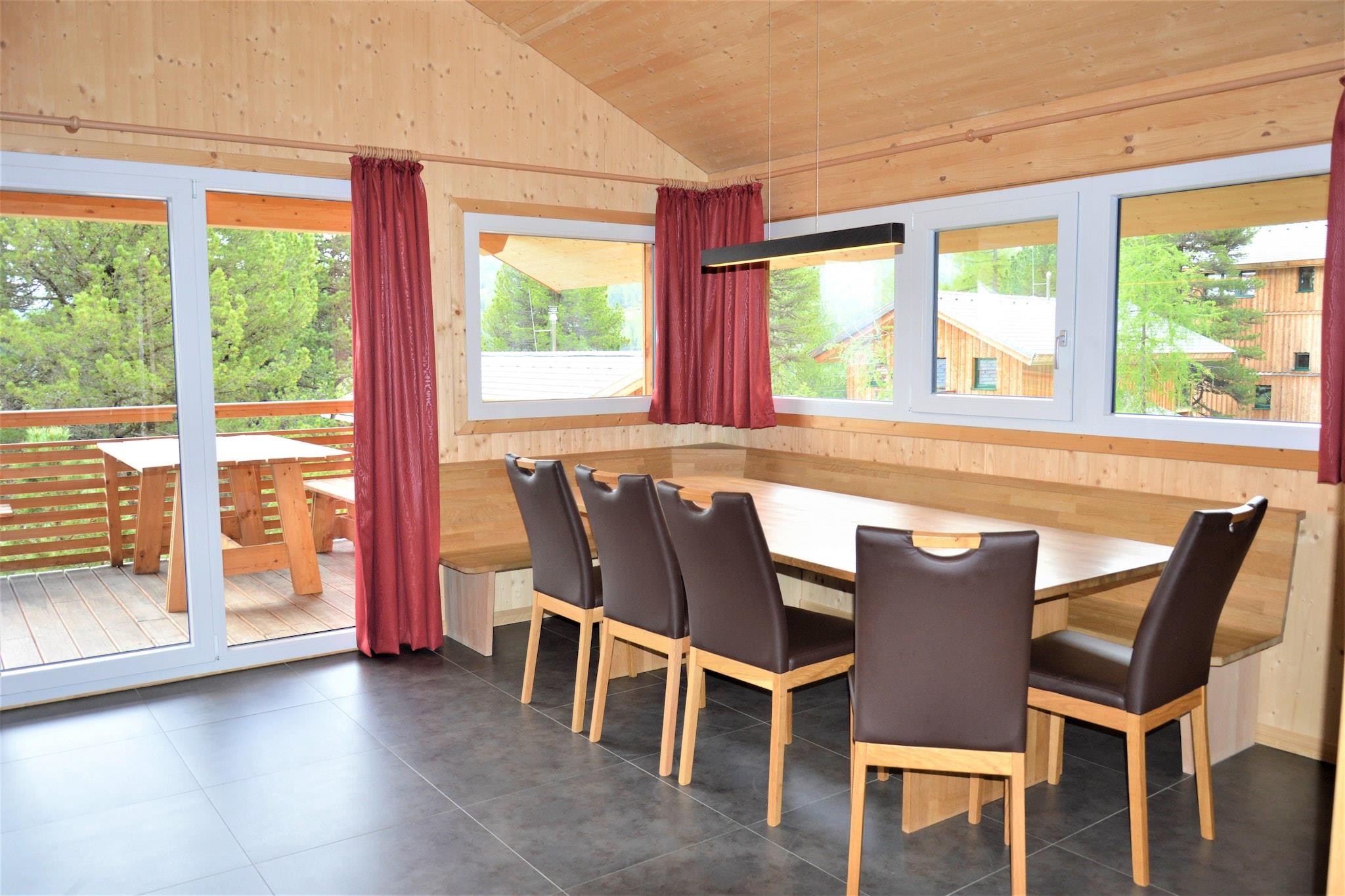 Velkommen til dit alpine tilbagetog i denne rummelige 140 m² massive træhytte, designet til at rumme op til 12 gæster i komfort og stil. Beliggende i den fredfyldte fyrreskov cirka 1.800 meter over havets overflade, tilbyder denne charmerende hytte en perfekt blanding af rustik charme og moderne bekvemmeligheder. Hytten er perfekt beliggende for udendørsentusiaster og er ideelt placeret til vandreture, cykling og skiløb, med skisportsstedet kun en kort afstand. Den omkringliggende fyrreskov tilbyder en malerisk kulisse for dine alpine eventyr. Hytten har fem velindrettede soveværelser, heraf fire med dobbeltsenge og et med to køjesenge, hvilket sikrer rigelig og fleksibel soveplads for alle gæster. Med tre badeværelser udstyret med brusere, vil du nyde bekvemmelighed og privatliv under hele dit ophold. Den hyggelige balkon giver et dejligt sted at nyde den rolige udsigt over skoven og den friske bjergluft. Efter en dag med eventyr kan du slappe af i den infrarøde sauna eller slappe af i boblebadet, som tilbyder en perfekt måde at forynge på. Det åbne køkken er fuldt udstyret til at imødekomme alle dine kulinariske behov, med bestik og køkkengrej, en keramisk kogeplade, ovn, opvaskemaskine og et køleskab med fryser. Yderligere apparater omfatter en brødrister, elkedel og kaffemaskine. For at sikre en gnidningsløs start på dit ophold, vil et lille startsæt med opvaskemaskiner, opvaskemiddel (prøve), svamp, affaldssække, rengøringsmidler og et viskestykke være klar ved ankomsten. Hold forbindelsen med gratis Wi-Fi og nyd et udvalg af kanaler på satellit-tv, hvilket gør det nemt at slappe af og underholde. Forbedre dit ophold med det inkluderede Butler Card eller Butler-program, designet til at give personlig service og sikre en mindeværdig oplevelse.
