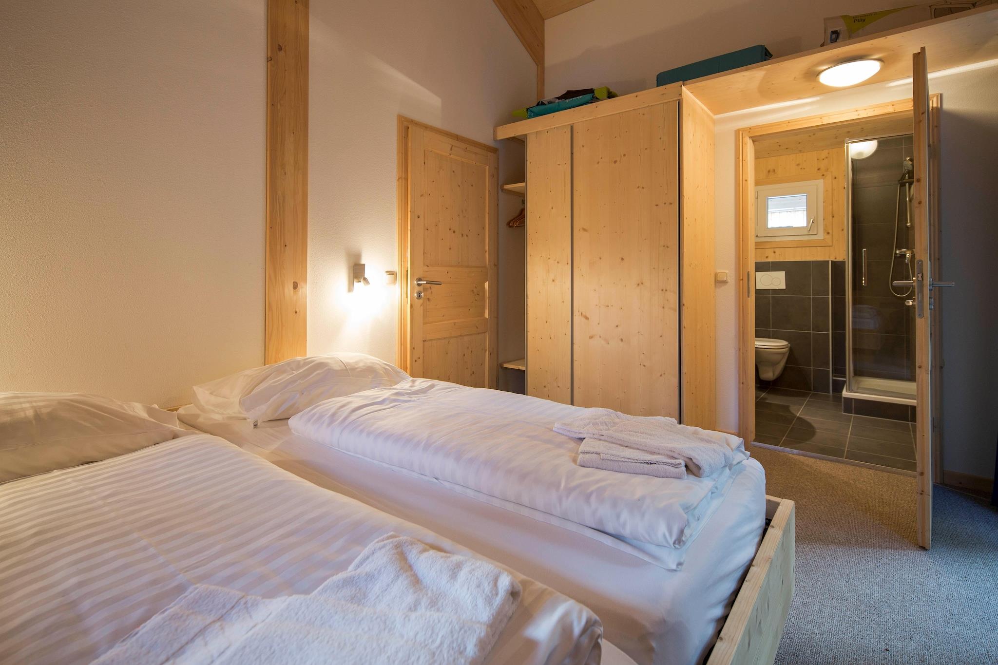 Stueetage: (Indgang , soveværelse(dobbeltseng), soveværelse(køjeseng, køjeseng), Soveværelse med badeværelse(dobbeltseng, bruser, toilet, balkon), Soveværelse med badeværelse(dobbeltseng, bruser, toilet, balkon), badeværelse(hottub, bruser, infrarød sauna, toilet), Internetadgang) På 1. etage: (Stue(Fjernsyn, spisebord, pejs, sofahjørne), åbent køkken(kogeplade(Komfur med fire kogeplader, glaskeramisk), elkedel, brødrister, kaffemaskine(espresso, kaffetragt), opvaskemaskine , køle-fryseskab), soveværelse(dobbeltseng, balkon), badeværelse(bruser, toilet, føntørrer)) vaskemaskine, skistøvlevarmere, varme(central), havemøbler, tørreskab