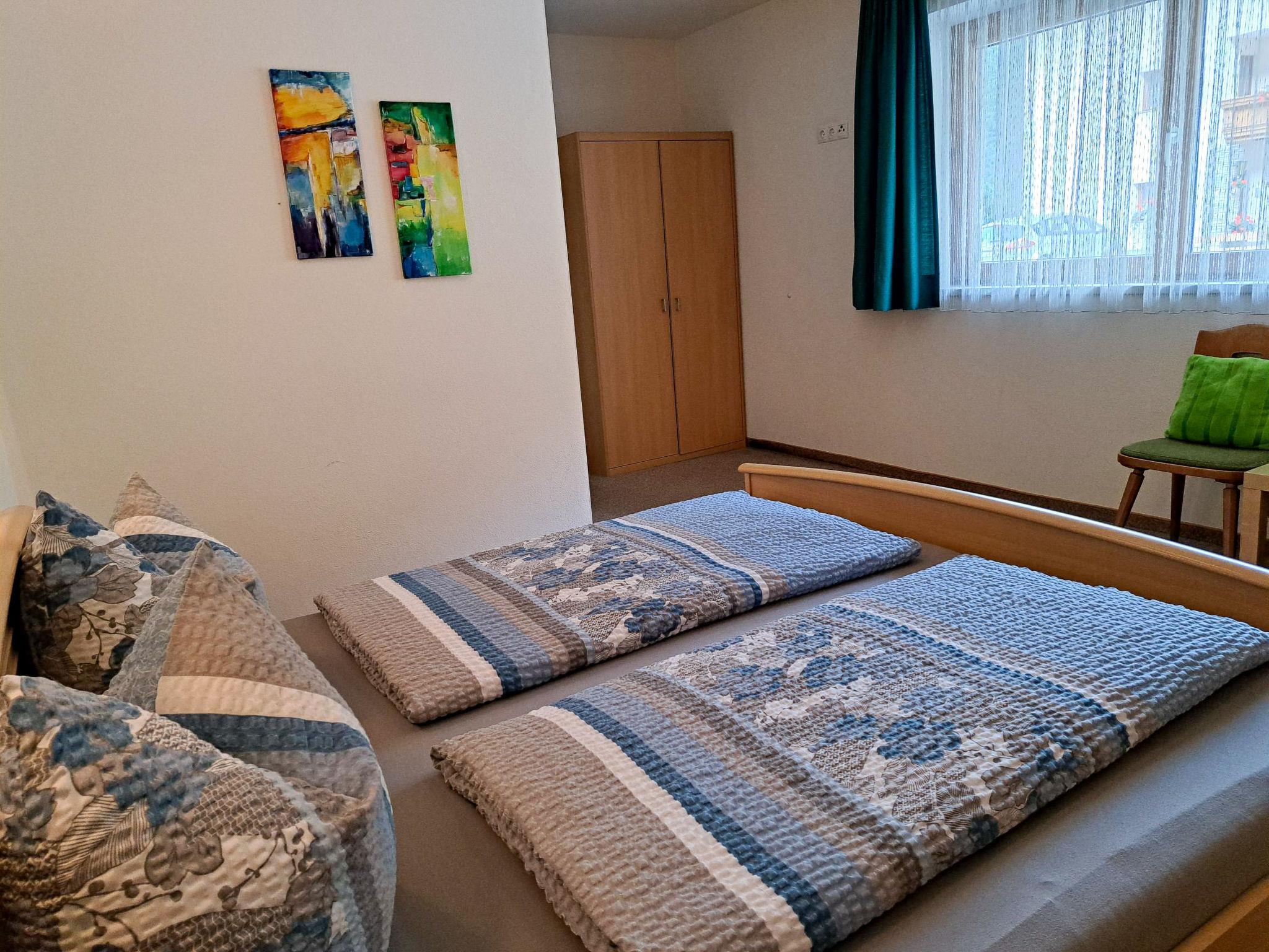 "Haus Alina", 3-room apartment 80 m2, on the ground floor. Bright, practical furnishings: 1 room with 1 bed, 1 double bed and shower/WC. 1 room with 1 bed and 1 double bed. Kitchen-/living room (oven, dishwasher, 4 ceramic glass hob hotplates, toaster, kettle, microwave, electric coffee machine) with 1 double sofabed, dining nook and satellite TV. Shower/WC. Heating. Carpet. Terrace roofed. Terrace furniture. Facilities: children's high chair, baby cot. Internet (WiFi, free). Please note: non-smokers only. Smoke alarm, fire extinguisher. When there are less than the maximum number of guests staying at the property, not all of the bedrooms will be available for use.