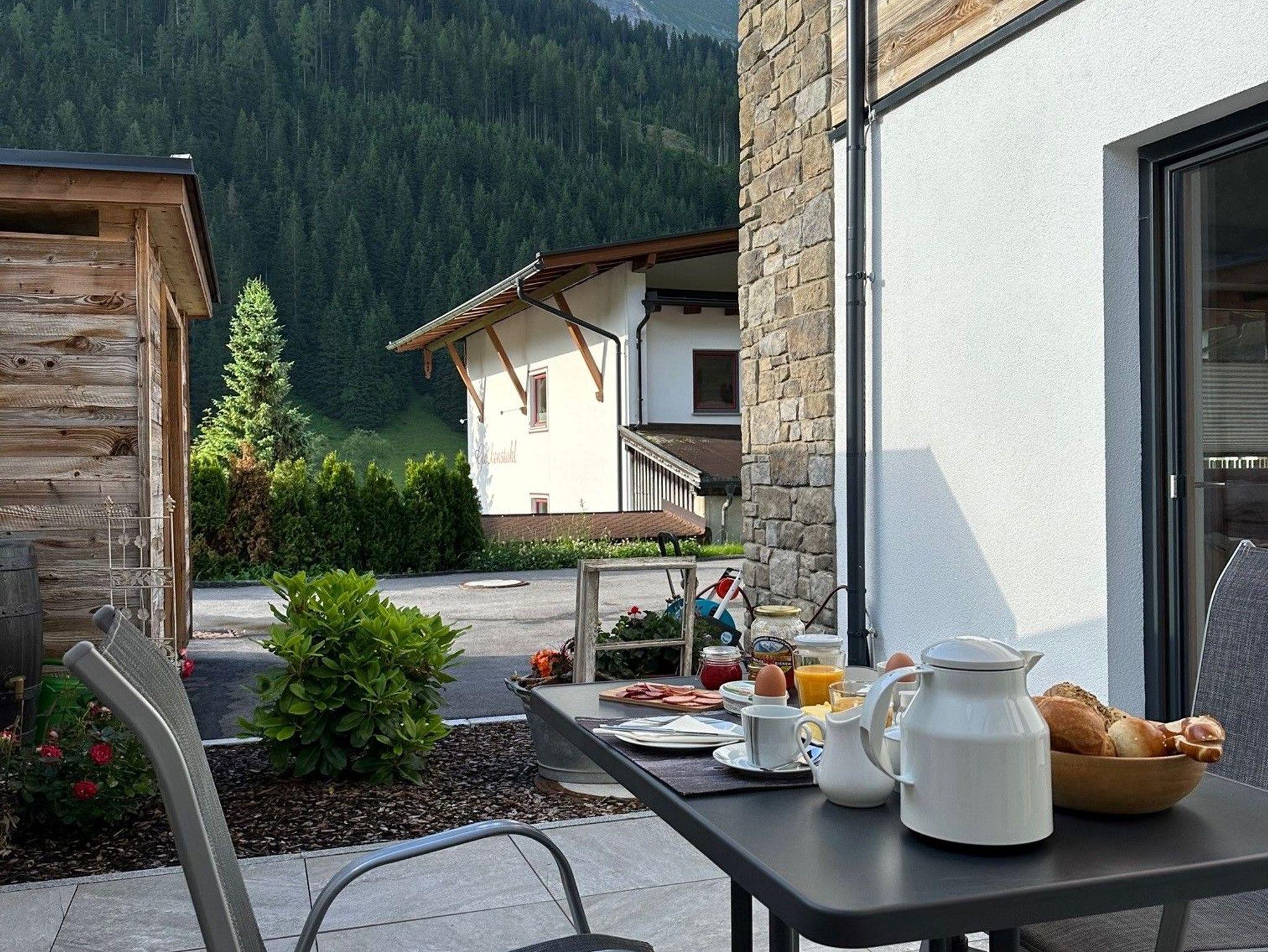 Der tägliche Brötchenservice lässt das Frühstück beim Sonnenaufgang über den Zillertaler Bergen zu einem kulinarischen Erlebnis werden.