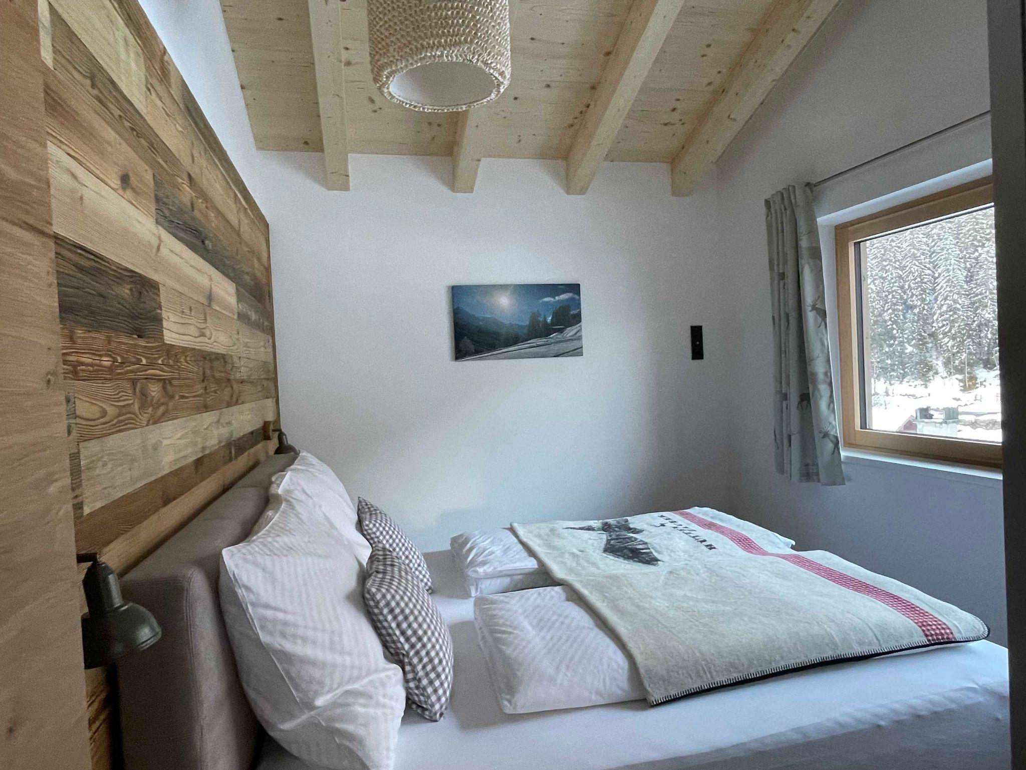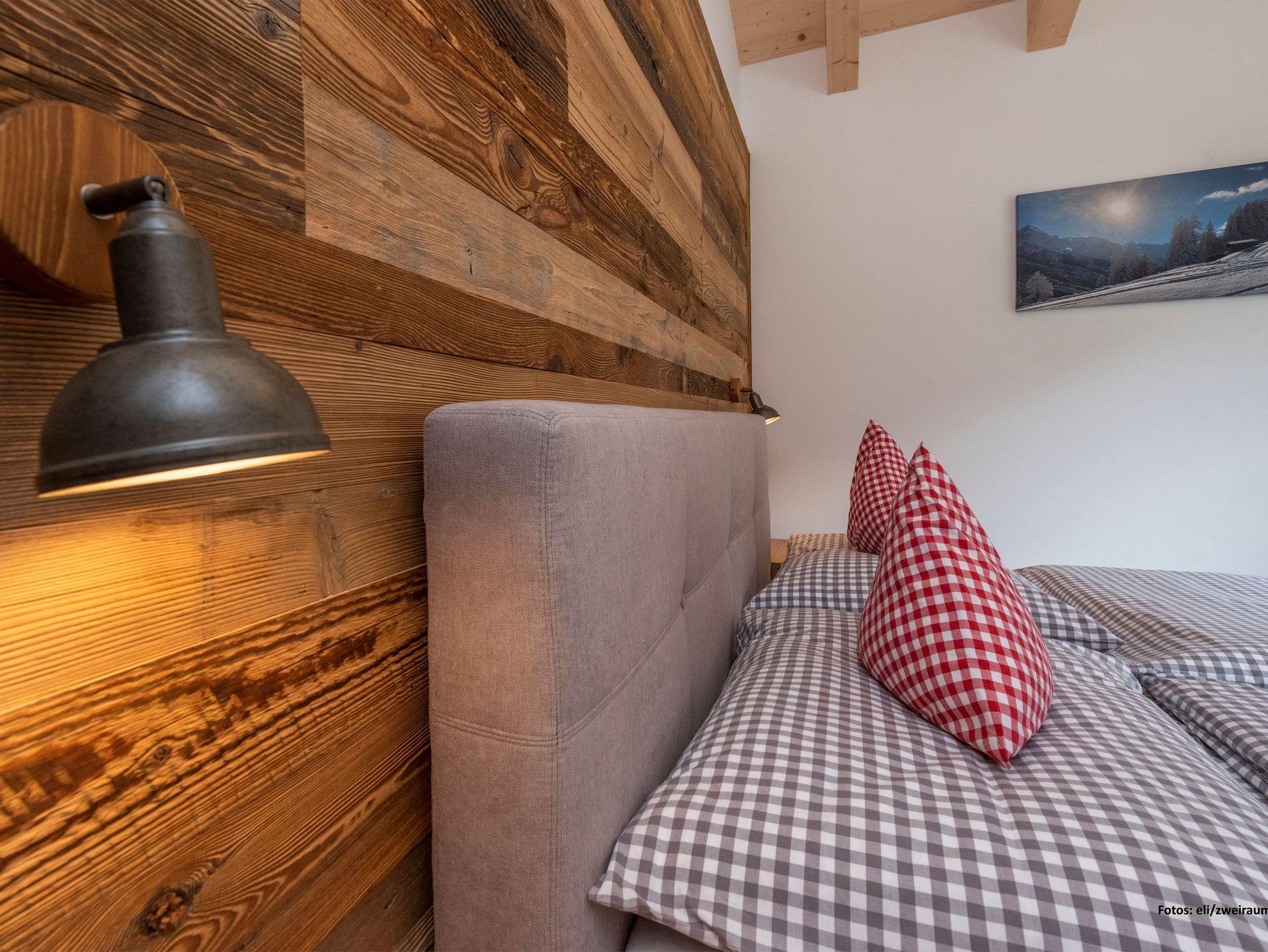 Holzböden, schöne Stoffe und eine stilvolle Einrichtung lassen die Räume gemütlich und kuschelig wirken. Der helle Sichtdachstuhl verleiht den Wohn-und Schlafräumen eine einzigartige Atmosphäre. Schön machen können Sie sich in einem geräumigen und trendigen Badezimmer mit 2 Regenduschen und Fußbodenheizung. Vom Balkon genießen Sie die Sicht auf den Hintertuxer Gletscher und die umliegenden Almwiesen.