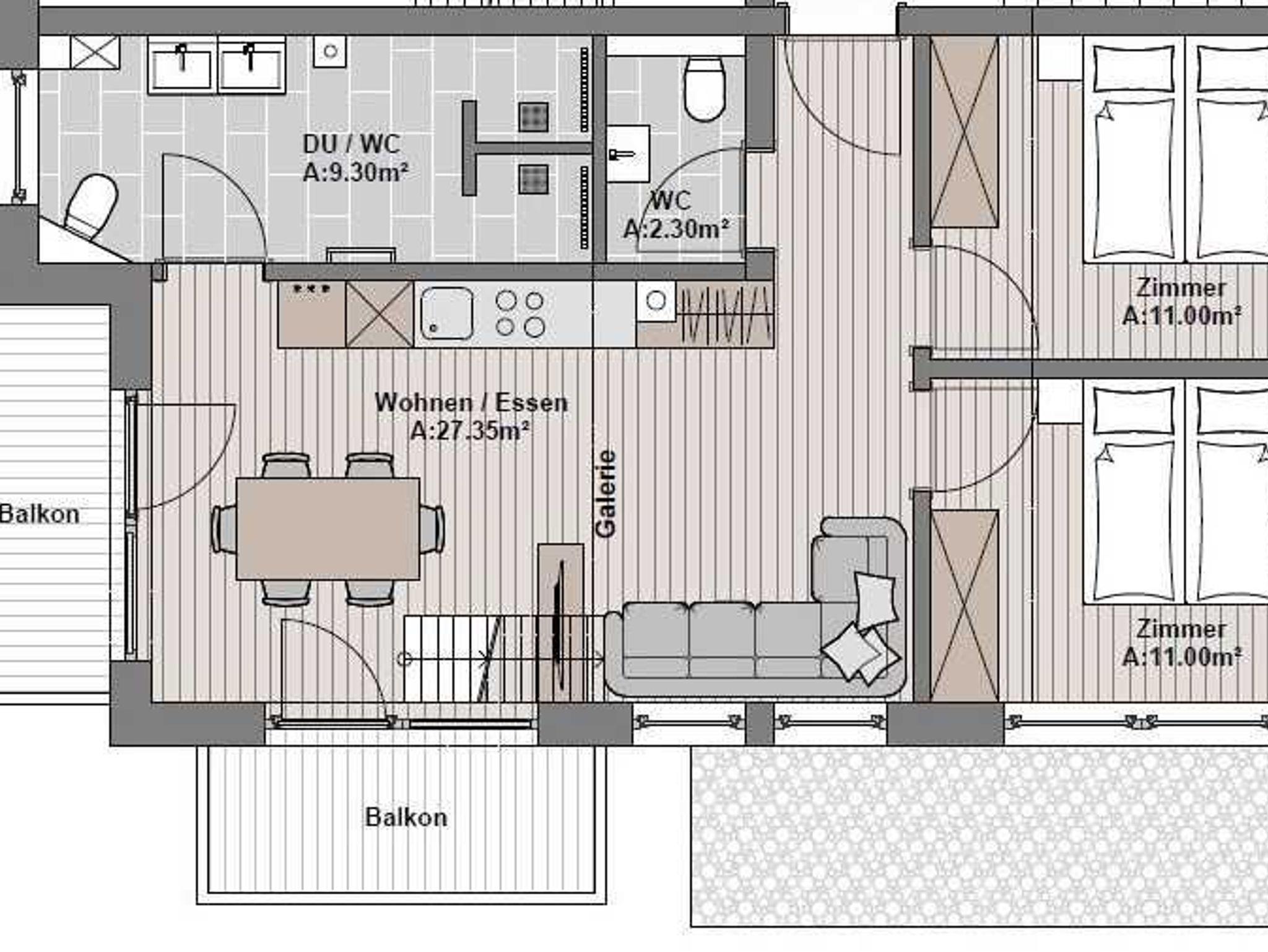 Die Galerie mit der ausziehbaren Couch lädt auch zum Entspannen und Verweilen ein.