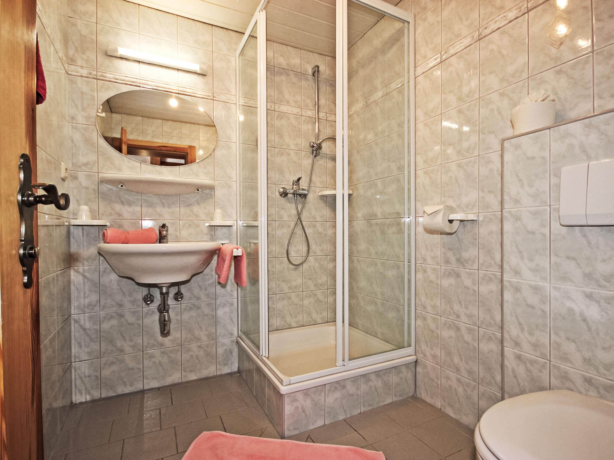 4-room apartment 130 m2, on the top floor. Partly with sloping ceilings, cosy furnishings: entrance hall. 1 double bedroom with shower/WC. 2 rooms, each room with 1 sofabed, 1 double bed and hand-basin. Walk-through room with 1 double sofabed and satellite TV (flat screen). Exit to the balcony. Kitchen (4 hot plates, oven, dishwasher, microwave, electric coffee machine, Capsules for coffee machine (Bohnen)) with dining nook. Shower, shower/WC, sep. WC. Balcony 20 m2. Barbecue. Marvellous panoramic view of the countryside. Facilities: children's high chair, baby cot, hair dryer. Internet (WiFi, free). Suitable for families. Maximum 1 pet/ dog allowed. The beds will be provided according to the number of people. Instead of an enclosed bedroom, some sleeping areas are located in an open-plan area (gallery, alcove, etc.).