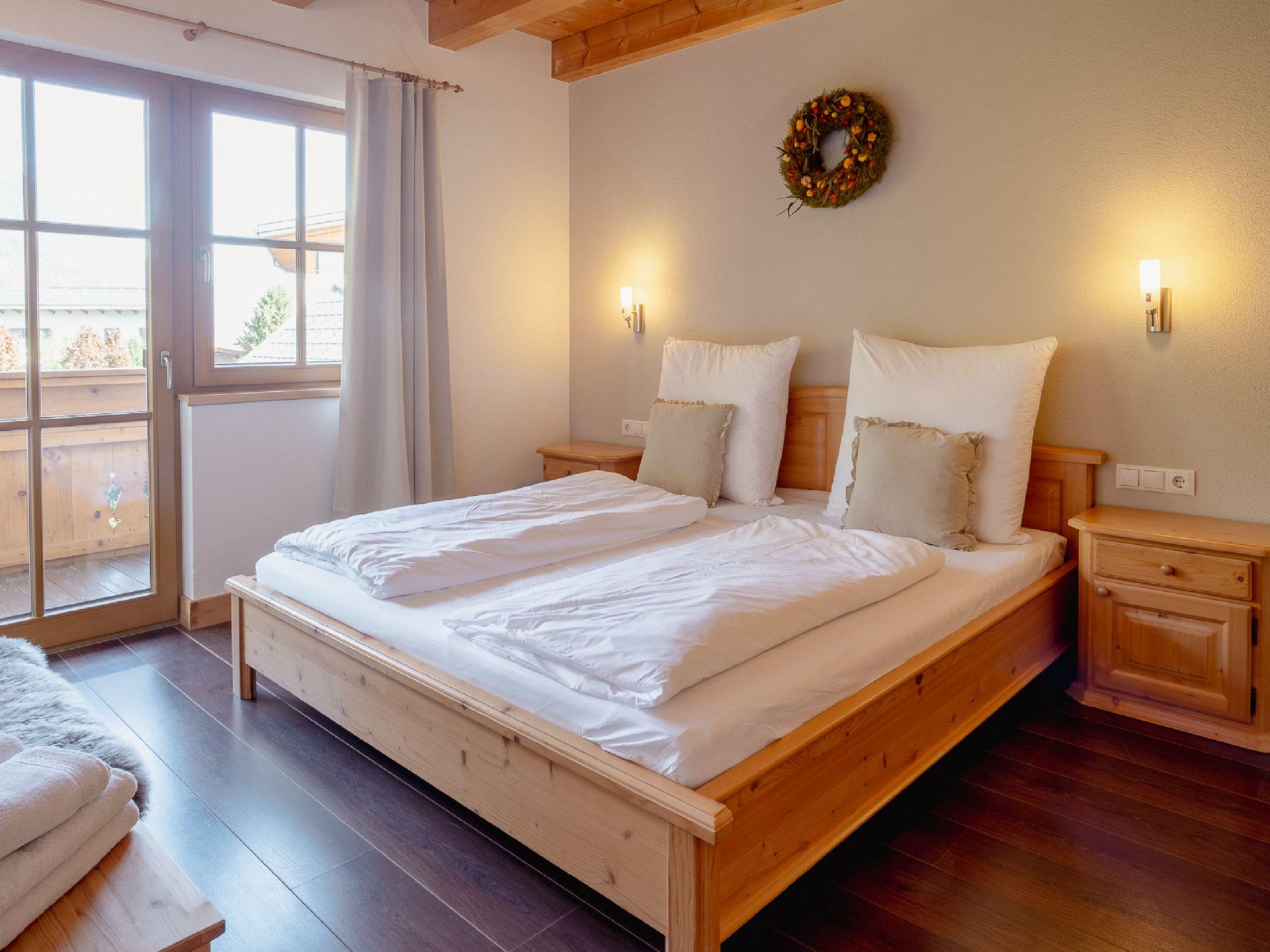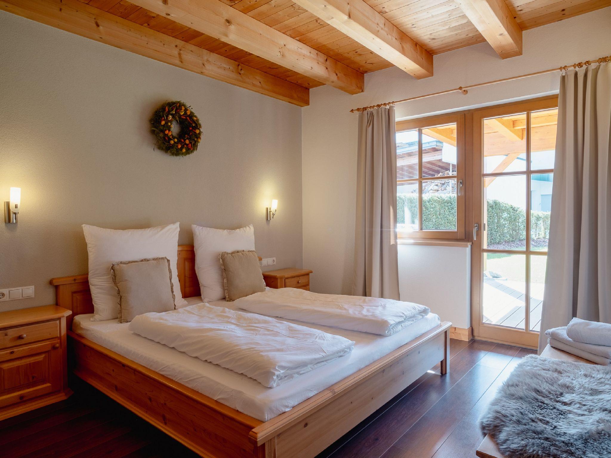 4-room apartment 100 m2, on the ground floor. Tasteful and wooden furniture furnishings: entrance hall. 3 double bedrooms. Living/dining room with satellite TV. Exit to the garden, to the terrace. Open kitchen (dishwasher, 4 induction hot plates, microwave). Shower/WC, bath/shower/WC. Underfloor heating. Comfortable furnishings in the country house style. View of the mountains and the countryside. Facilities: safe, hair dryer. Internet (WiFi). Please note: non-smoking house. Suitable for allergy sufferers, smoke alarm. Attention: More than 6 people in the apartment is not allowed!