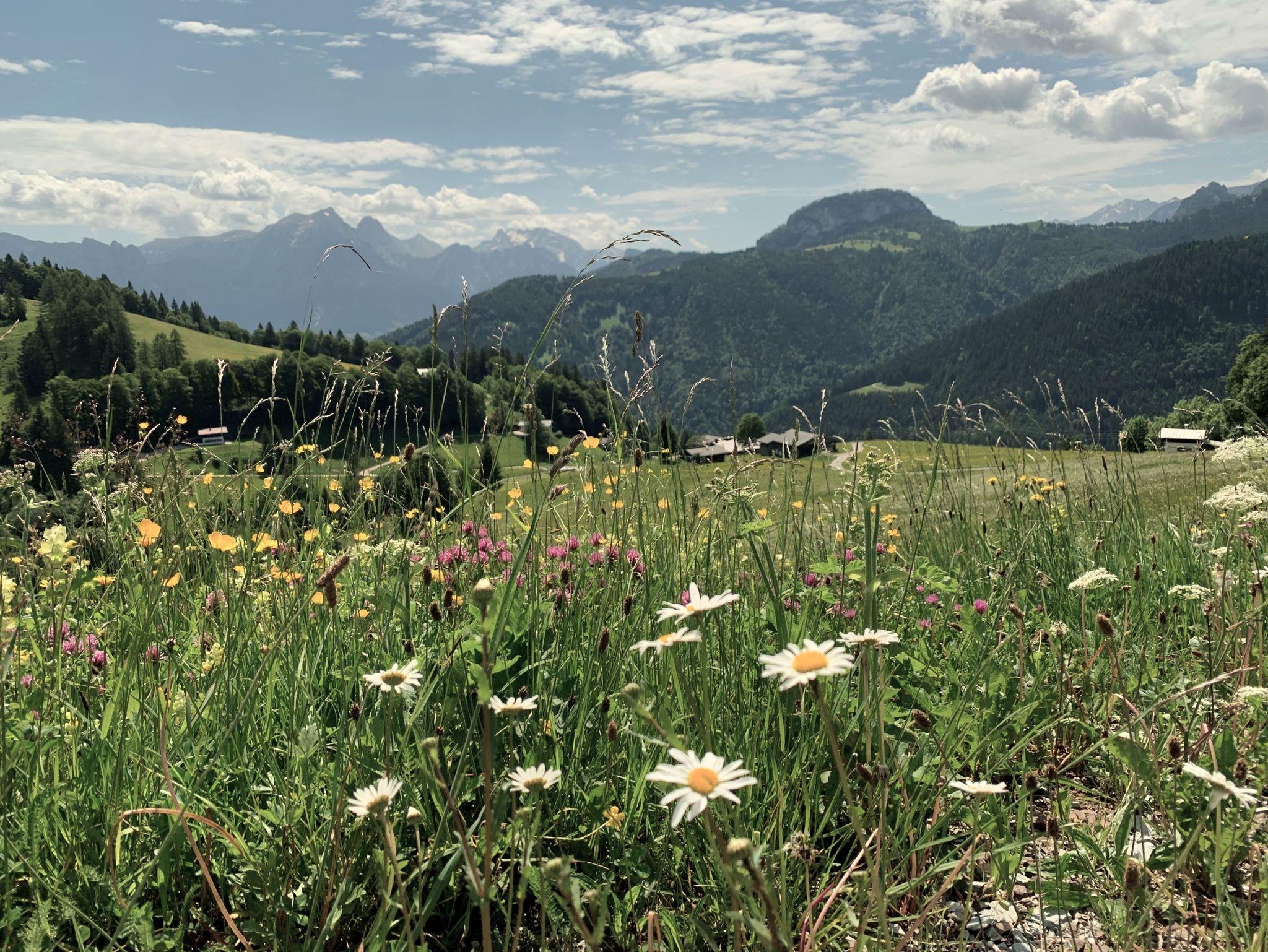 Umgeben von bunten Blumenwiesen auf einem sonnigen Hochplateau namens Moarlack im Seitental von Unken liegt unser Biobauernhof Moarhof. Hoch oben auf 1.100 Meter Seehöhen gelegen thront der Erbhof der Familie Baumgartner an einer Geländekante und bietet so ein traumhaftes Panorama.