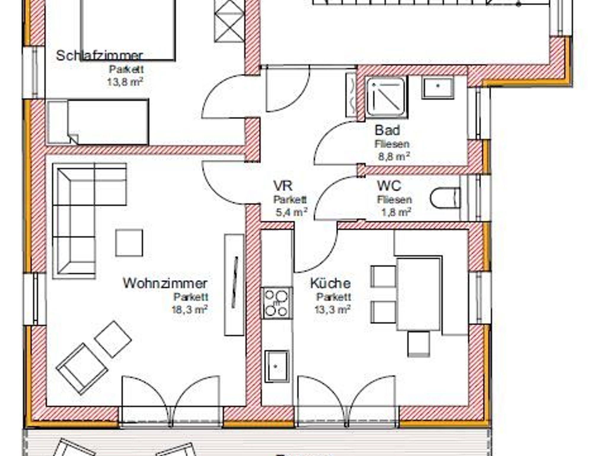 Ferienwohnung Glückszeit im 1. Stock: 65 m² (Balkon: 18m²)