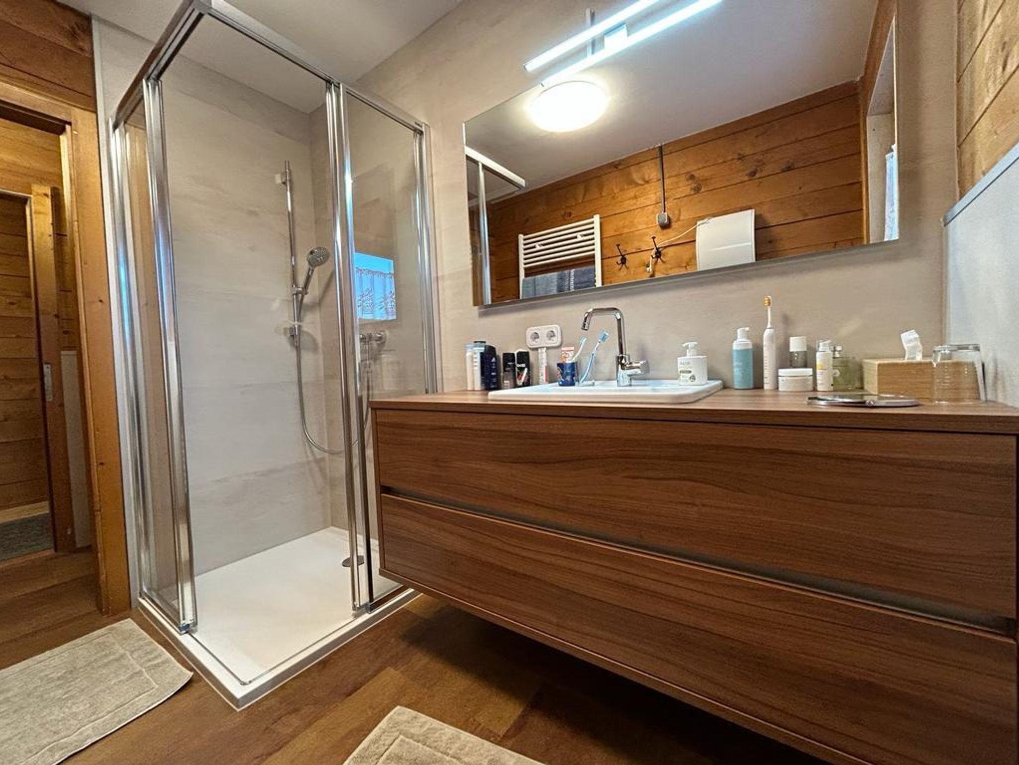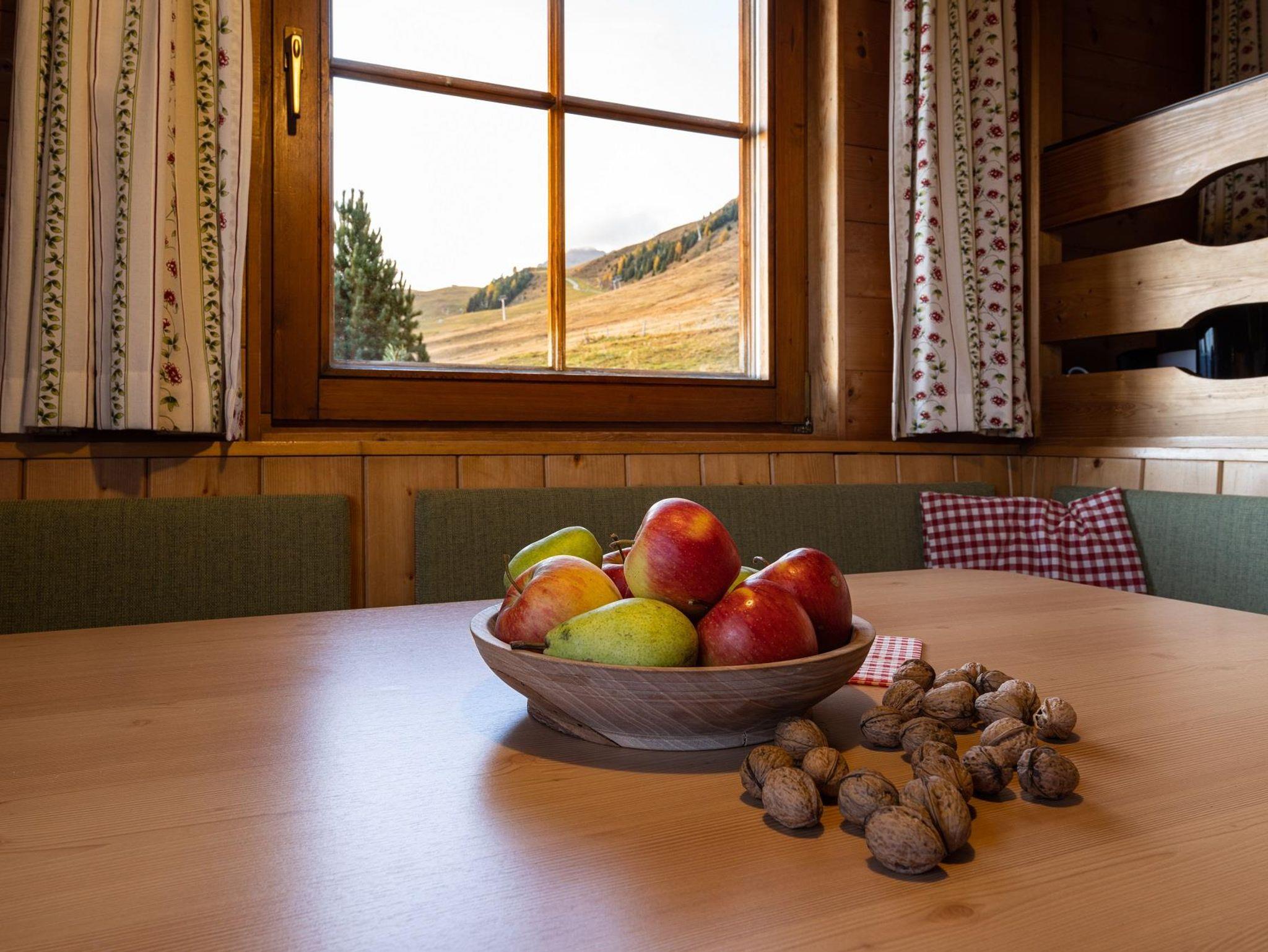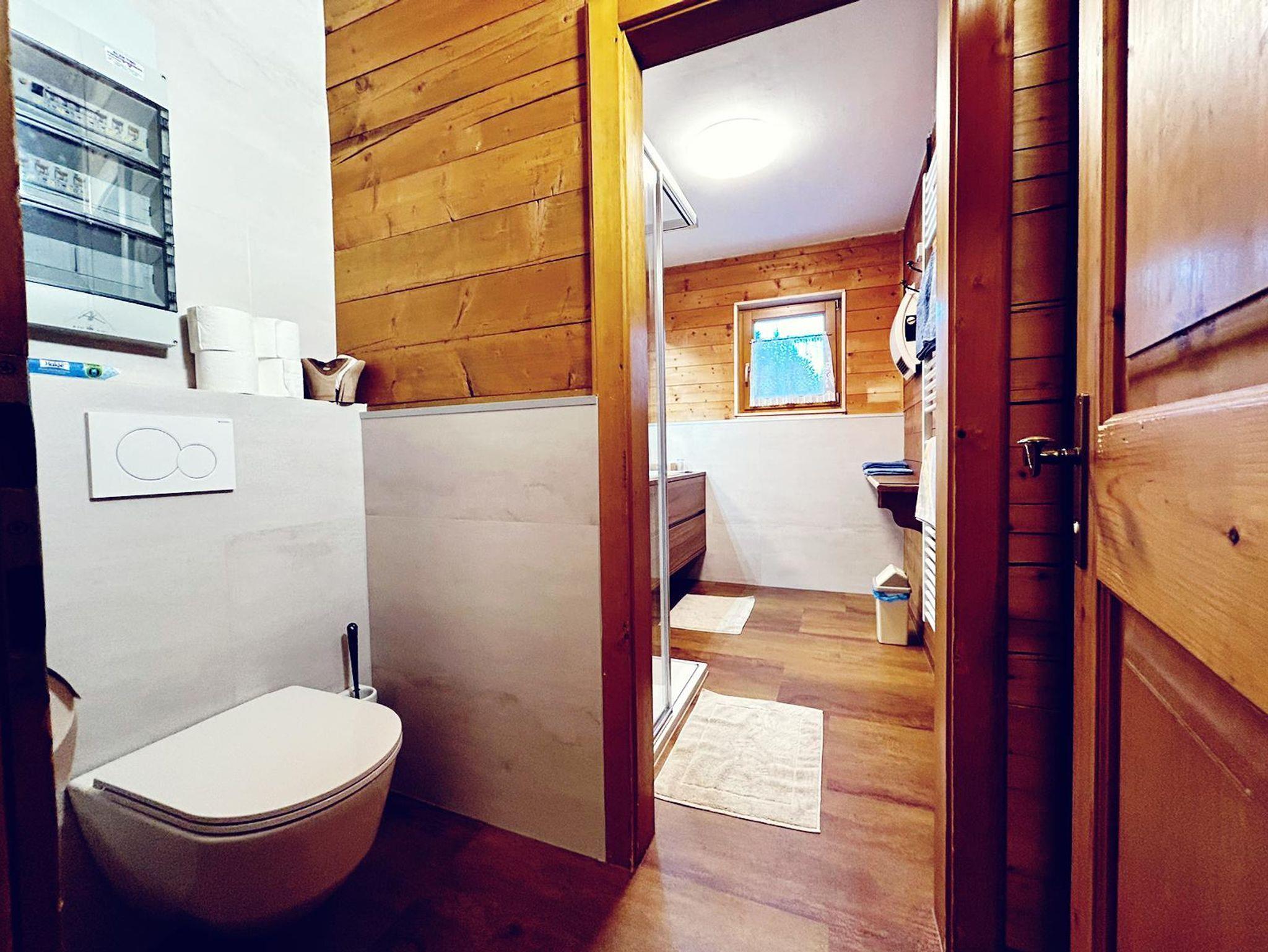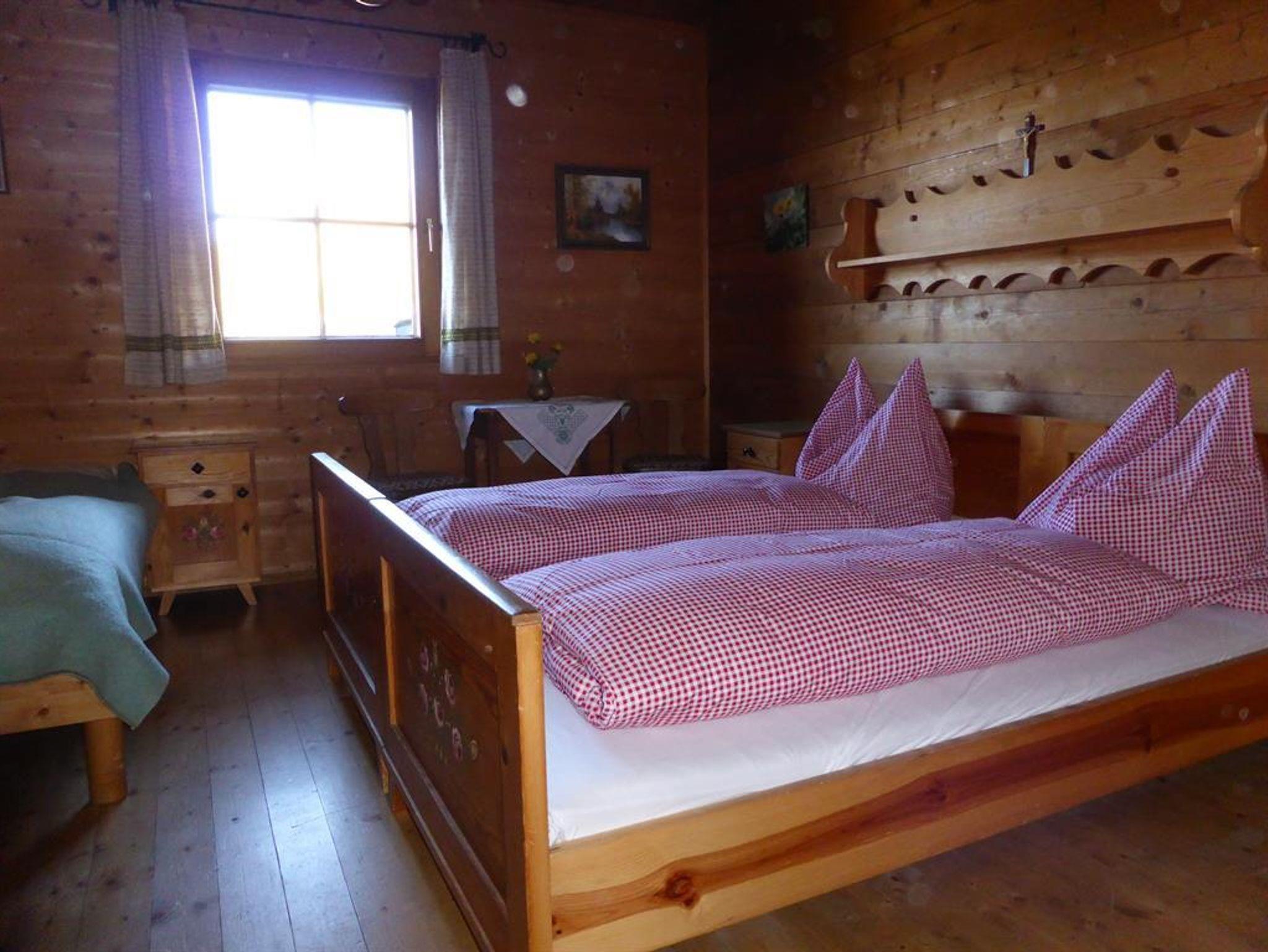 Geräumige Wohnküche mit Geschirrspüler und Holzherd, Pelletsofen, drei Schlafzimmer, seit Winter 2023 neues Bad und WC. Wunderbare Sonnenterrasse mit Blick auf die Dolomiten! Direkt neben der Piste!