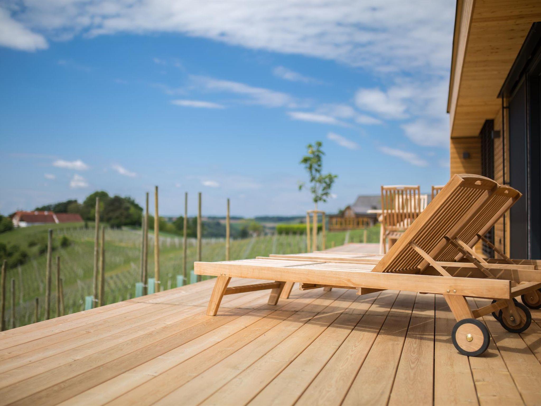 Die schönste Zeit des Jahres, die Urlaubszeit, genießen unsere Gäste in ihrem ganz privaten Ferienhaus. Somit wird man im Weingarten-Resort Unterlamm Loipersdorf für die Dauer des Aufenthalts zum Hausbesitzer. Und entscheidet selbst, ob man die ersten Sonnenstrahlen gemütlich im Bett begrüßt oder beim genussvollen Frühstück auf der eigenen Terrasse. Für einen perfekten Start in den Tag bringen Ihre Gastgeber ein liebevoll zusammengestelltes Frühstückskörberl bis an die Haustüre. Zur vereinbarten Zeit und immer auch mit einem kulinarischen Gruß! Bequeme Sonnenliegen laden zum Verweilen ein und auch die Schwebeliebe Siesta Sky entführt abseits vom Alltag, denn damit lässt man die Seele einfach einmal baumeln. Jedes WeinHAUS begeistert mit einem Highlight, sei es die eigene Infrarotkabine, eine urige Outdoordusche oder auch mit modernen Lounge-Möbeln, eine perfekte Ausblick auf die Weinberge inklusive. Alle Nichtraucher-Apartments strahlen viel Gemütlichkeit aus, noch mehr strahlt die Sonne vom blauen Himmel. Im Weinurlaub steht man also vor der Qual der Wahl… stundenlang relaxen im und vor dem eigenen WeinHAUS oder doch in den nahegelegenen Thermen Körper und Geist regenerieren. Oder die vielen Ausflugsziele in der Südoststeiermark erkunden. Oder, oder, oder...! Hauptsache Urlaub im Weingarten-Resort Unterlamm Loipersdorf.