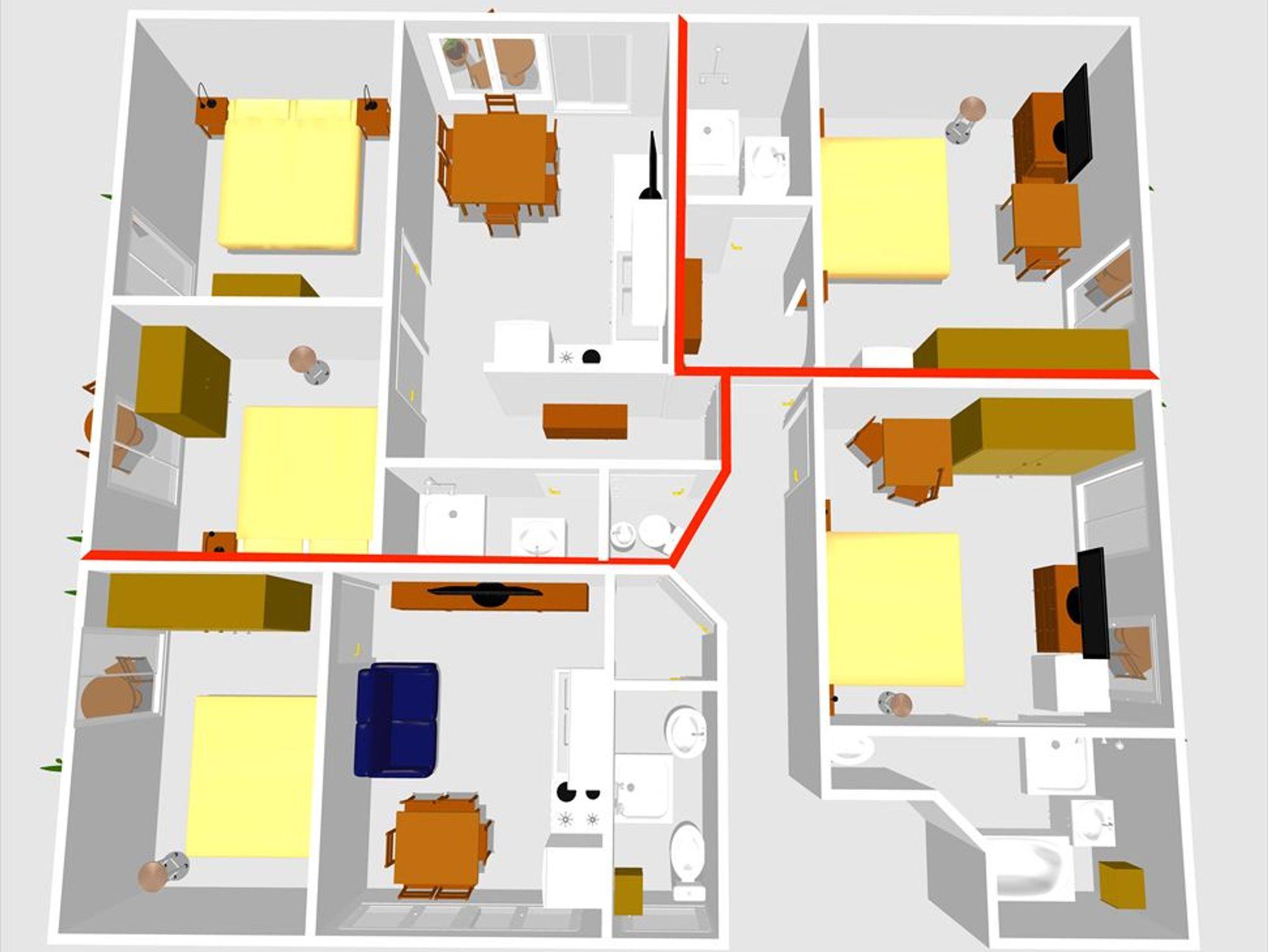 Appartement 1: Elektroherd mit vier Herdplatten, Kühlschrank, Kaffeemaschine, Wasserkocher, extra Vorraum, Bad/Dusche/WC, Föhn, Balkon, Couch, Sitzgruppe, Sat-TV, Radio.