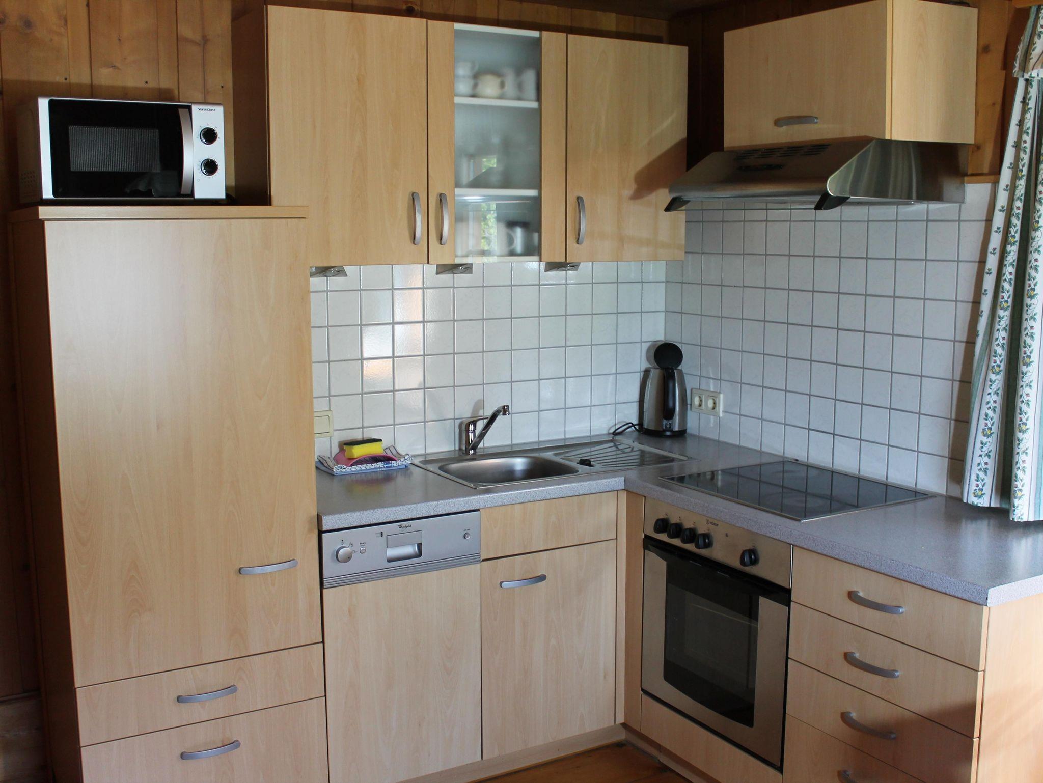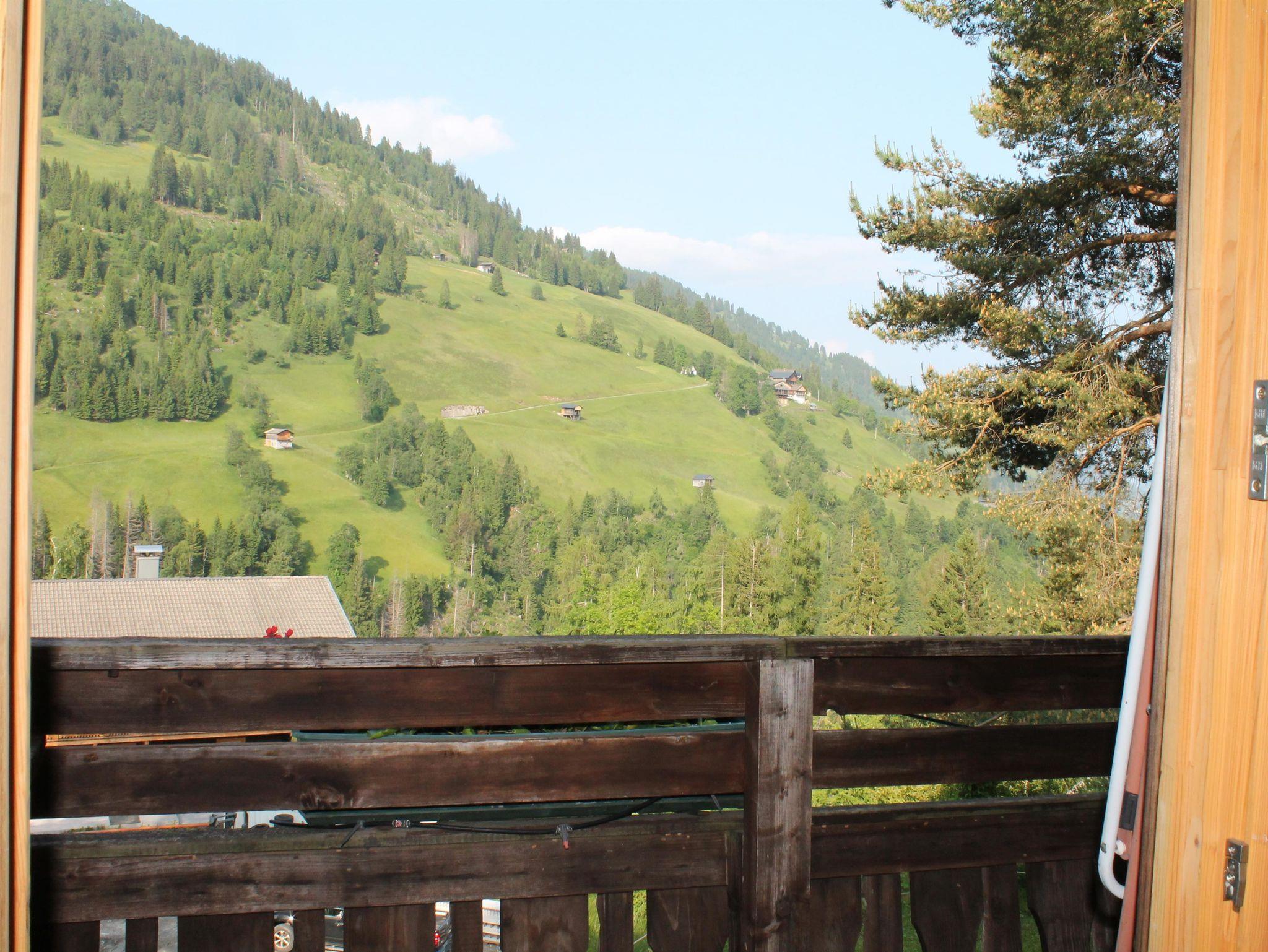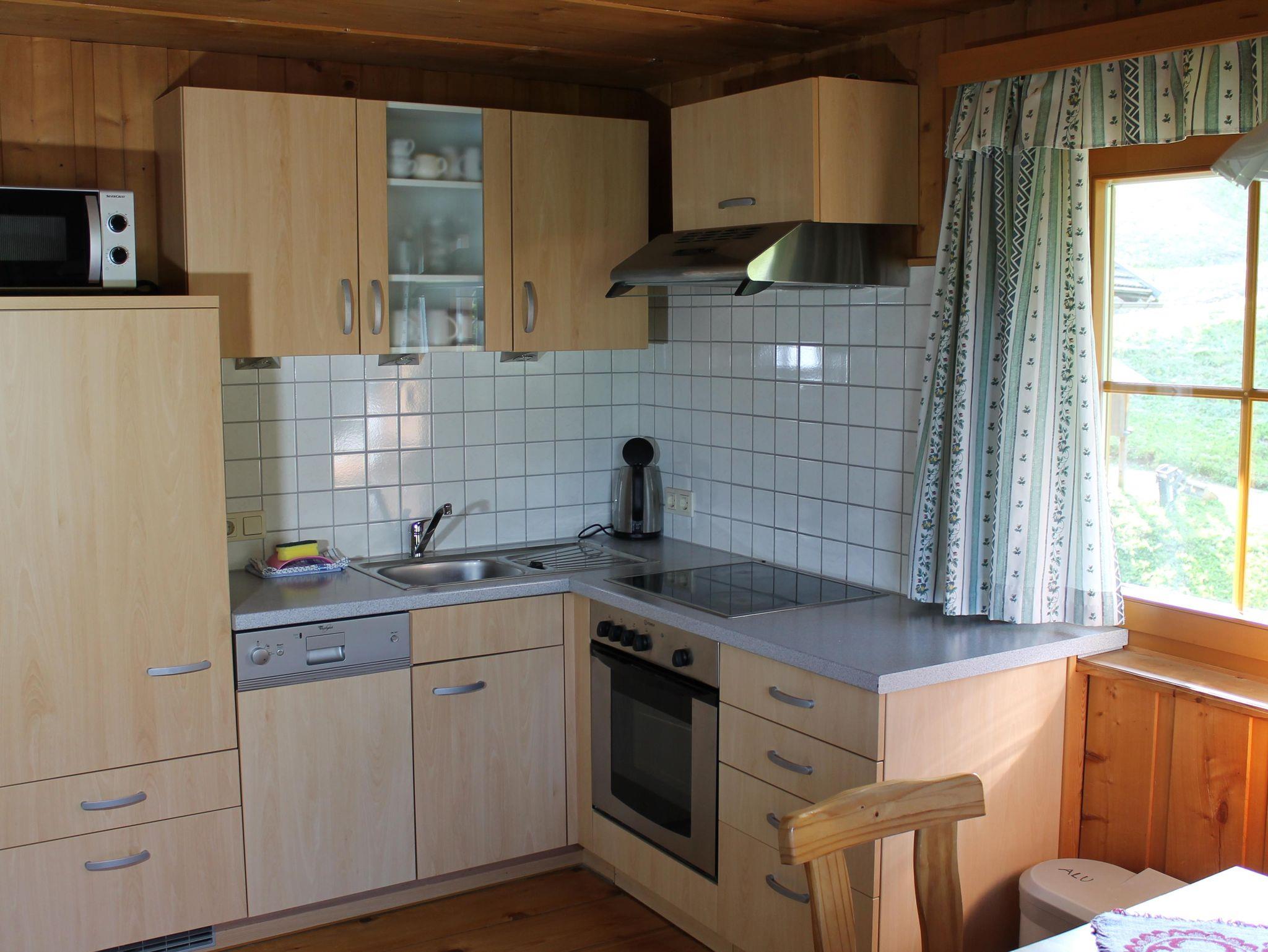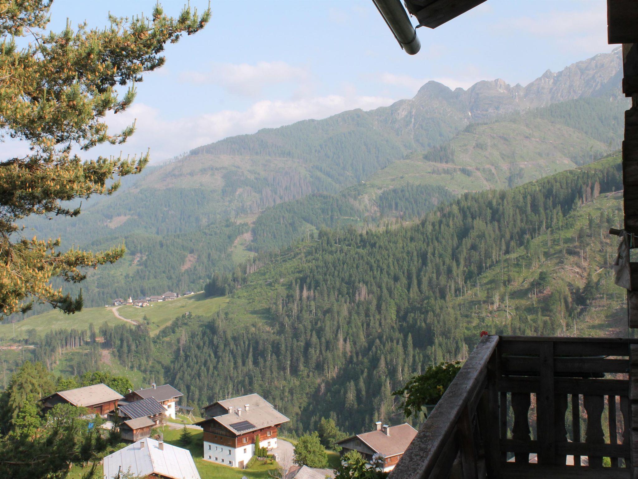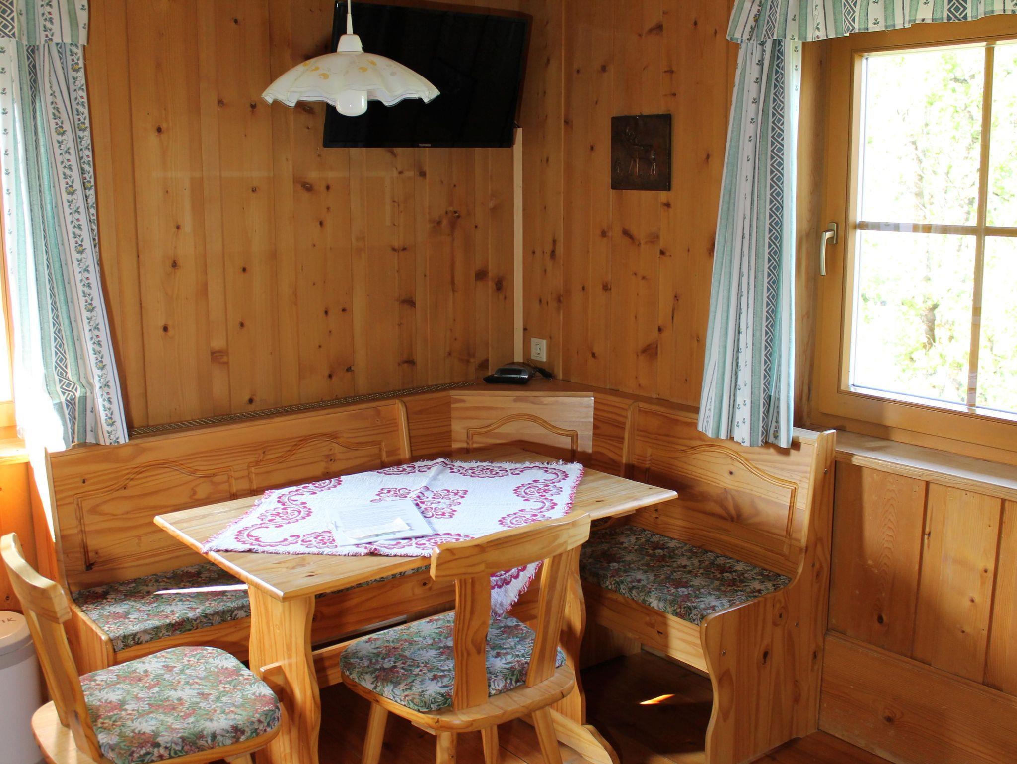 Nord-östlich liegende Ferienwohnung (ca. 45 m²) im ersten Stock mit Balkon, schönem Blick in das Lesachtal, Wohnküche mit Holzofen, ein Doppel- und ein Stockbettzimmer.