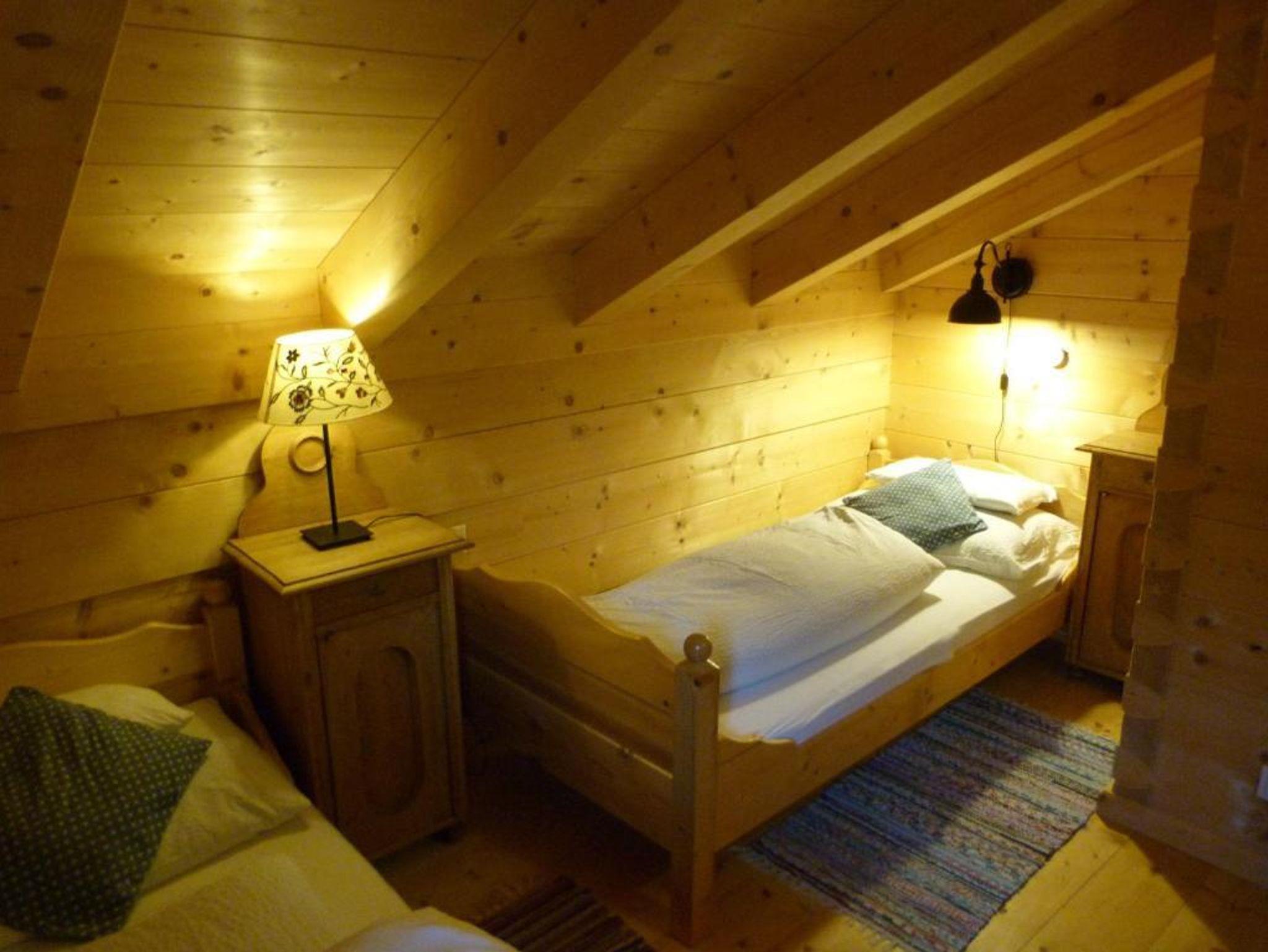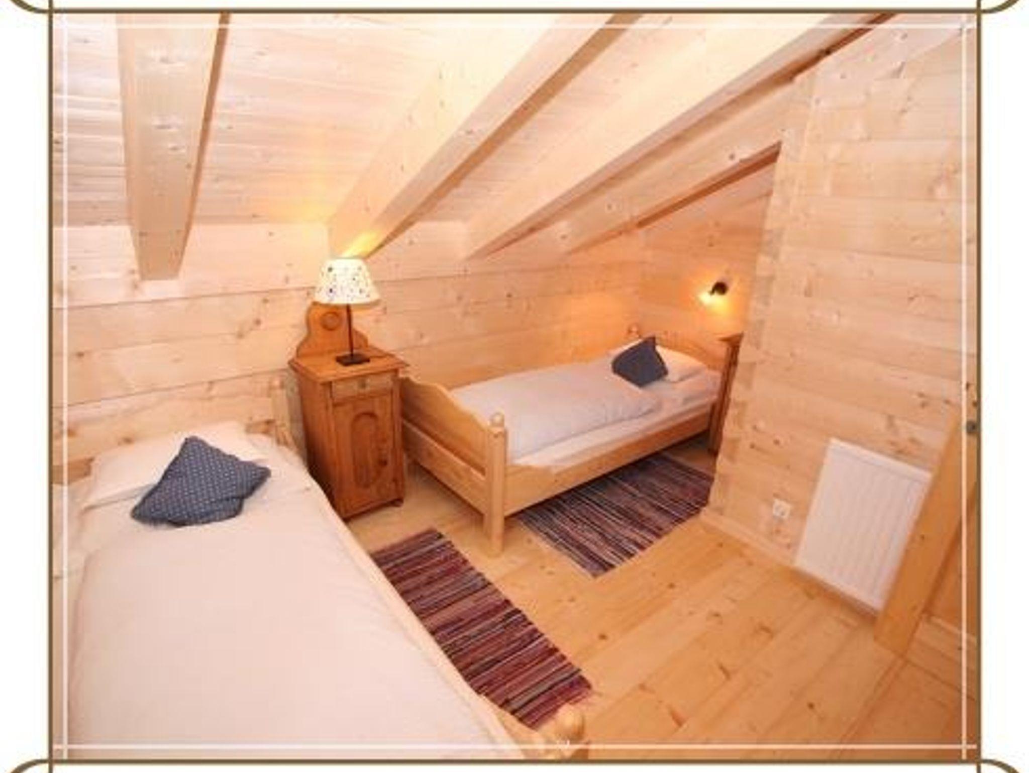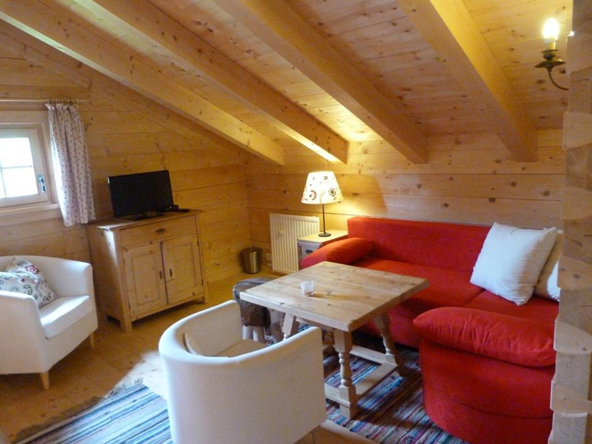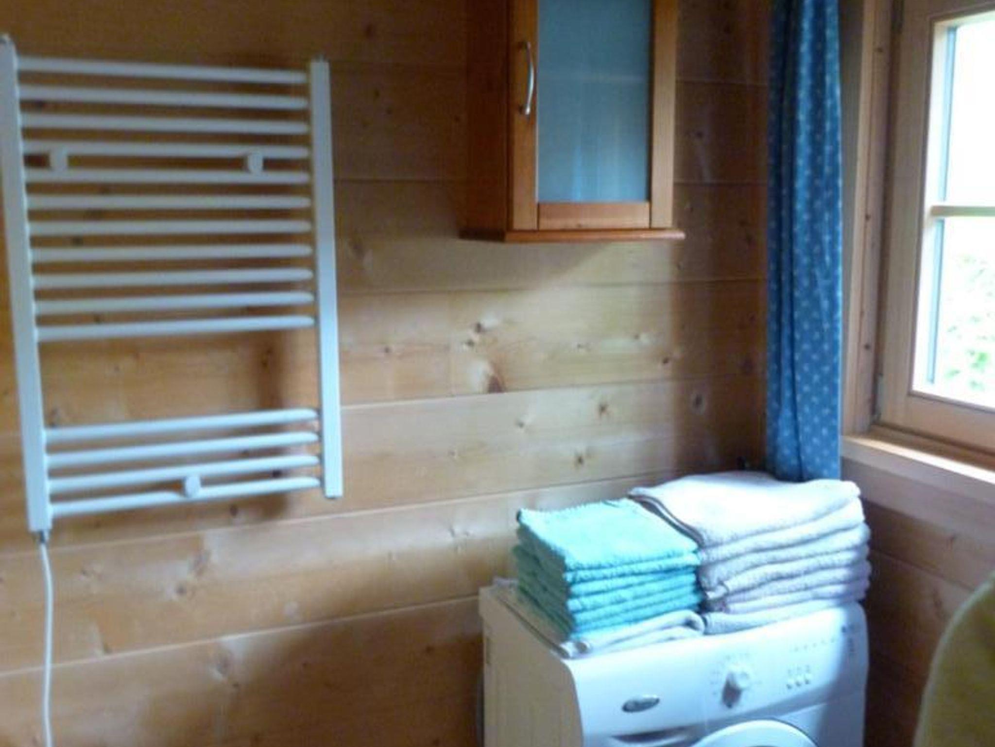 5-Zimmer-Chalet 75 m2 auf 2 Stockwerken, teilweise abgeschrägt, romantisch und mit viel Holz eingerichtet: Eingang. 1 Doppelzimmer mit E-Heizung. Wohnküche (4 Kochplatten, Backofen, Geschirrspüler, Glaskeramikherd, Mikrowelle, Tiefkühler, elektrische Kaffeemaschine) mit Essecke und Kachelofen. Ausgang zur Terrasse. Dusche, sep. WC. Bodenheizung. Obergeschoss: (steile Treppe) abgeschrägtes, offenes Wohn-/Schlafzimmer mit 1 Doppeldiwanbett (2 x 90 cm, Länge 200 cm), Kabel-TV und DVD. 2 abgeschrägte Doppelzimmer. Zur Verfügung: Holz (gratis). Internet (Wireless LAN, gratis). Im Preis enthalten: Bettwäsche, Toilettwäsche, Holz für Kachelofen, Parkplatz, Sauna, Schneeschuhverleih, Schlittenverleih, DVD-Thek.