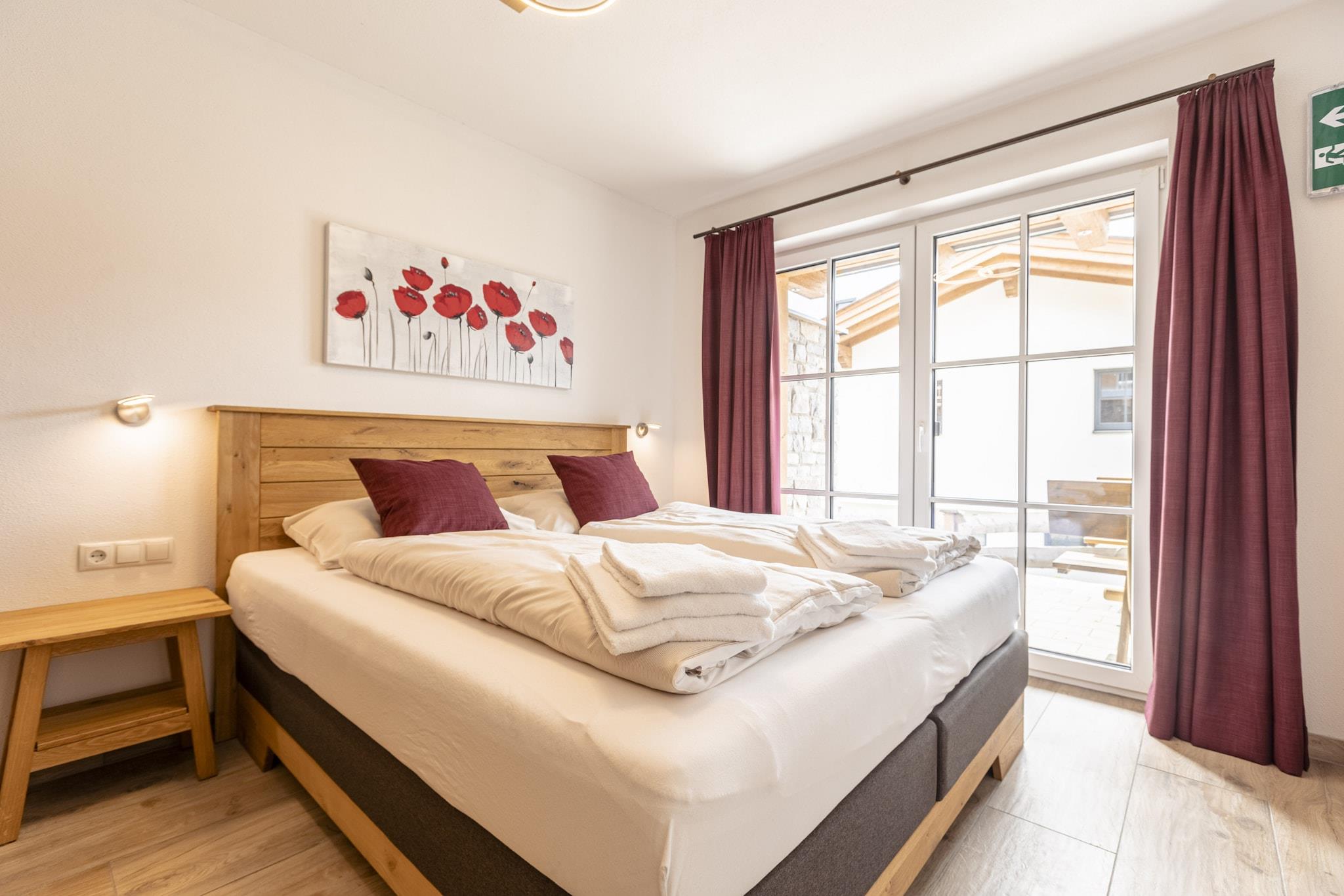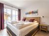 On 125 m² the Superior Chalet # 4A with Sauna offers space for up to 8 people. The holiday home has 3 bedrooms with comfortable double beds, 1 bedroom with 2 single beds, 3 bathrooms with shower and toilet, a furnished terrace and balcony with mountain view. For a cozy end of the day, the cottage has its own sauna. The open kitchen in the is fully equipped: Cutlery and (cooking) utensils are available, a ceramic hob, oven, a dishwasher and a fridge with freezer compartment are also part of the equipment, as well as a toaster, kettle and coffee maker. A small ALPS RESORTS starter set with dishwasher tabs, dishwashing detergent (sample), sponge, garbage bag, cleaning cloth and dishtowel is ready upon your arrival. WLAN is free of charge, satellite TV.