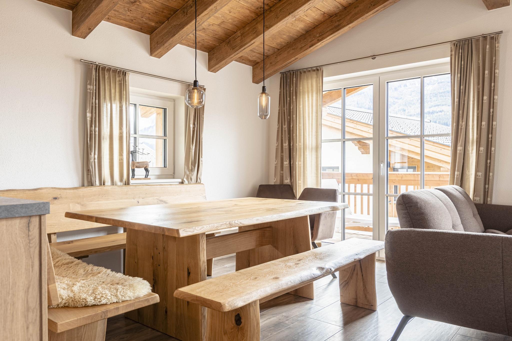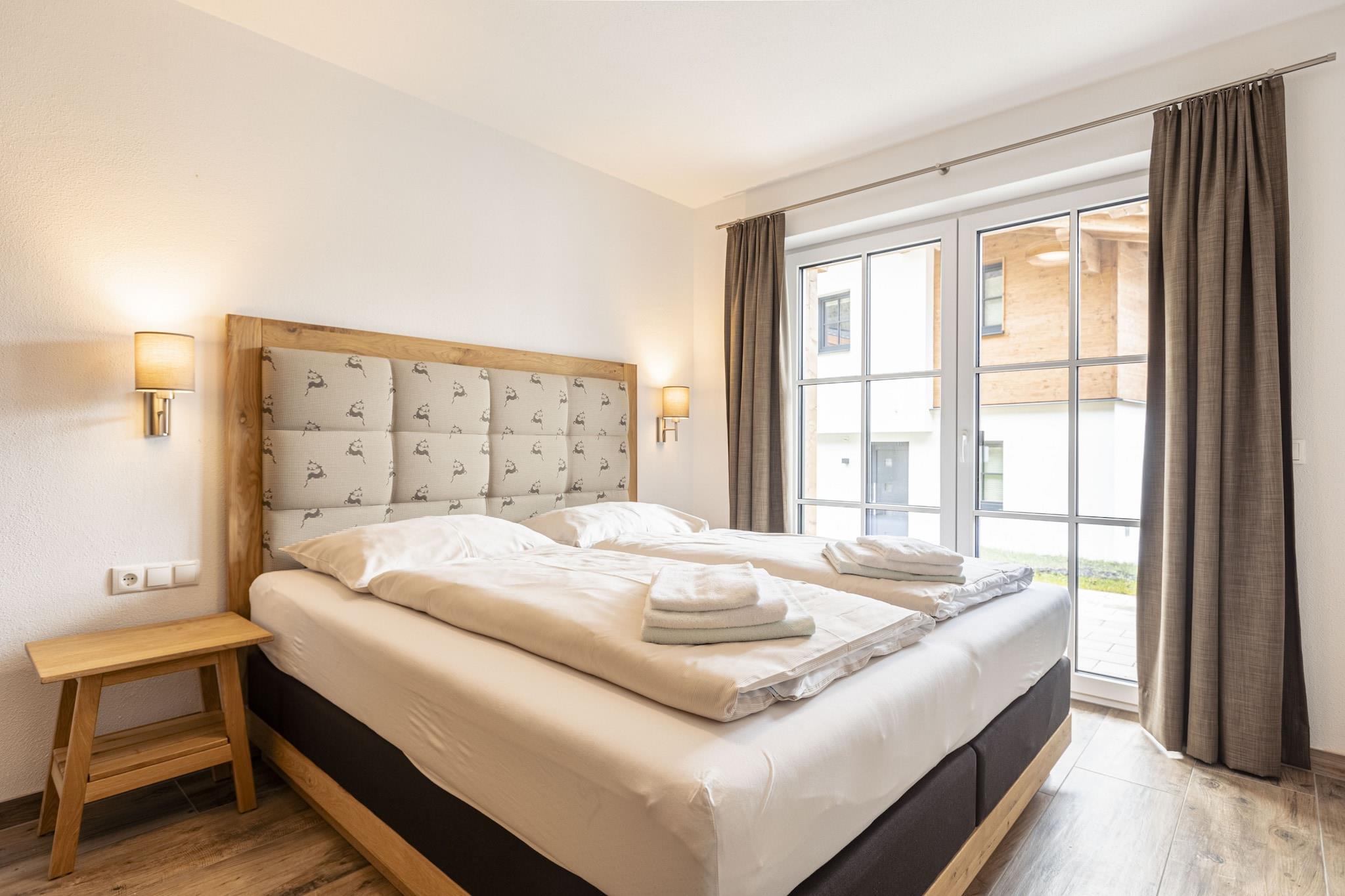 On 125 m² the Superior Chalet # 2B with Sauna offers space for up to 10 people. The holiday home has 3 bedrooms with comfortable double beds, 1 bedroom with 2 bunk beds, 3 bathrooms with shower and toilet, a furnished terrace and balcony with mountain view. For a cozy end of the day, the cottage has its own sauna. The open kitchen in the is fully equipped: Cutlery and (cooking) utensils are available, a ceramic hob, oven, a dishwasher and a fridge with freezer compartment are also part of the equipment, as well as a toaster, kettle and coffee maker. A small ALPS RESORTS starter set with dishwasher tabs, dishwashing detergent (sample), sponge, garbage bag, cleaning cloth and dishtowel is ready upon your arrival. WLAN is free of charge, satellite TV. Dog-friendly: On request, your dogs are welcome (bookable online)