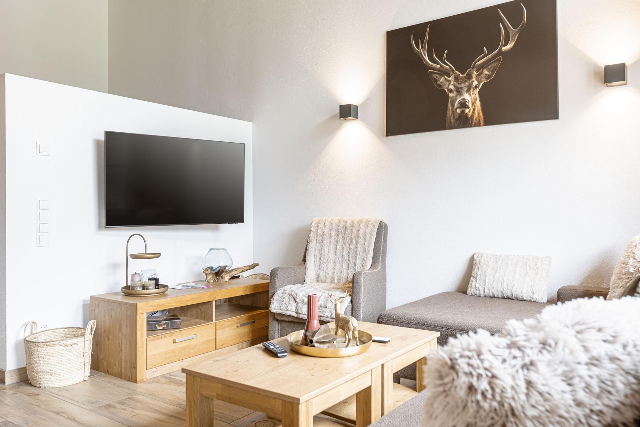 On 130 m² the Superior Chalet # 5C with Sauna offers space for up to 10 people. The holiday home has 3 bedrooms with comfortable double beds, 1 bedroom with 2 bunk beds, 3 bathrooms with shower and toilet, a furnished terrace and balcony with mountain view. For a cozy end of the day, the cottage has its own sauna. The open kitchen in the is fully equipped: Cutlery and (cooking) utensils are available, a ceramic hob, oven, a dishwasher and a fridge with freezer compartment are also part of the equipment, as well as a toaster, kettle and coffee maker. A small ALPS RESORTS starter set with dishwasher tabs, dishwashing detergent (sample), sponge, garbage bag, cleaning cloth and dishtowel is ready upon your arrival. WLAN is free of charge, satellite TV. Dog-friendly: On request, your dogs are welcome (bookable online)