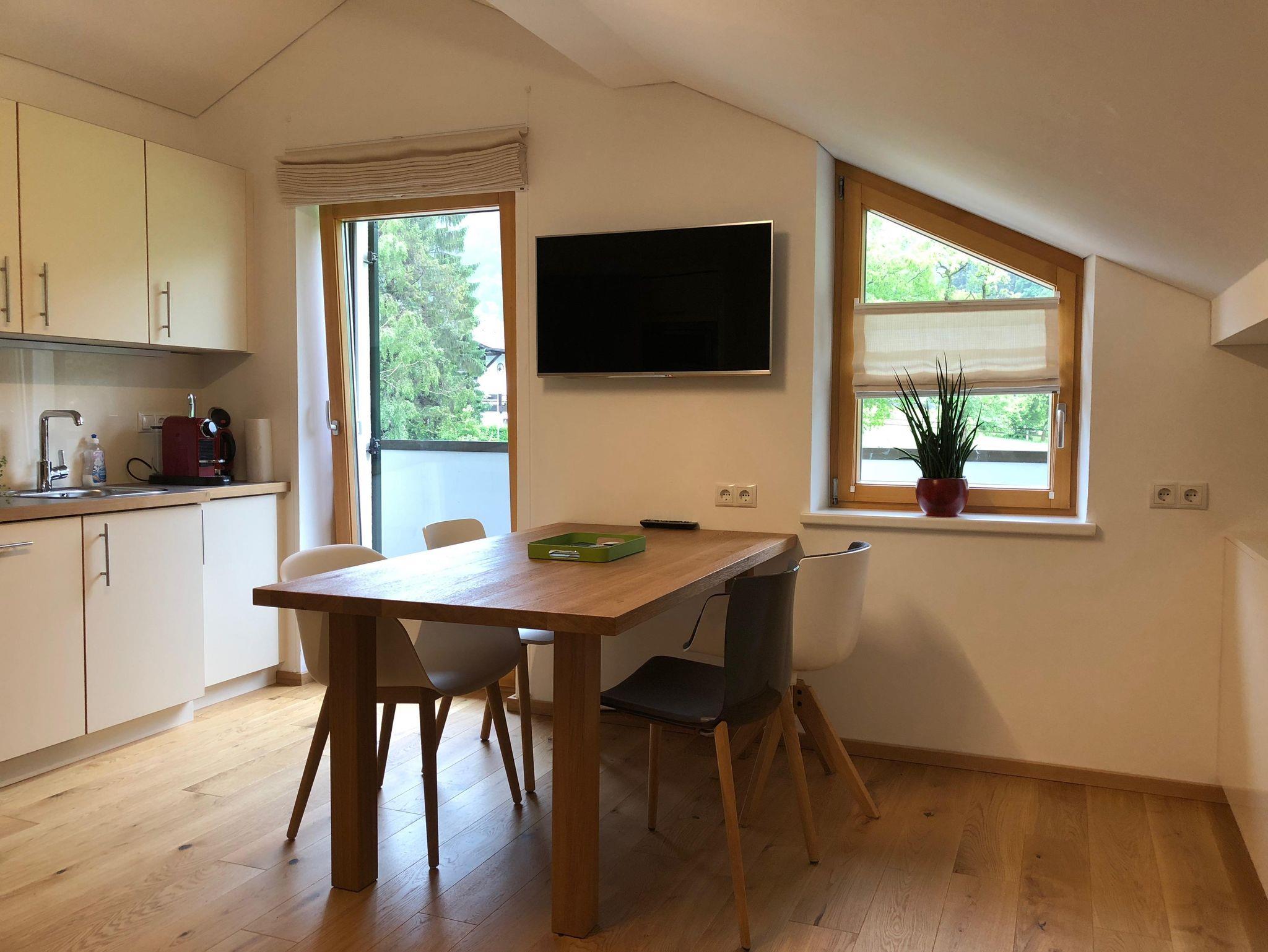 Das Regenbogen Apartment besteht aus einem geräumigen Zimmer mit Doppelbett, einem Einzelbett und einer praktischen Dusche. Ein separates WC sowie eine gut ausgestattete Küche mit Wohnbereich sorgen für Komfort; das Sofa im Wohnzimmer ist ausziehbar und als Zustellbett nutzbar. Zum Apartment gehört ein Balkon mit angenehmer Aussicht.