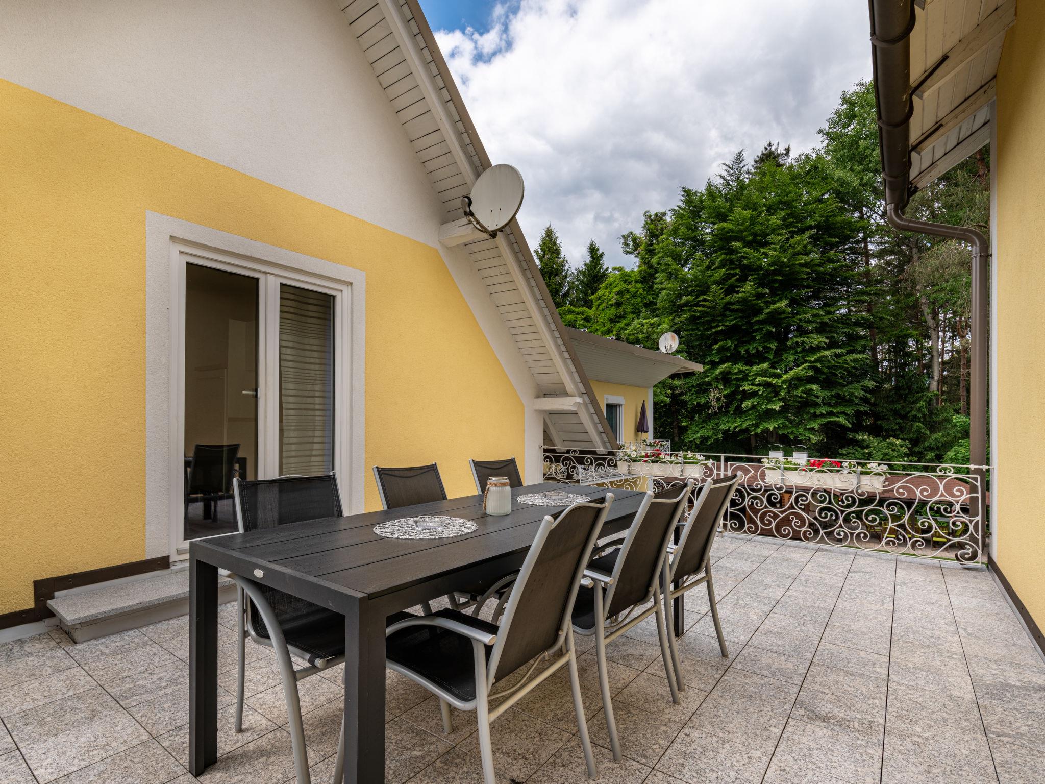 4-room apartment 107 m2 on 1st floor. Fully renovated in 2017: living/dining room with satellite TV (flat screen), radio. Exit to the terrace. 2 double bedrooms, each room with hand-basin. Exit to the balcony. 1 room with 3 beds. Open kitchen (4 hot plates, oven, dishwasher, microwave). Bath/WC, sep. WC. Balcony, large terrace 30 m2. Terrace furniture. Facilities: Internet (WiFi, free). Please note: maximum 1 pet/ dog allowed. Smoke alarm. The apartment has a separate entrance. Partially sloping ceilings.