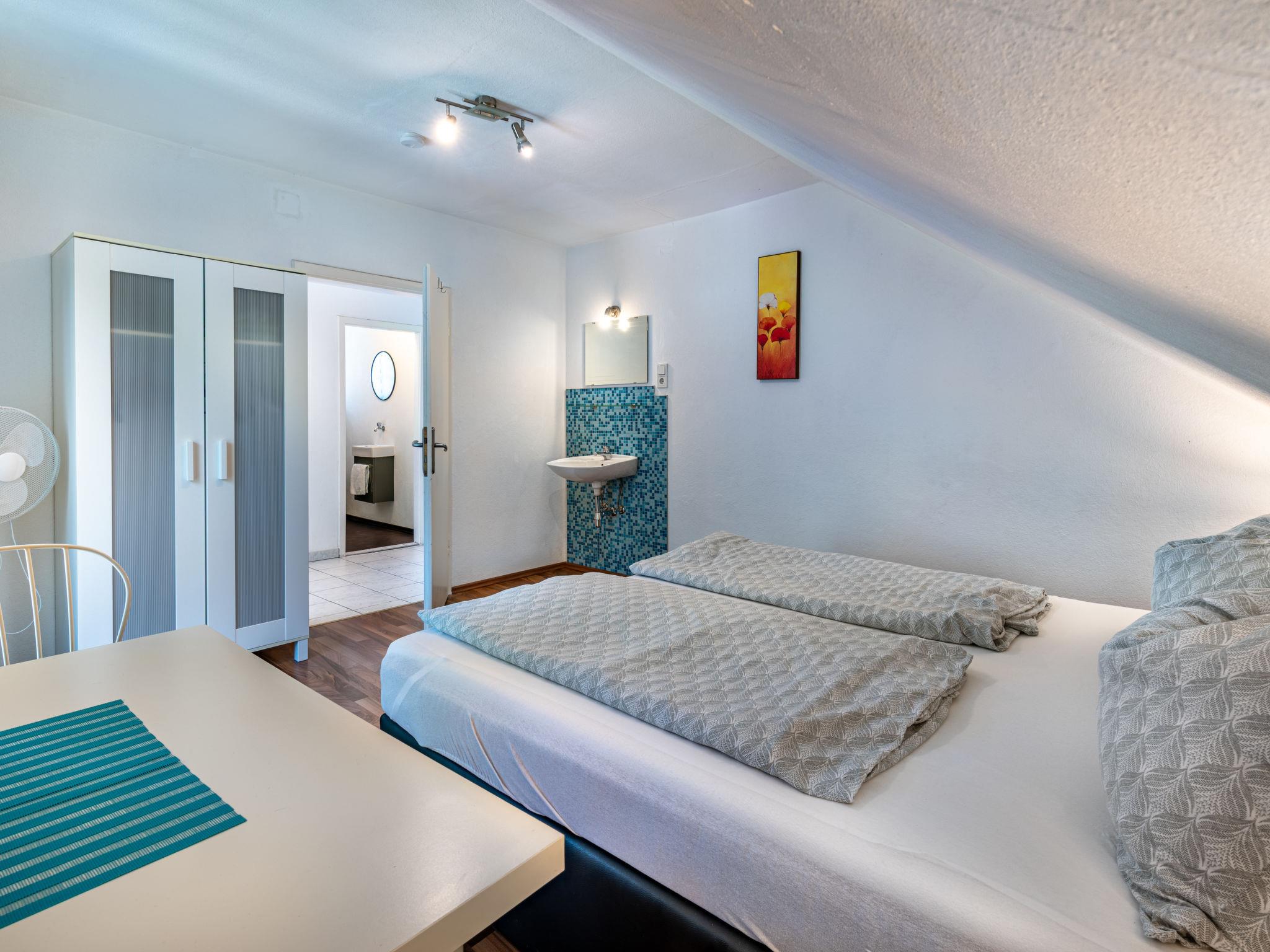 4-room apartment 80 m2 on 2nd floor. Renovated in 2014: living/dining room, with sloping ceilings with satellite TV (flat screen). Exit to the balcony. With sloping ceilings, 2 double bedrooms, each room with hand-basin. With sloping ceilings, 1 double bedroom with hand-basin. Exit to the balcony. Kitchen (4 hot plates, oven, microwave). Shower, sep. WC. Balcony 6 m2. Facilities: Internet (WiFi, free). Please note: fridge without freezer. Maximum 1 pet/ dog allowed. Smoke alarm.