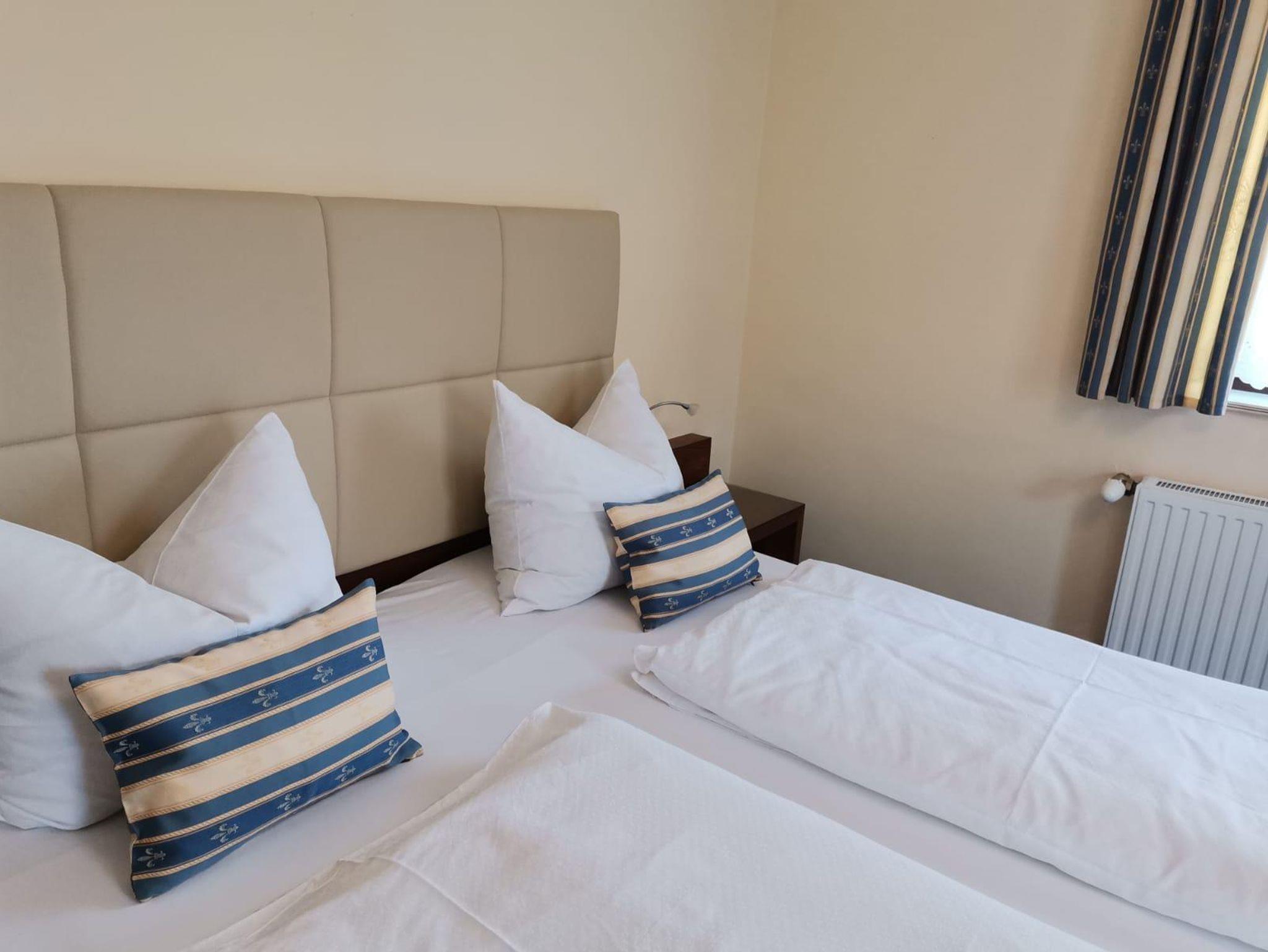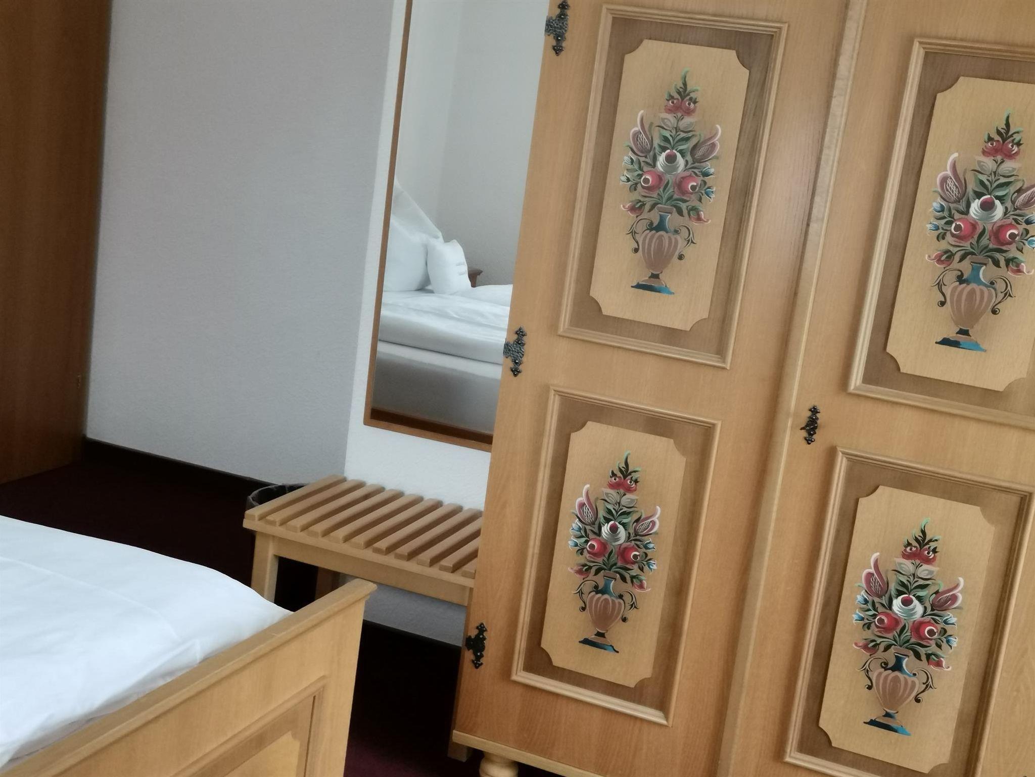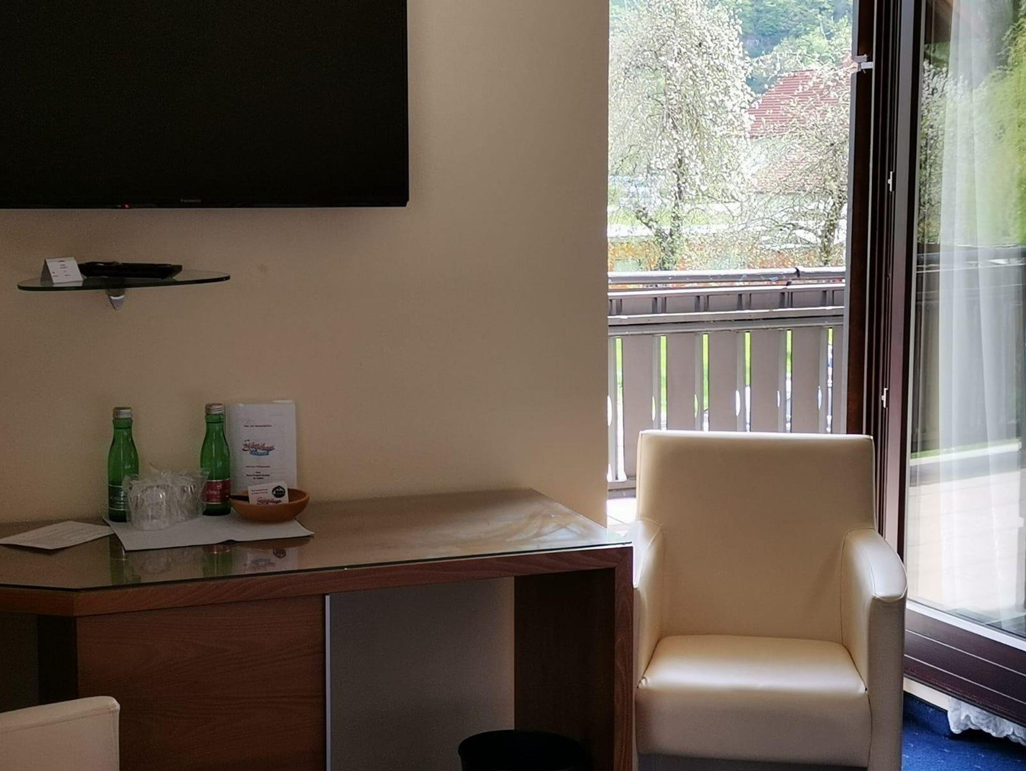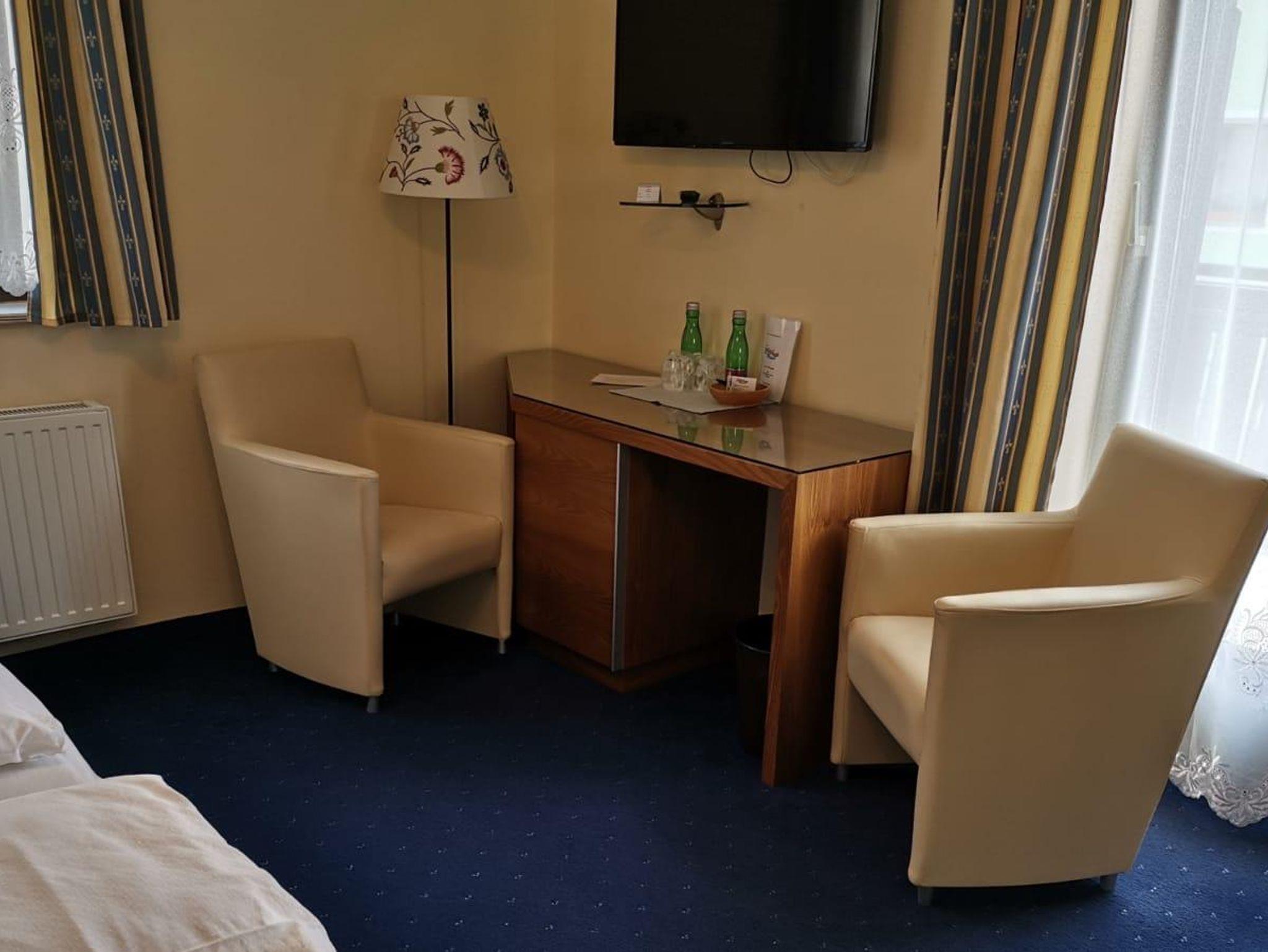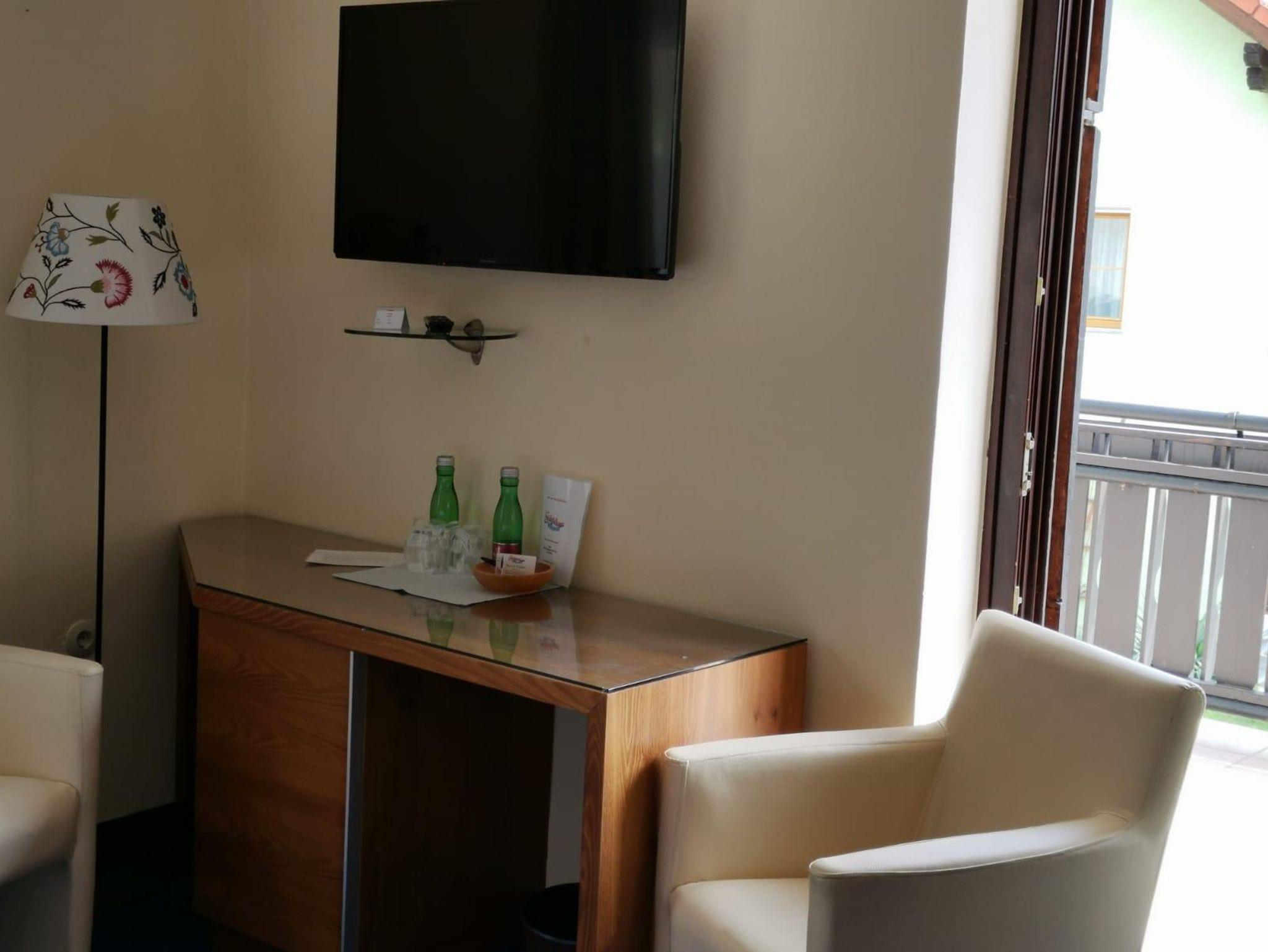 Unsere 2 Balkonzimmer liegen im Erdgeschoß, sie verfügen über DU/WC, einen kleinen Sitzbereich, Sat-TV und kostenloses WLAN. Wasser und Snacks auf dem Zimmer (kostenpflichtig). Gästepantoffel stehen für Sie bereit. Im Bad sind Föhn, Kosmetikspiegel, Duschgel und Seife vorhanden.