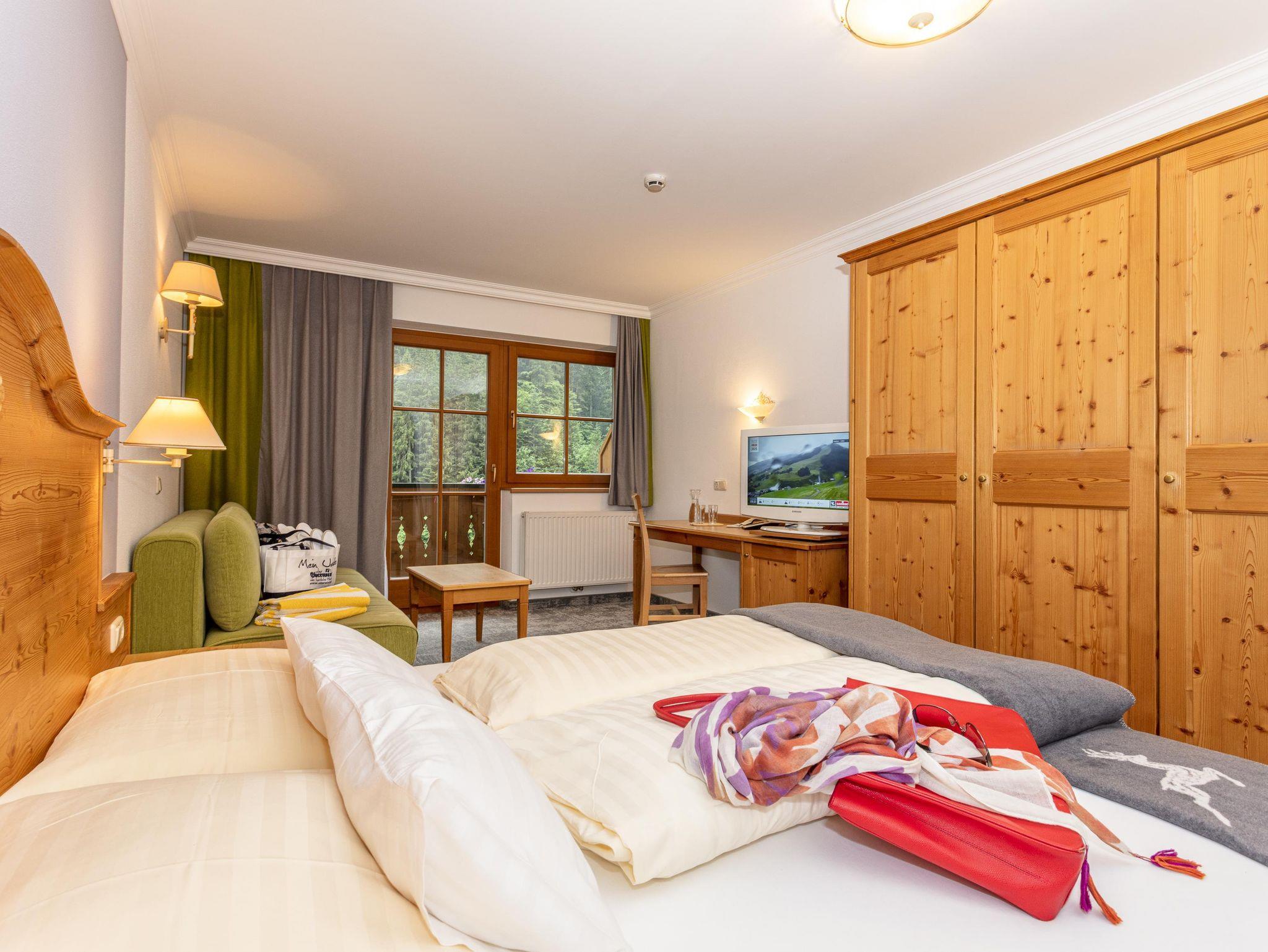 Unsere TOP-Komfortzimmer im Oberwirt im Glemmtal sind im alpinen Stil und mit hellen Möbeln eingerichtet. Die Zimmer verfügen entweder über einen Süd-, West oder Nord-Balkon. Die Zimmer sind ausgestattet mit einem 32“ Flachbildschirm-TV, Telefon, Safe, Dusche und WC, Haarföhn, Kosmetikspiegel und einem Badezimmerradio. Internetzugang über Netzwerkkabel und WLAN möglich.