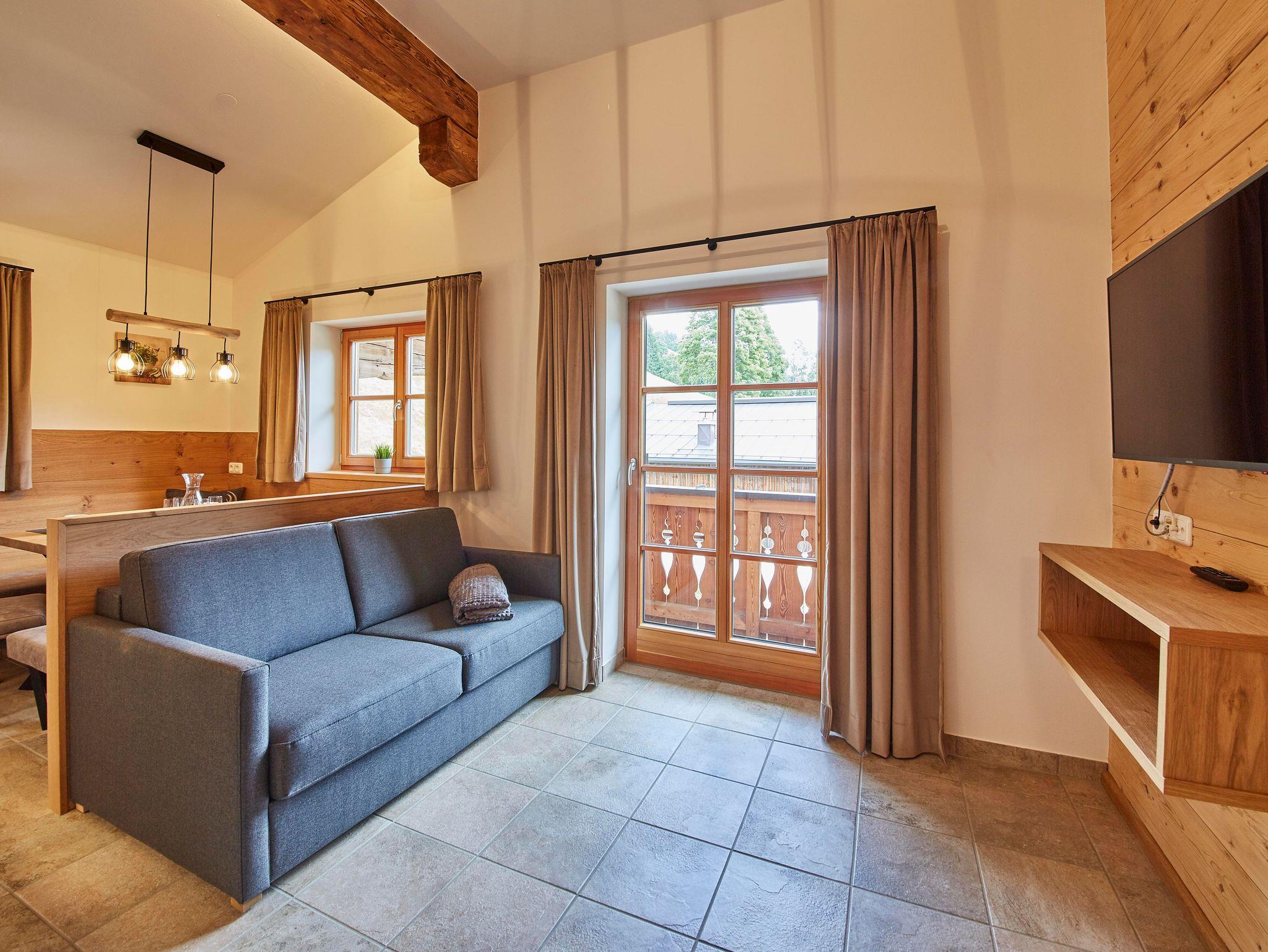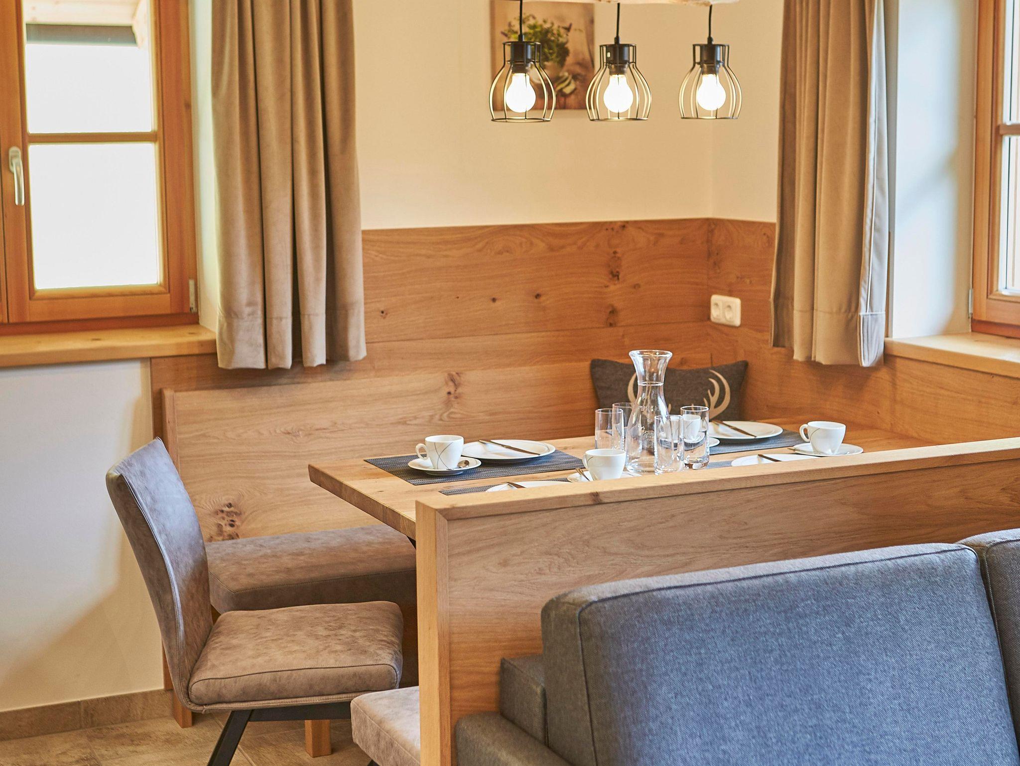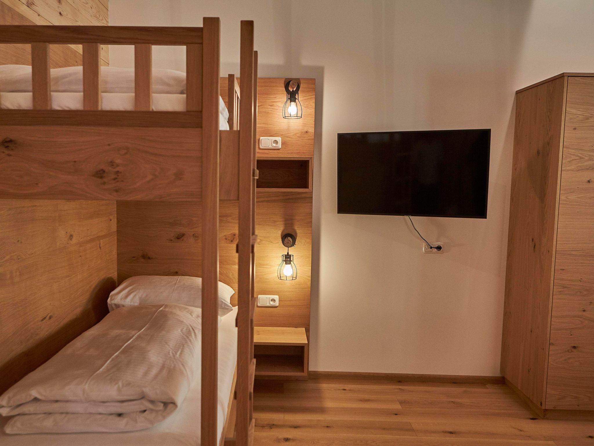 Apartment Top 2 ist für bis zu 5 Personen buchbar, offeriert auf 48 m² 1 Schlafzimmer mit 1 Doppelbett und 1 Stockbett, einen Wohnbereich mit Schlafsofa, Essbereich und voll ausgestatteter Küche, 1 Badezimmer mit offener Dusche, ein seperates WC und einem Balkon mit herrlichem Blick auf die umliegenden Berge. Ein Skiraum, kostenloses WLAN sowie ausreichend Parkplätze direkt vor der Haustüre stehen allen Gästen frei zur Verfügung.