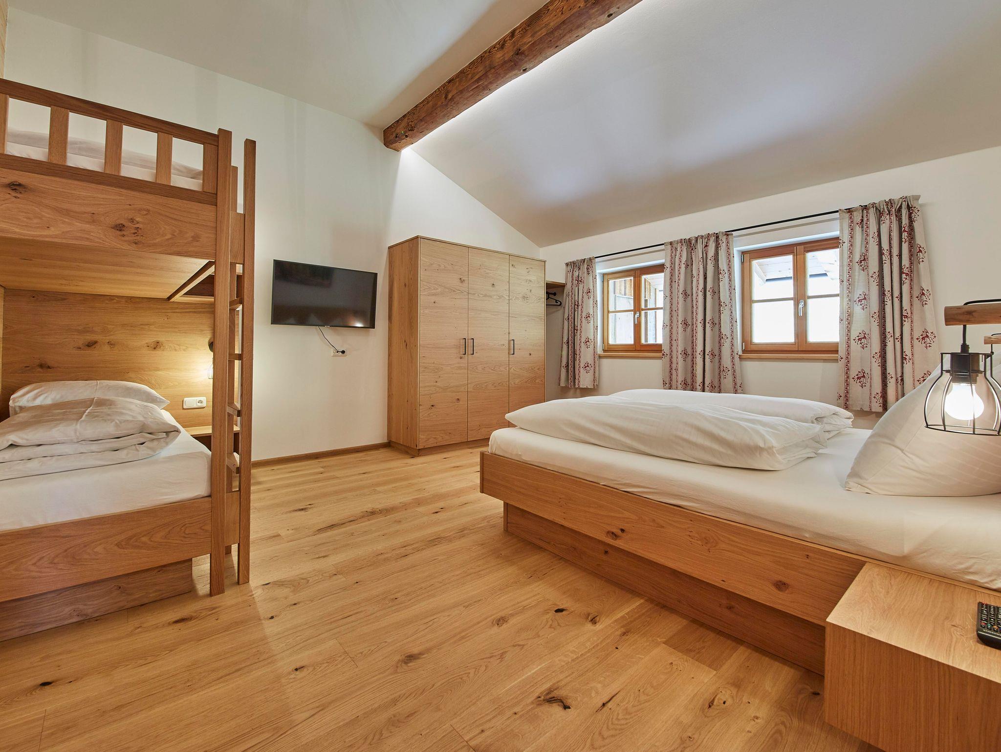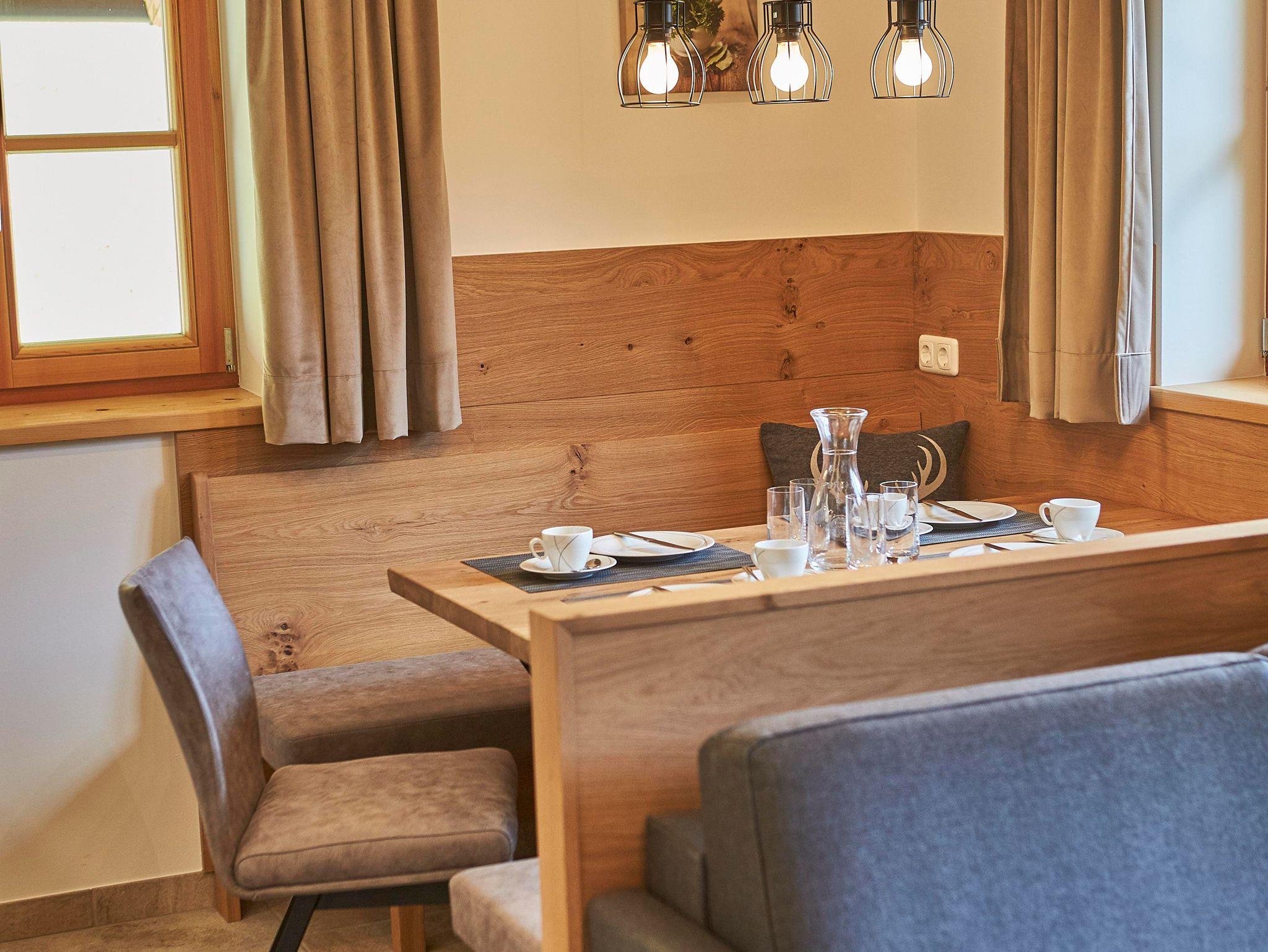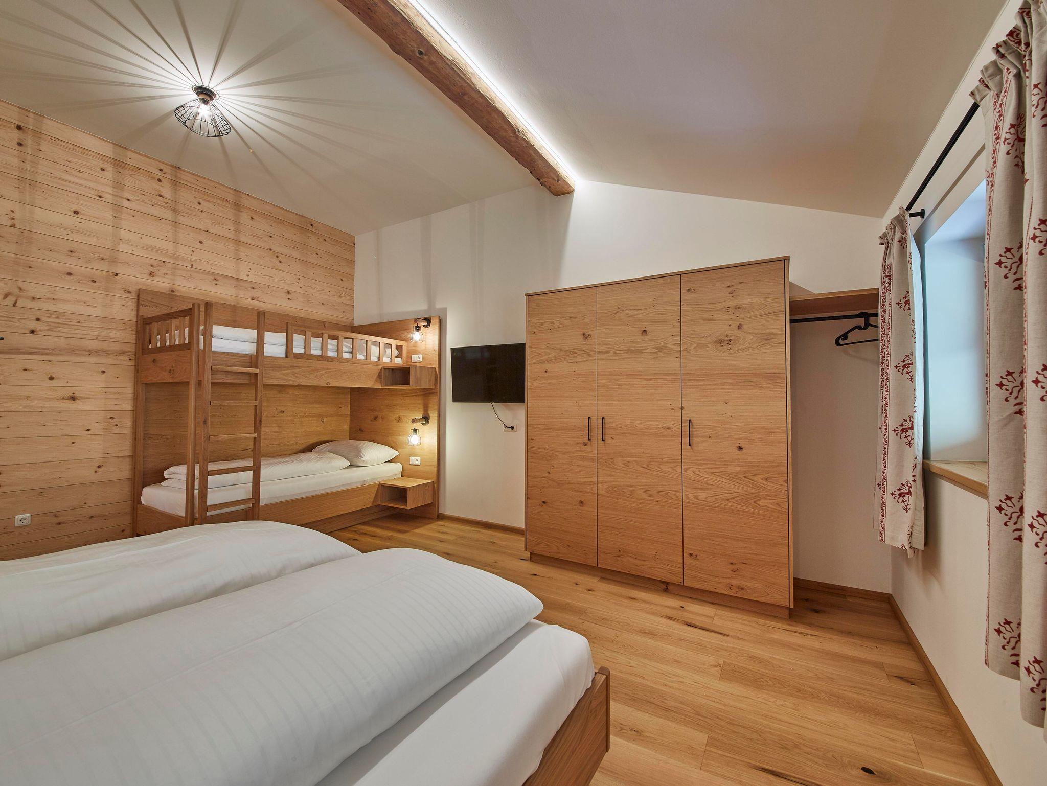 Apartment Top 2 ist für bis zu 5 Personen buchbar, offeriert auf 48 m² 1 Schlafzimmer mit 1 Doppelbett und 1 Stockbett, einen Wohnbereich mit Schlafsofa, Essbereich und voll ausgestatteter Küche, 1 Badezimmer mit offener Dusche, ein seperates WC und einem Balkon mit herrlichem Blick auf die umliegenden Berge. Ein Skiraum, kostenloses WLAN sowie ausreichend Parkplätze direkt vor der Haustüre stehen allen Gästen frei zur Verfügung.