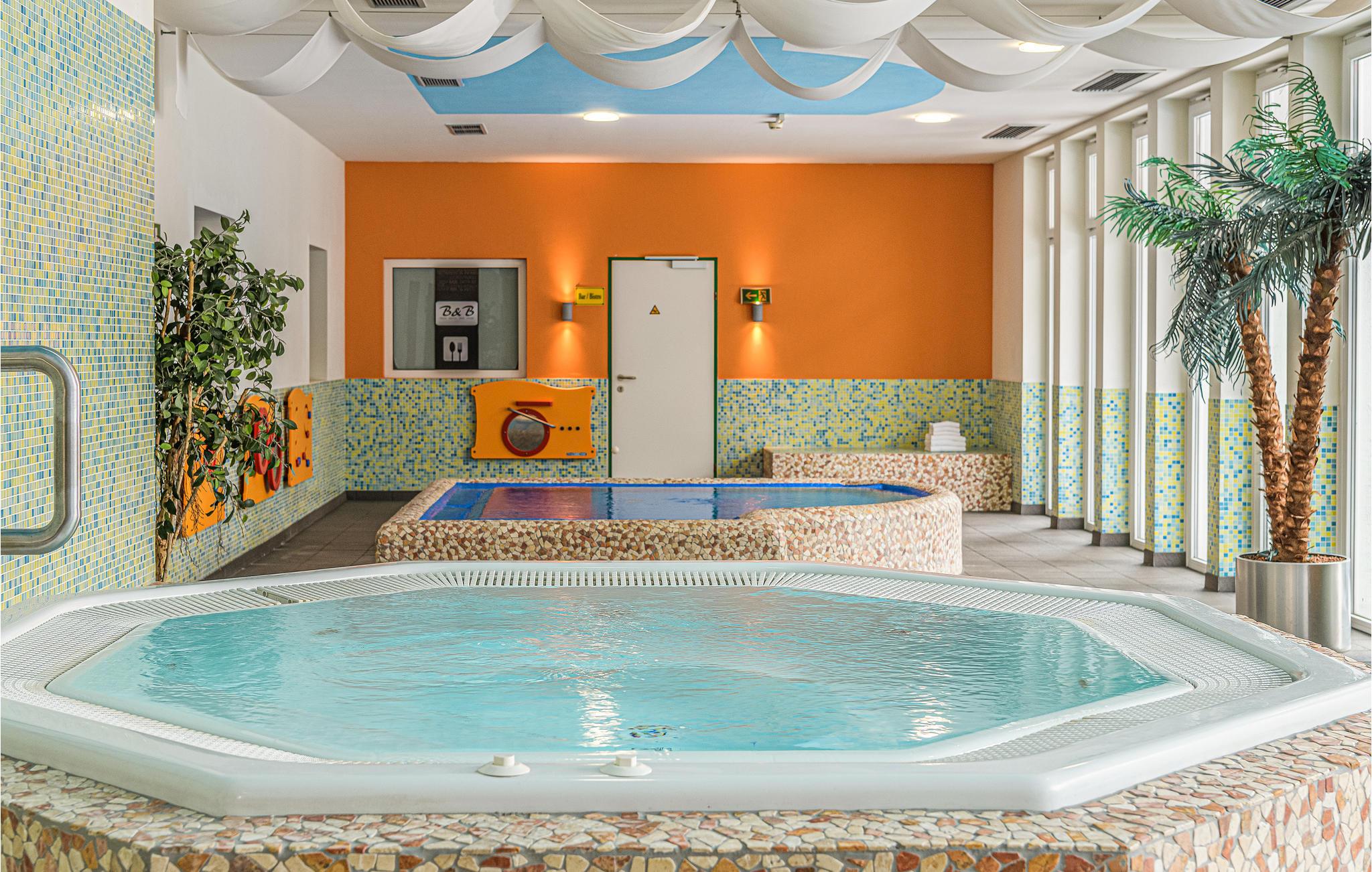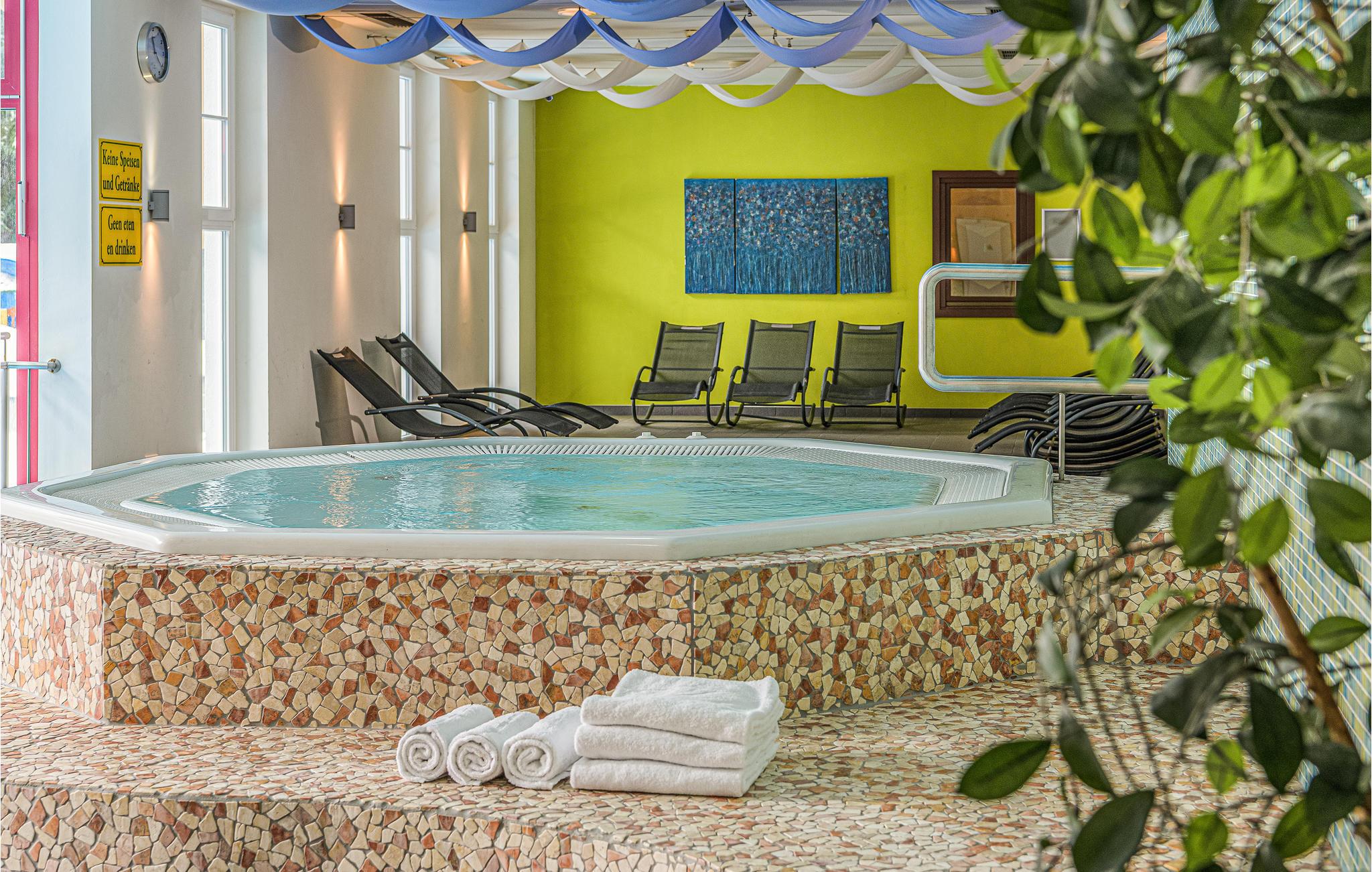 Efter jeres vandreture og aktiviteter i naturen kan I gøre brug af feriestedets wellnesområde om eftermiddagen. En udendørs pool samt flere indendørs boblebade inviterer jer til at slappe af og tage en dukkert. Nyd bagefter en tur i den fælles sauna. Der er også tænkt på de yngste familiemedlemmer. Fantastiske legeområder sørger for mange timers sjov og underholdning til børnene.