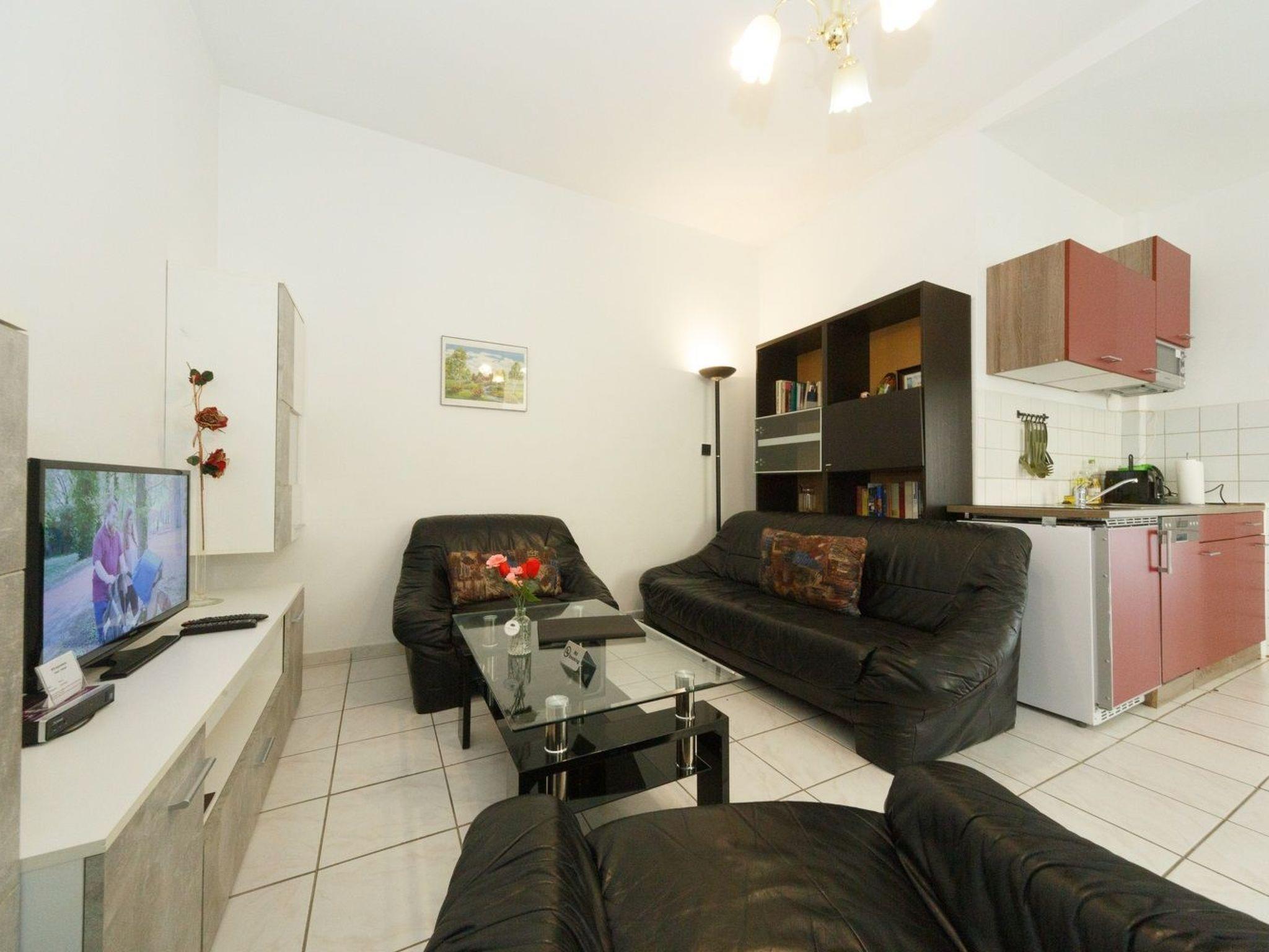 Inside, the flat spoils you with a clever room layout on 45 m² that knows how to combine cosiness and functionality. You enter the flat via an inviting entrance area, which leads into a stylish bathroom with shower, WC and washbasin, a lively living room with integrated kitchen and a cosy bedroom with a 180 cm wide double bed and spacious wardrobe. The living area invites you to relax and enjoy yourself with a sofa set, dining area and fully equipped kitchenette.