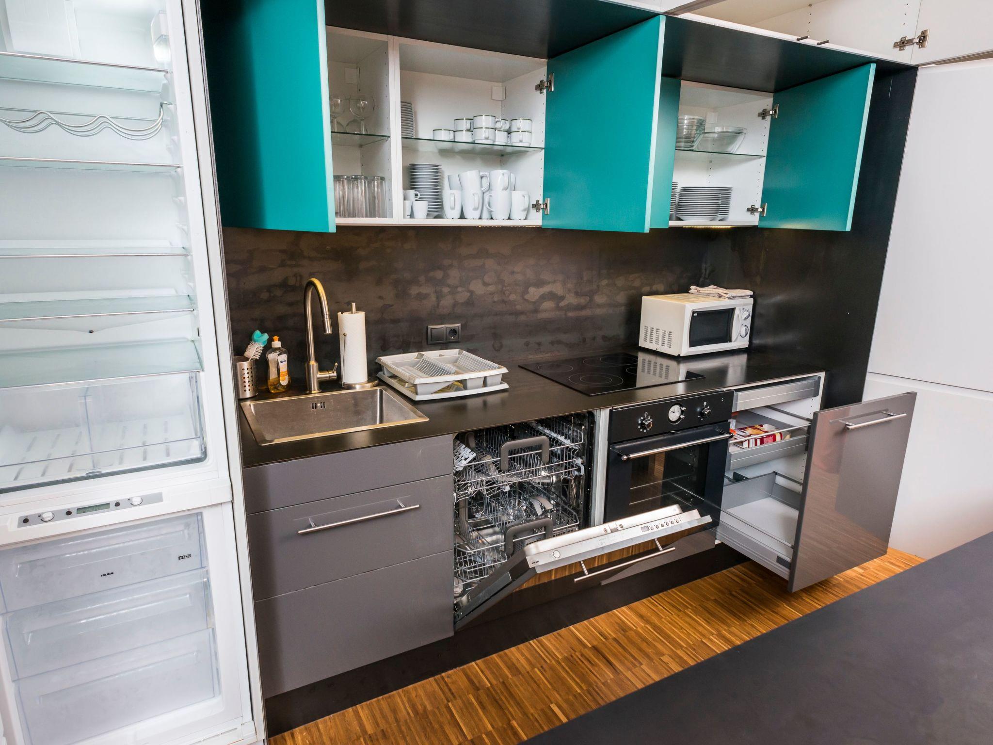 The interior of the flat leaves nothing to be desired. In addition to high-quality furnishings that guarantee a pleasant stay, the flat has various amenities such as a washing machine for your sole use, a coffee machine, a filter coffee machine and a capsule coffee machine, to name but a few. Two well-equipped bathrooms - one with a shower and the other with a bathtub - ensure that even larger groups don't get in each other's way in the morning. A fan ensures pleasant temperatures during the warmer days.