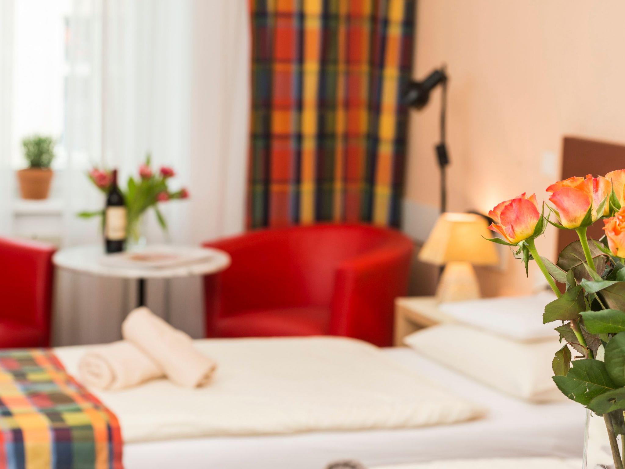 Inside, a carefully designed living room/bedroom awaits you, giving you the flexibility to choose between a cosy double bed and two single beds, depending on your personal preferences. A communal washing machine is available in the building, ideal for longer stays. The practical equipment also includes a filter coffee machine as well as a capsule coffee machine and a kettle to start your morning with your favourite coffee. A dishwasher also makes kitchen work easier, while a fan provides pleasant cooling on warmer days.