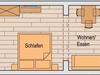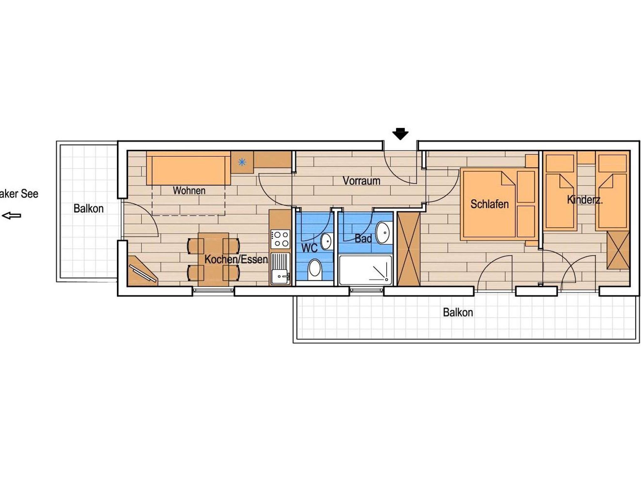 Unsere Ferienwohnungen Haus 3, sind mit 1 - 2 Schlafräumen, 1 Wohnraum, Kochnische - komplett eingerichtet, Dusche WC, Sat-TV, gratis WLAN und Balkon. Bade- und Handtücher, Bett und Tischwäsche sind vorhanden. Eigener Badestrand!