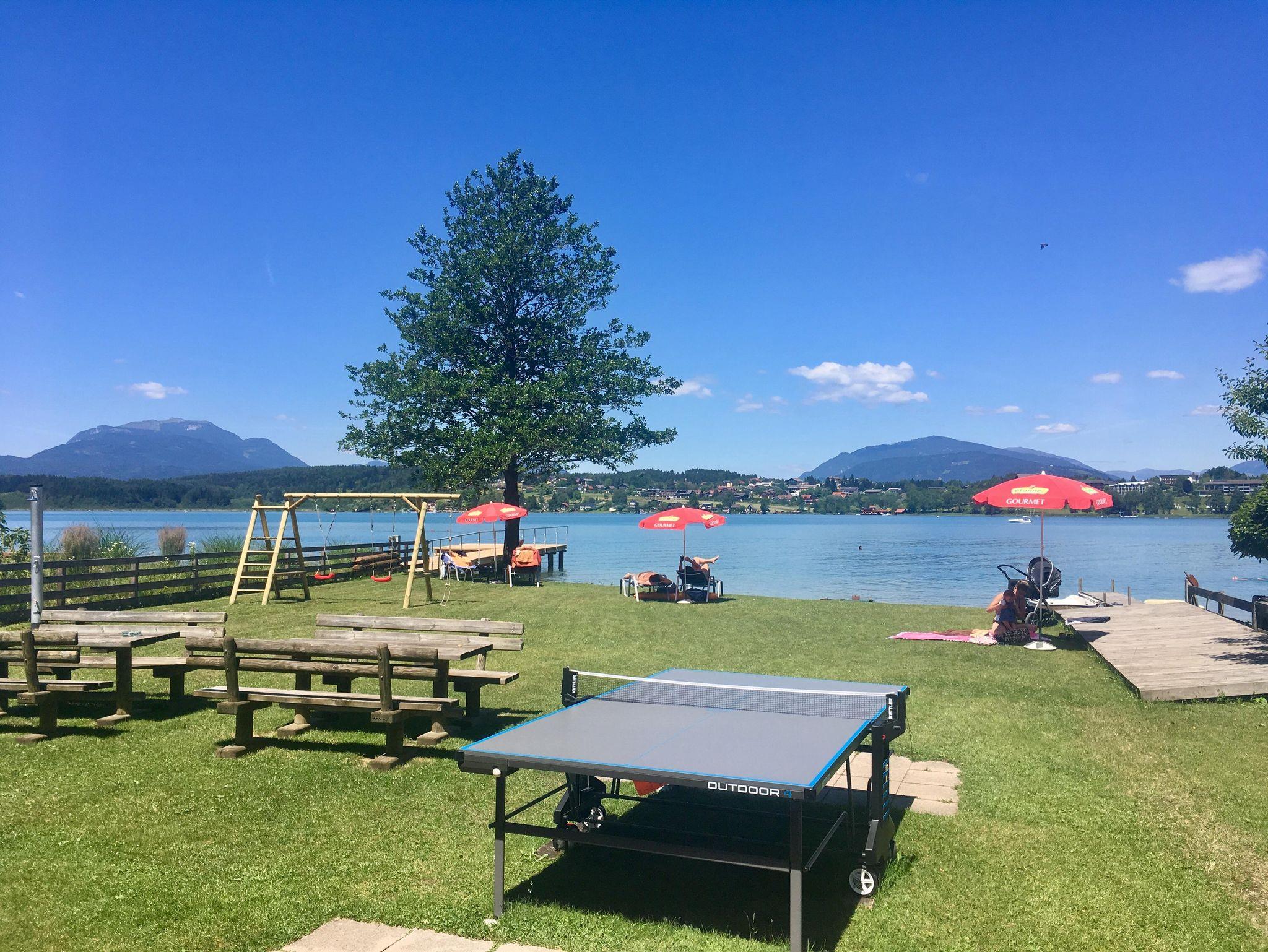 Eine 500 m² grosse Liegewiese vorm Strand mit kostenfreien Liegestühlen und Sonnenschirmen bietet sonnenhungrigen Gästen Ruhe und Entspannung. Je FEWO gibt es einen kostenfreien Parkplatz direkt am Haus. Einkaufsmöglichkeiten im Ort (Billa und Camping Arneitz). Auch gibt es gleich in der Nähe einen Bäcker, eine Eisdiele und eine stylische Strandbar direkt am See. Ein mobiler Bäcker kommt in der Hochsaison morgens direkt vors Haus. Einfach wohlfühlen im Seehaus Rausch.