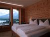 Sowohl Wände als auch Decken bestehen aus sichtbar gebliebenen Massivholzpaneelen höchster Oberflächenqualität. Zur Anwendung kommen heimische Holzarten Eiche (Wände) und Fichte (Decken) im Wohnbereich, sowie Zirbe (Wände) in den Schlafräumen.