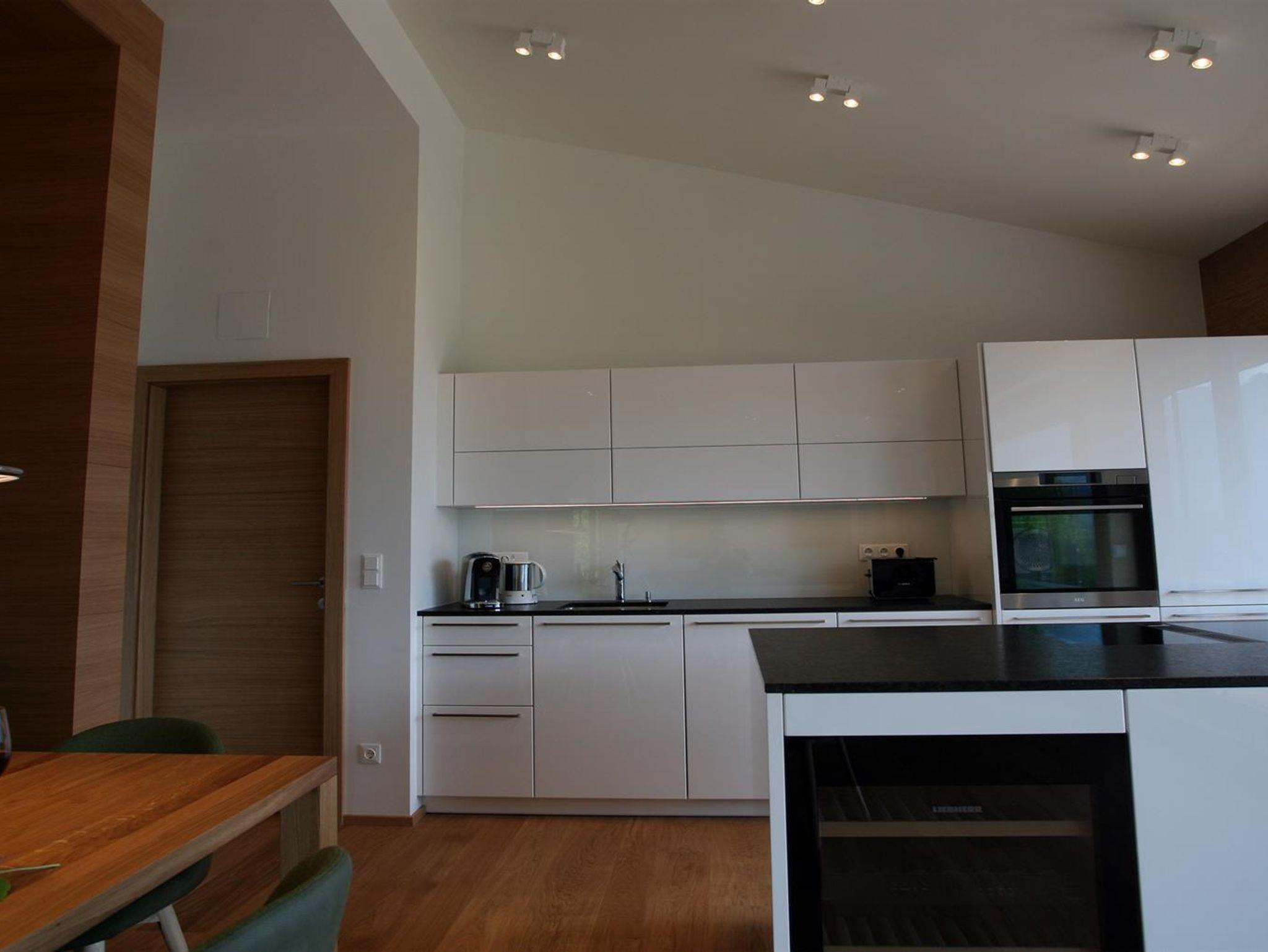 Alle Wohnungen verfügen über eine hochwertige Ausstattung mit individuell designten Eichenholzmöbeln, Küchen mit Steinplatten und bündigem Ceran-Kochfeld, Kühlschrank, Backrohr, Geschirrspüler, etc.