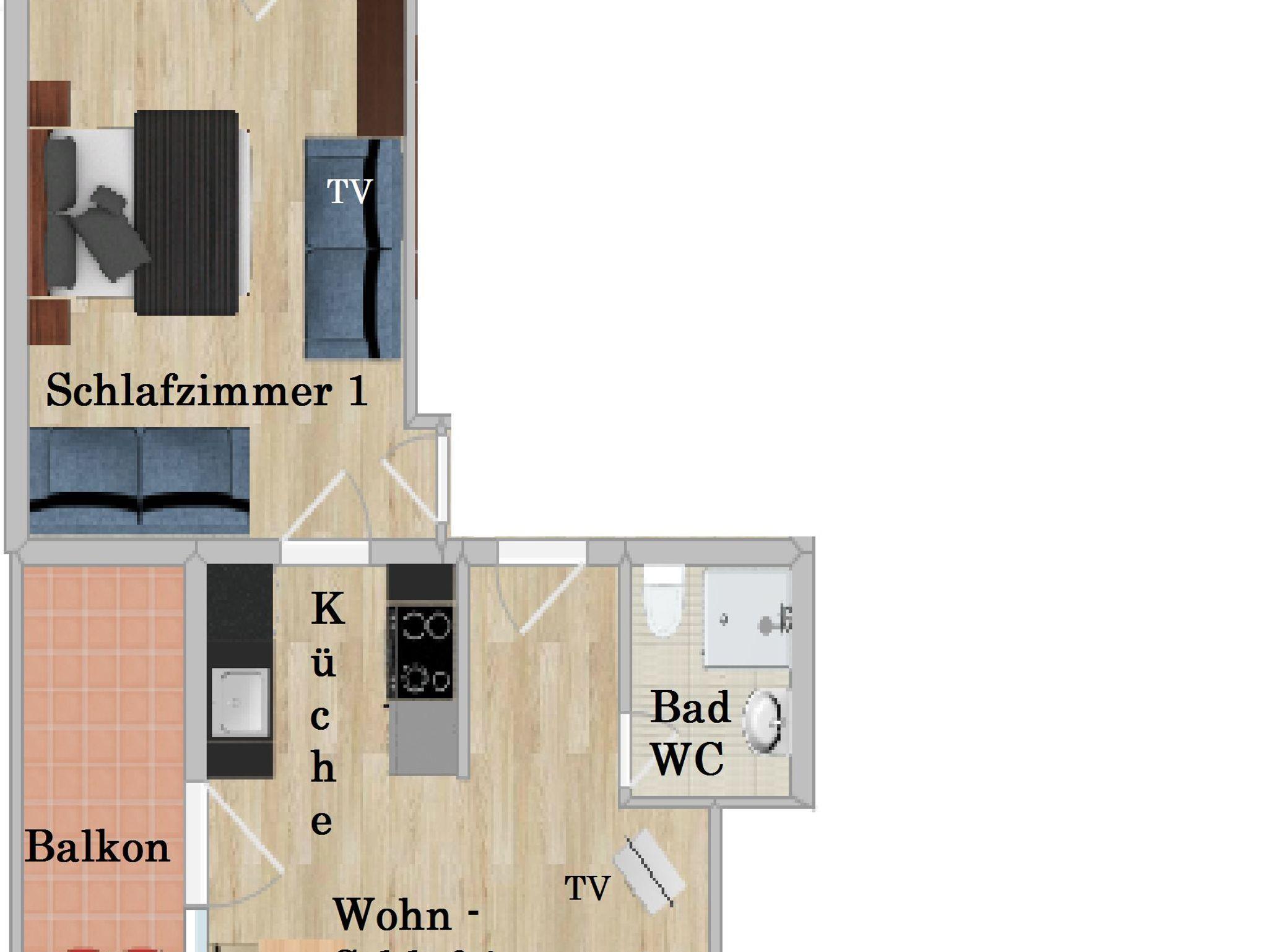 Doppelzimmer 14m2, mit DU/WC mit Fön, SAT/TV, Kühlschrank und Süd-Balkon mit Gartenmöbeln ausgestattet.