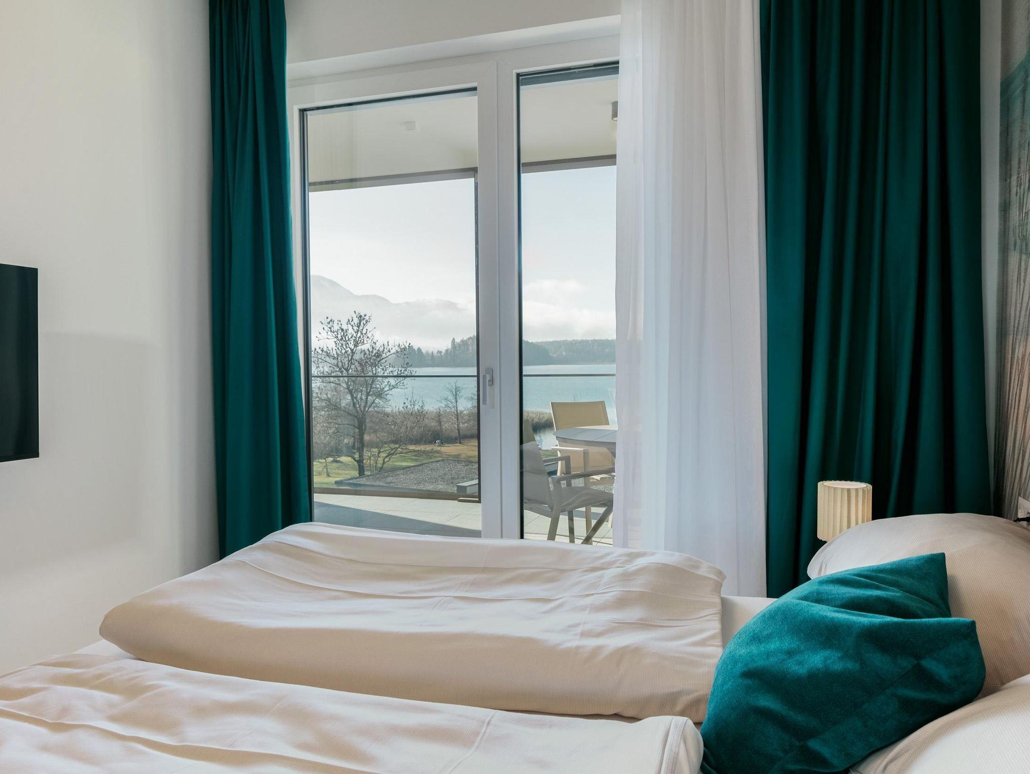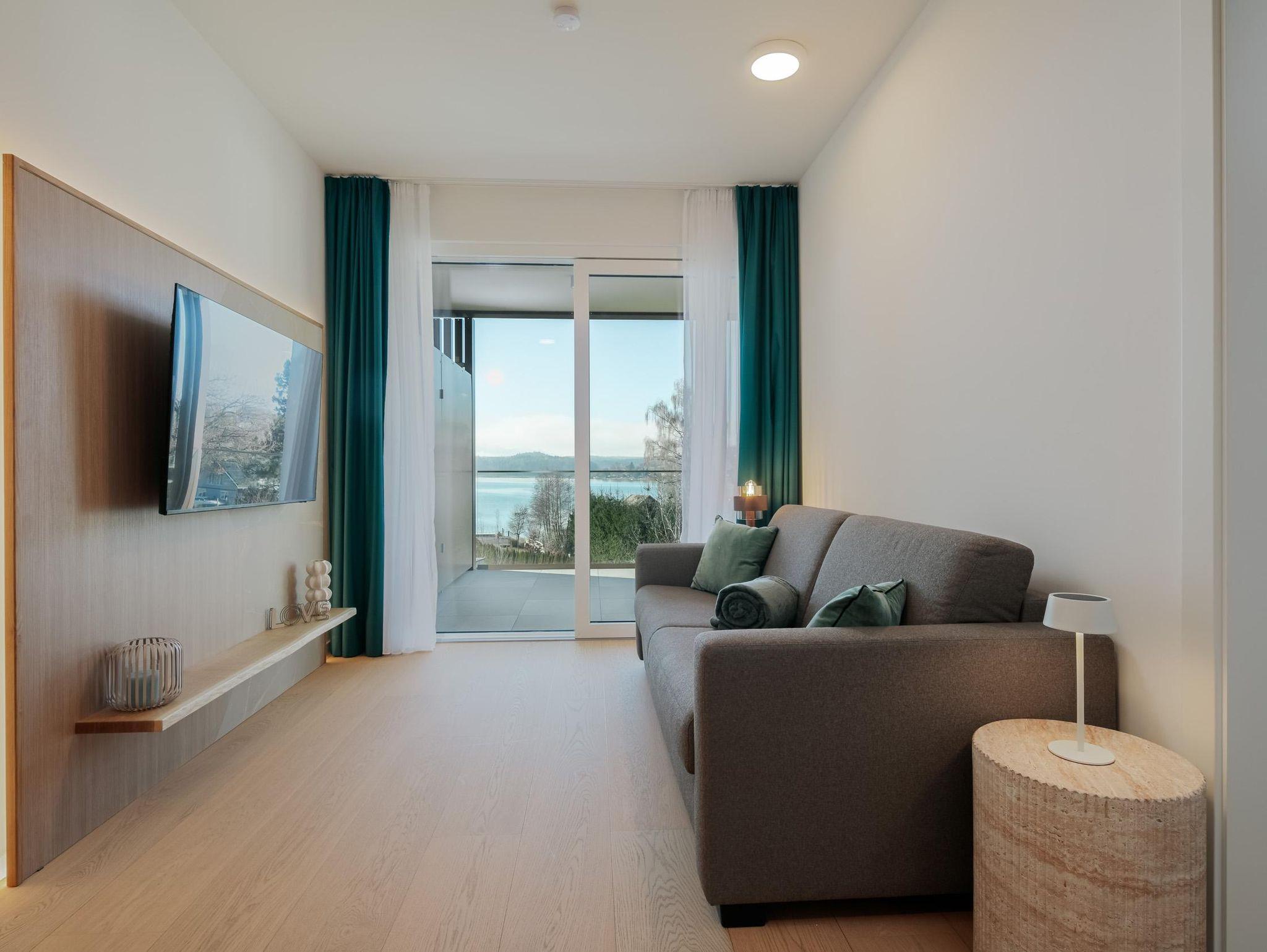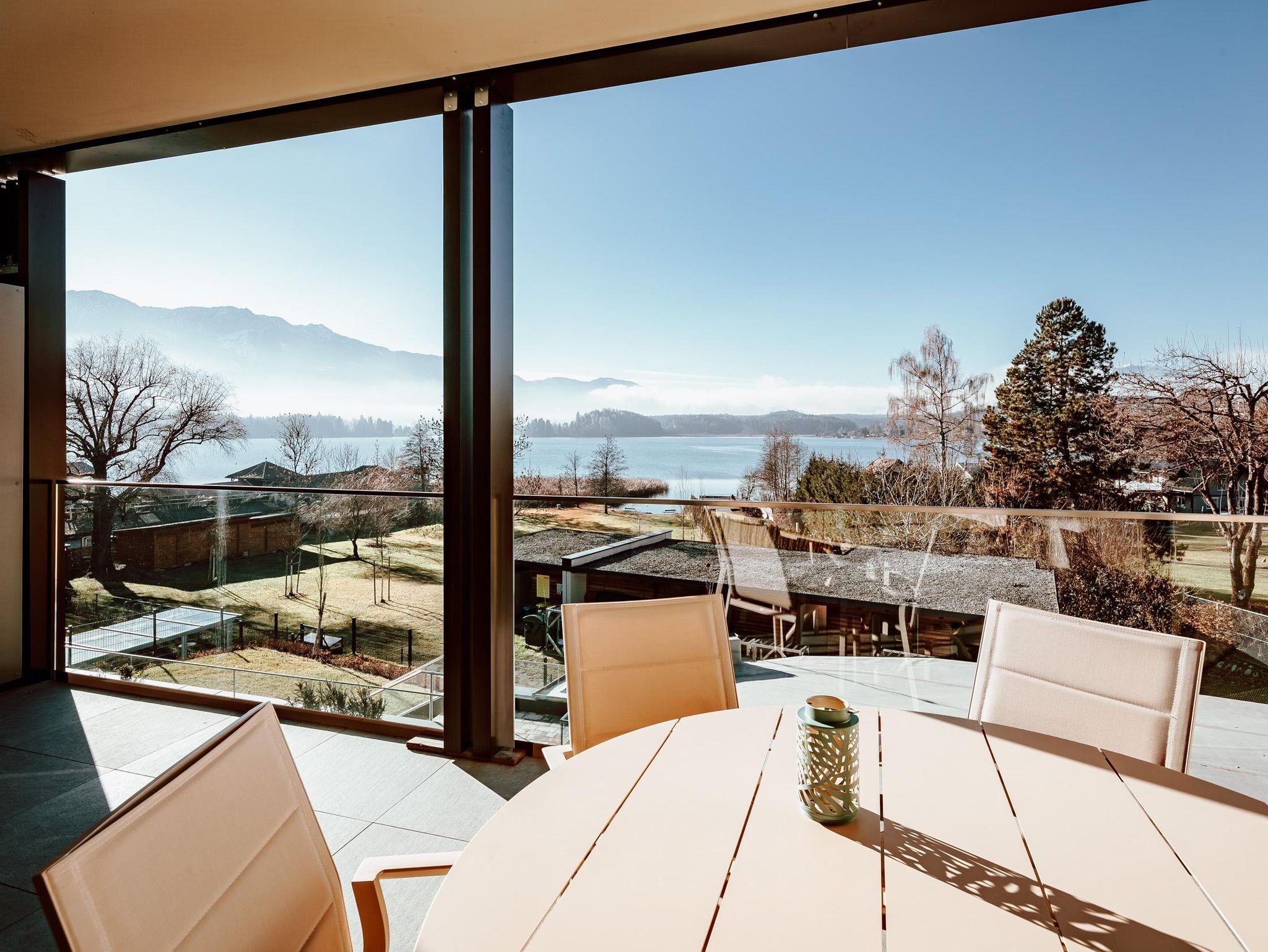 Diese nagelneue, modern eingerichtete Ferienwohnung befindet sich direkt am Faaker See mit traumhaftem Blick auf den See und die Berge. Ein öffentlicher Seezugang mit Liegewiese und natürlichem Schatten befindet sich direkt vor dem Haus. Eine voll ausgestattete Küche, ein gemütliches Schlafzimmer, ein Wohnzimmer mit Ausziehcouch, zwei große SmartTV Geräte, Klimaanlage, kostenloses Wifi, Badezimmer stehen unseren Gästen zur Verfügung. Für Entspannung sorgt eine private Infrarotkabine für 2 Personen. Besonders schön ist es den Sonnenuntergang von der eigenen großen Terrasse aus zu genießen. Das Apartment ist der perfekte Ausgangsort für Sommer/Wintersport, Radtouren und Wanderungen in der Kärntner Seenregion. Die Stadt Villach ist sowohl mit öffentlichen Verkehrsmitteln als auch mit dem Auto schnell erreichbar und bietet ein großes Angebot an Kultur und Einkaufsmöglichkeiten. Von der Tiefgarage mit E-Ladestation gelangen Sie mit dem Aufzug bequem bis zum Apartment im 1.Stock, ein Supermarkt und mehrere Restaurants sind zu Fuß erreichbar.