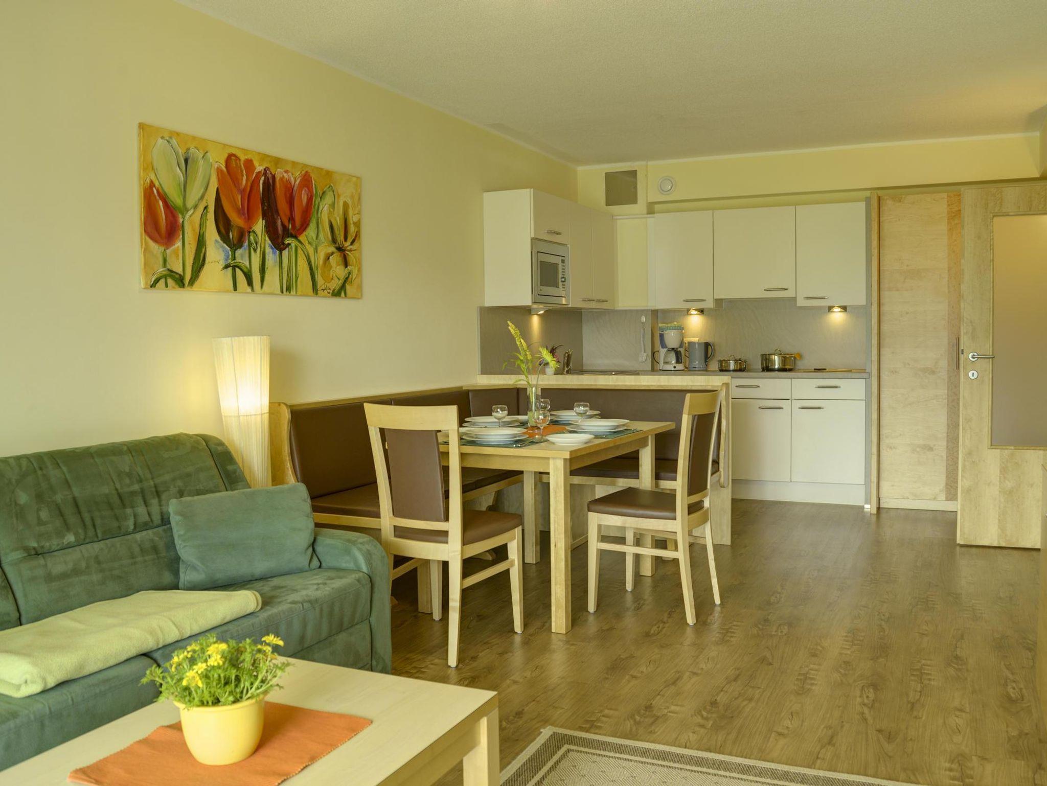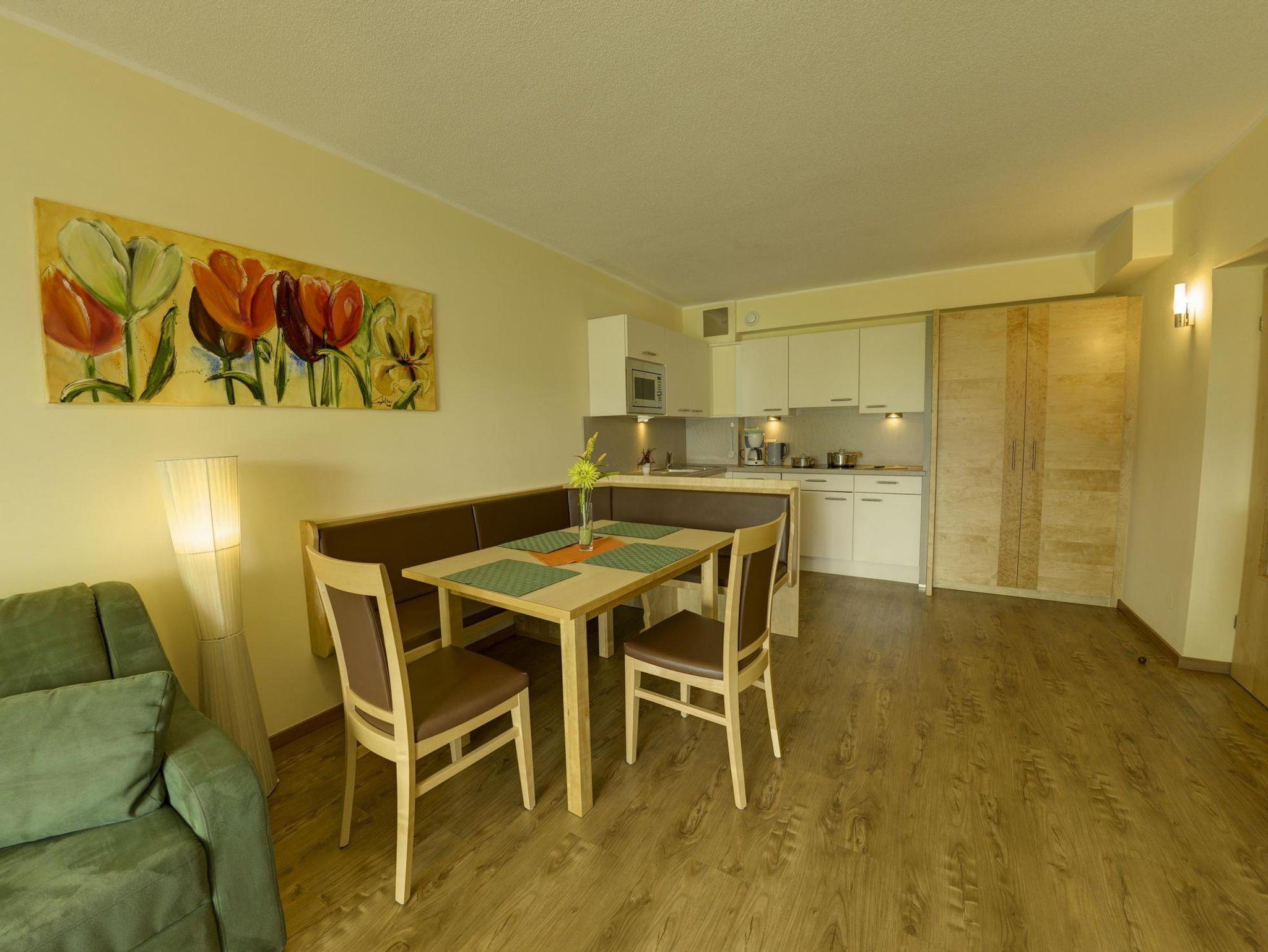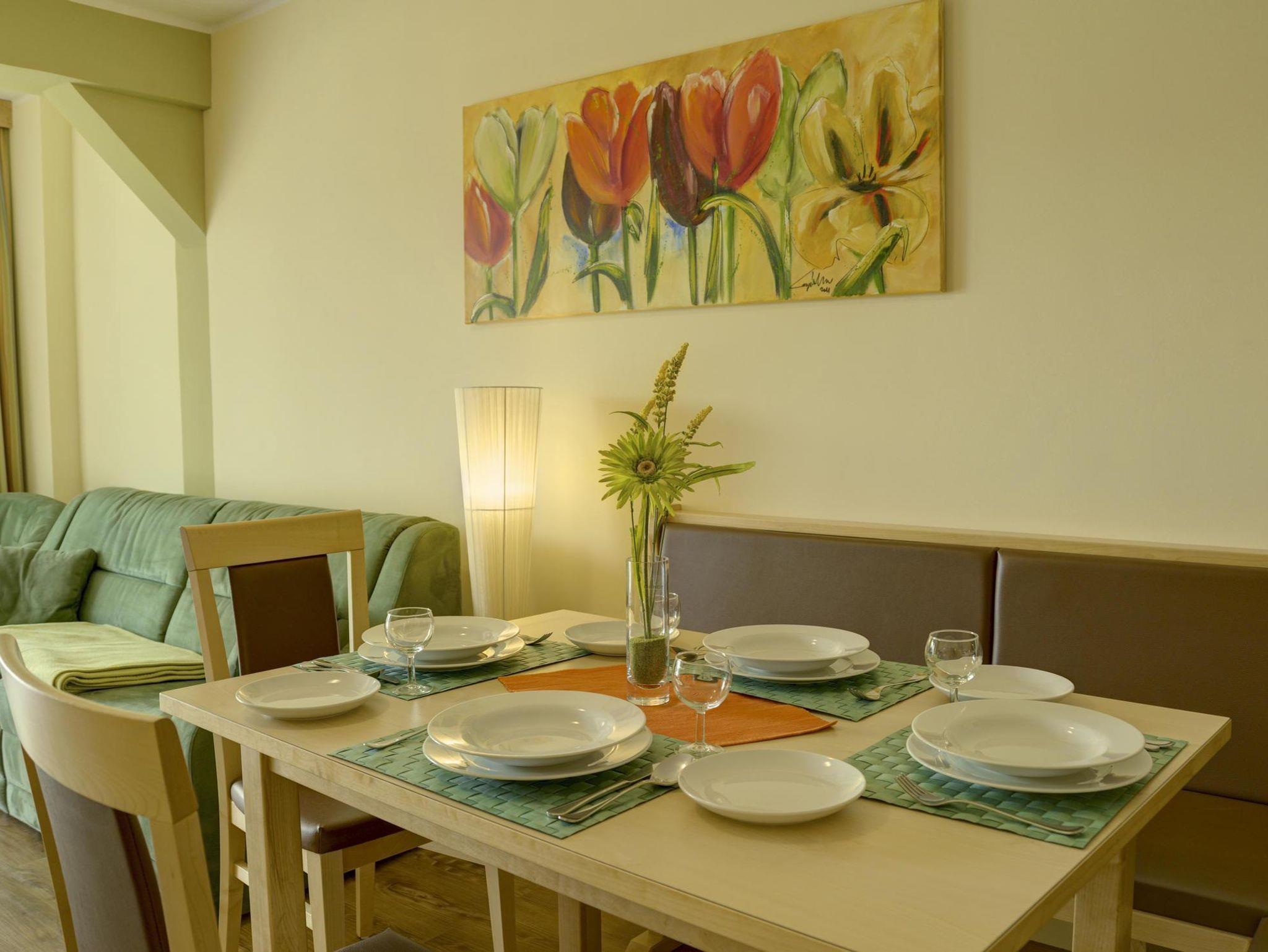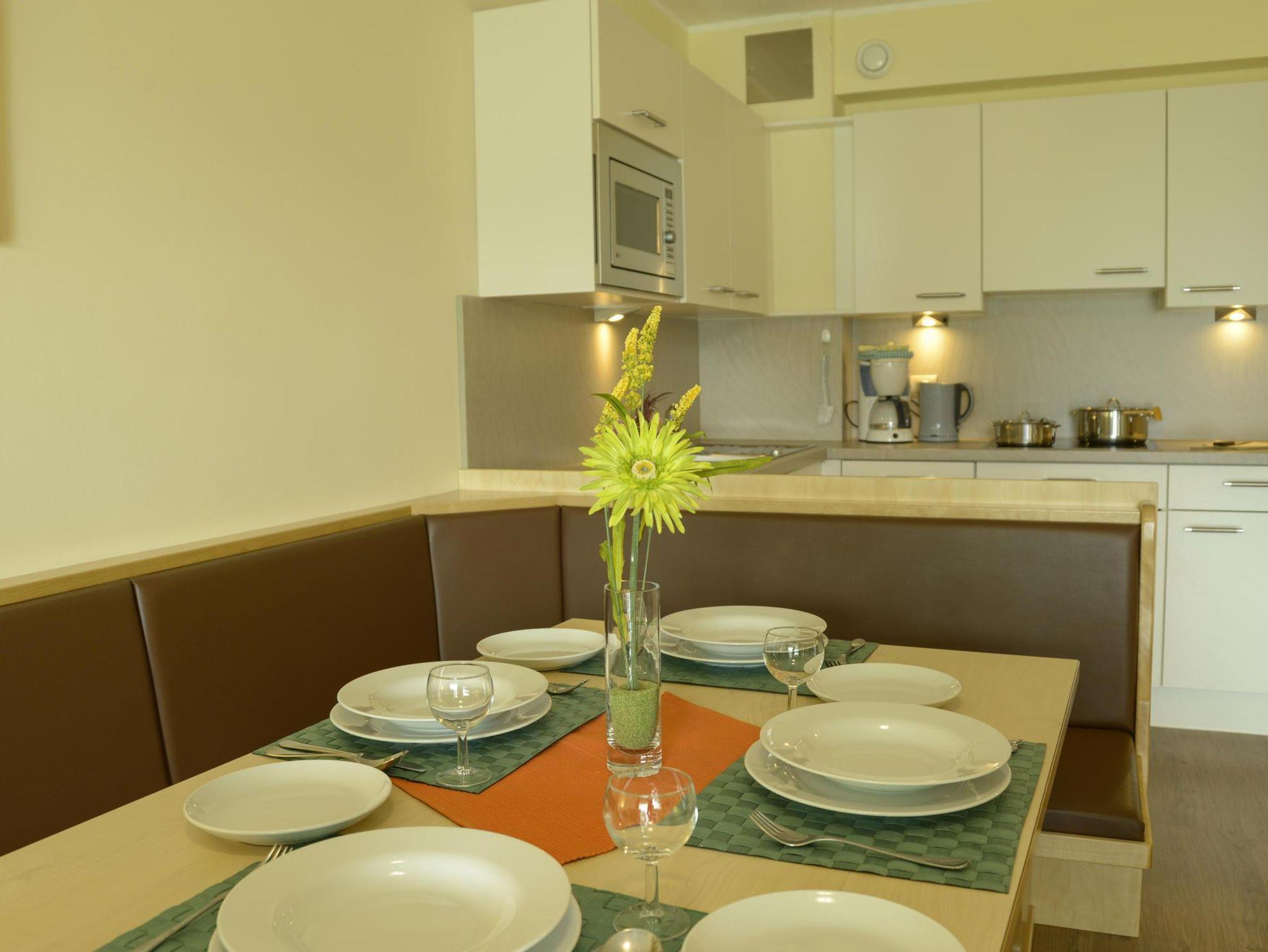 Die Appartements sind wirklich komplett eingerichtet -Geschirr, Bettwäsche, Handtücher, Haustelefon, Kühlschrank, Balkon mit Seeblick, Radio, Liegestühle - es ist alles für Sie da!