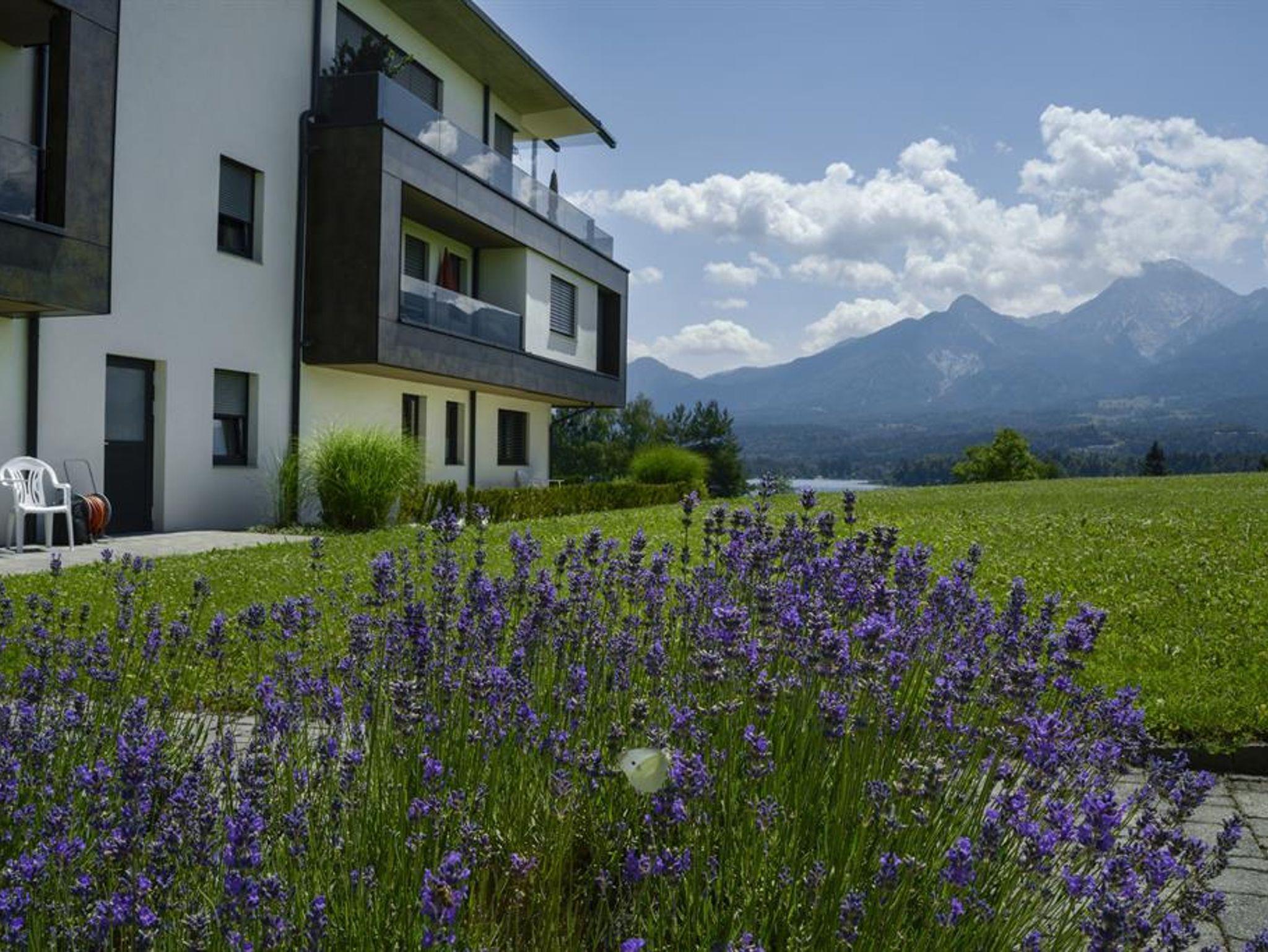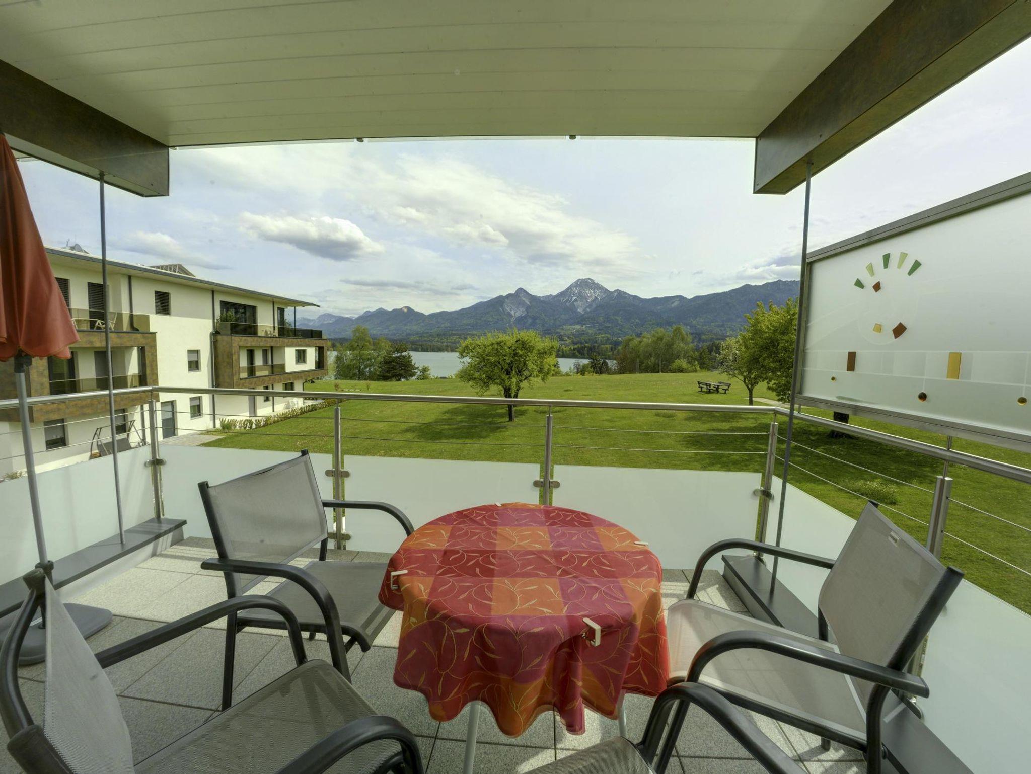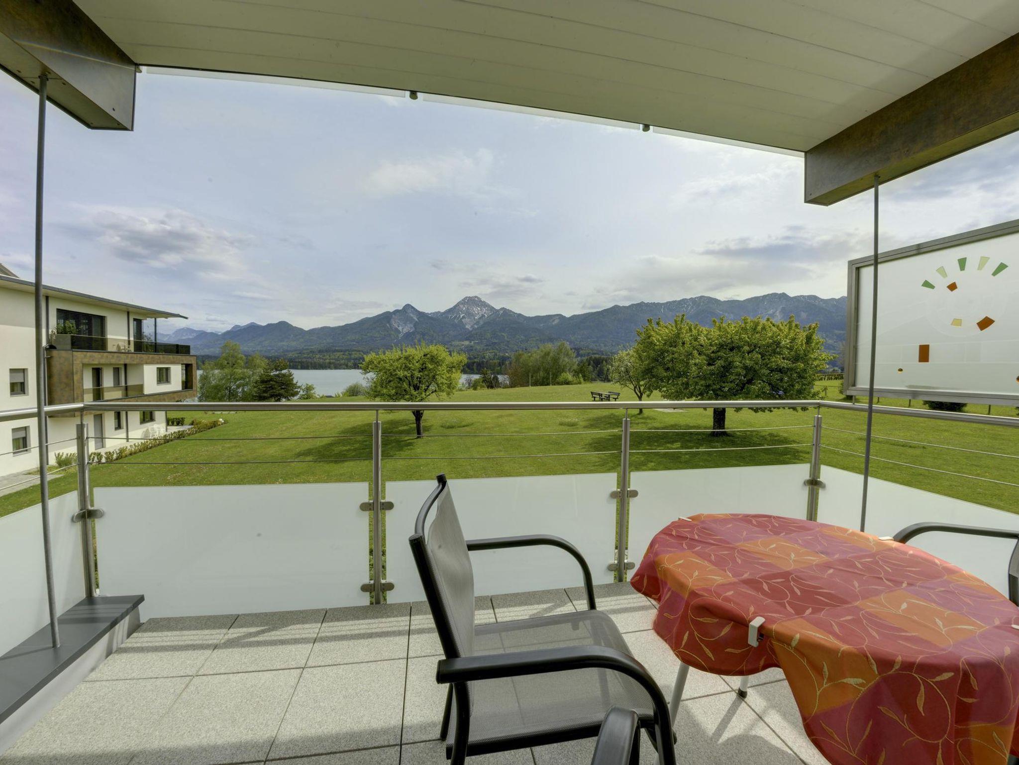 Komplett neue Ferienwohnung im Haus Mittagskogel mit Wohnschlafraum + 1 großes Schlafzimmer, Südterrasse und Seeblick, herrlicher Panoramablick, im 1. Obergeschoss, modern eingerichtet mit hellen Holzmöbeln und Holzböden, große Dusche, separates WC, groß Küche mit Geschirrspüler und Mikrowelle, Bett- und Tischwäsche, Handtücher, Haustelefon, Radio, Sat-TV in jedem Zimmer, WLAN, Safe, Sonnenschirm ...