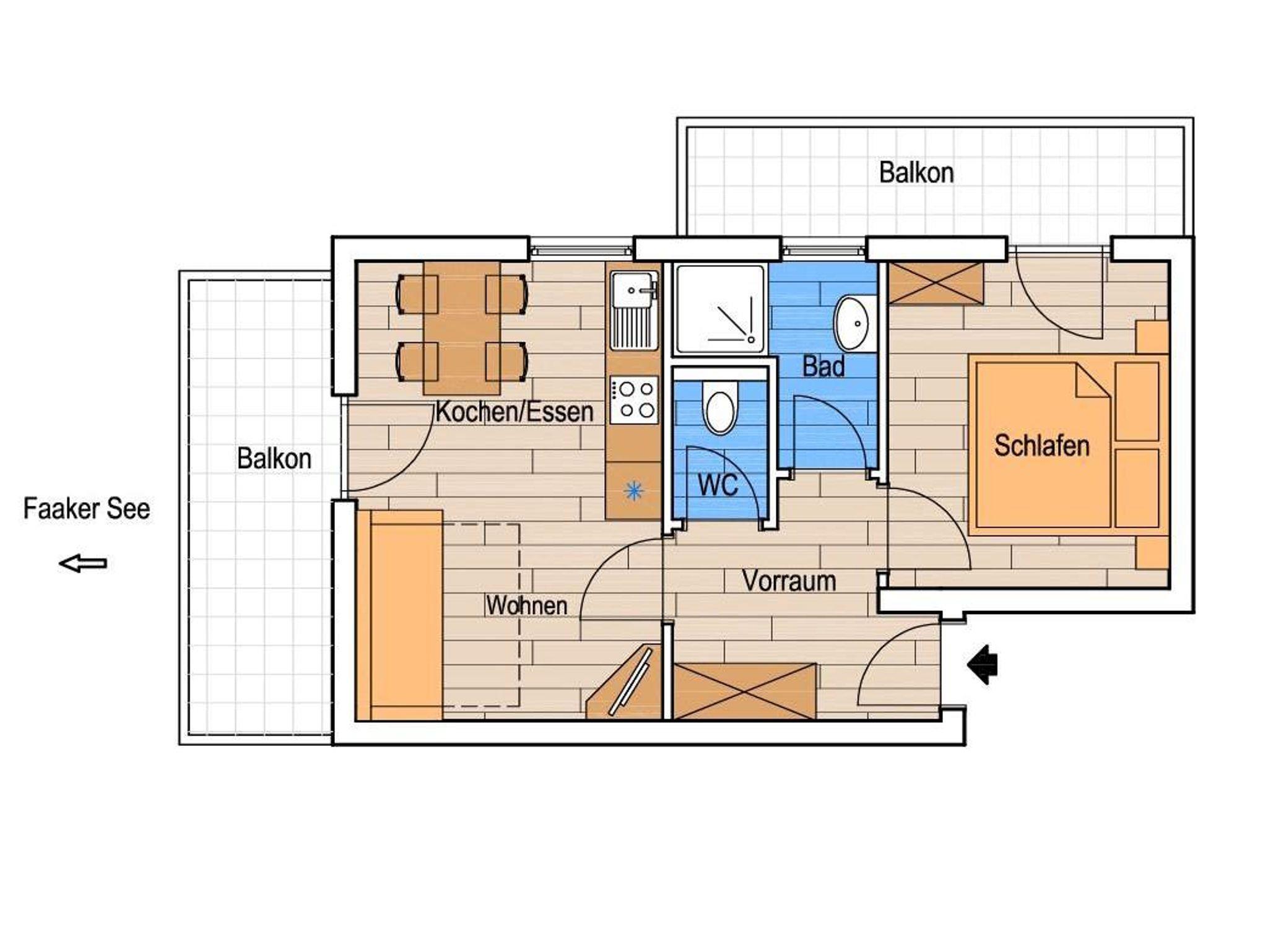 Unsere Ferienwohnungen im Haus 2, sind mit 1 - 2 Schlafräumen, 1 Wohnraum, Kochnische - komplett eingerichtet mit Geschirrspüler Backrohr, Ceranfeld,Wasserkocher und Kaffeefiltermaschine, Dusche WC, Sat-TV, gratis WLAN und Balkon. Bade- und Handtücher, Bett und Tischwäsche sind vorhanden. Eigener Badestrand!