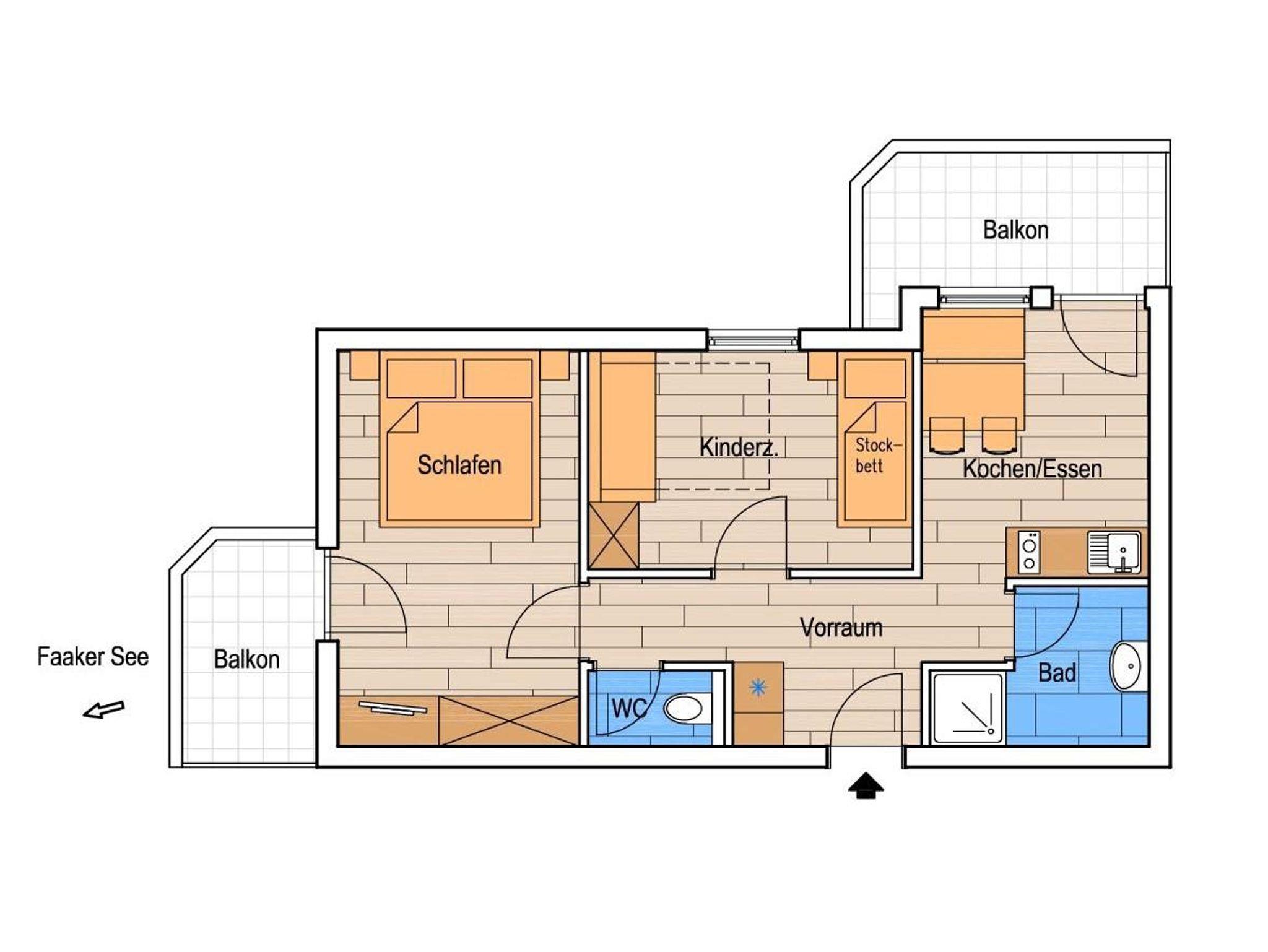 Unsere Ferienwohnungen im Haus 2, sind mit 1 - 2 Schlafräumen, 1 Wohnraum, Kochnische - komplett eingerichtet mit Geschirrspüler Backrohr, Ceranfeld,Wasserkocher und Kaffeefiltermaschine, Dusche WC, Sat-TV, gratis WLAN und Balkon. Bade- und Handtücher, Bett und Tischwäsche sind vorhanden. Eigener Badestrand!