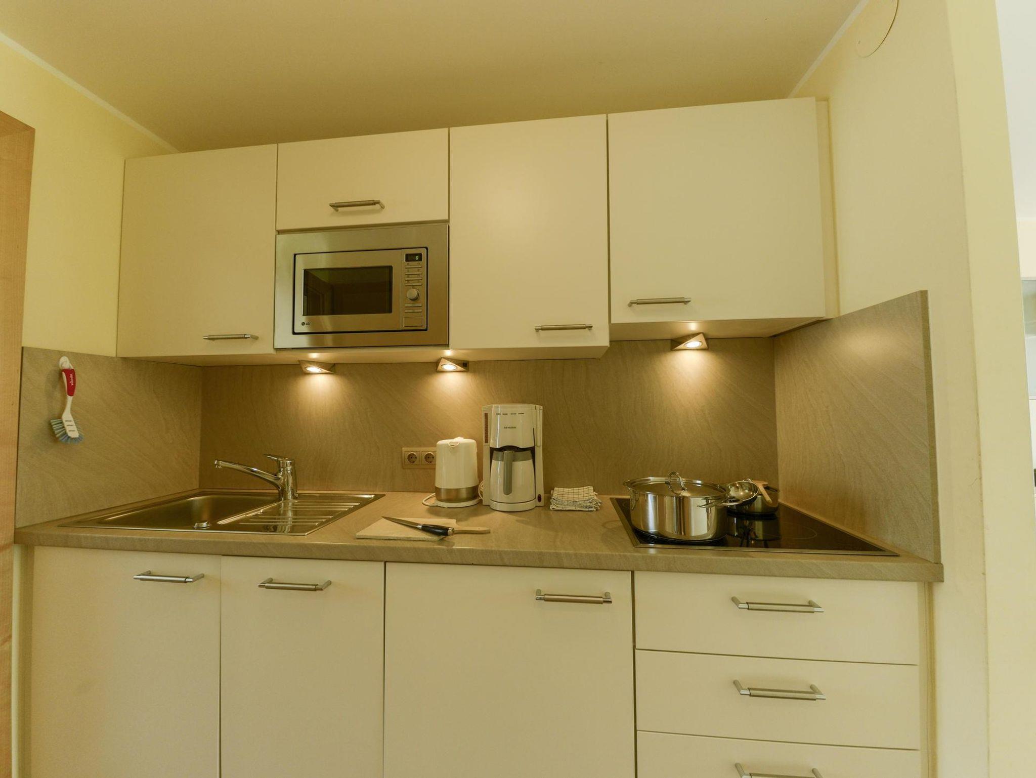 Die Appartements sind wirklich komplett eingerichtet -Geschirr, Bettwäsche, Handtücher, Haustelefon, Kühlschrank, Balkon mit Seeblick, Radio, Liegestühle - es ist alles für Sie da!
