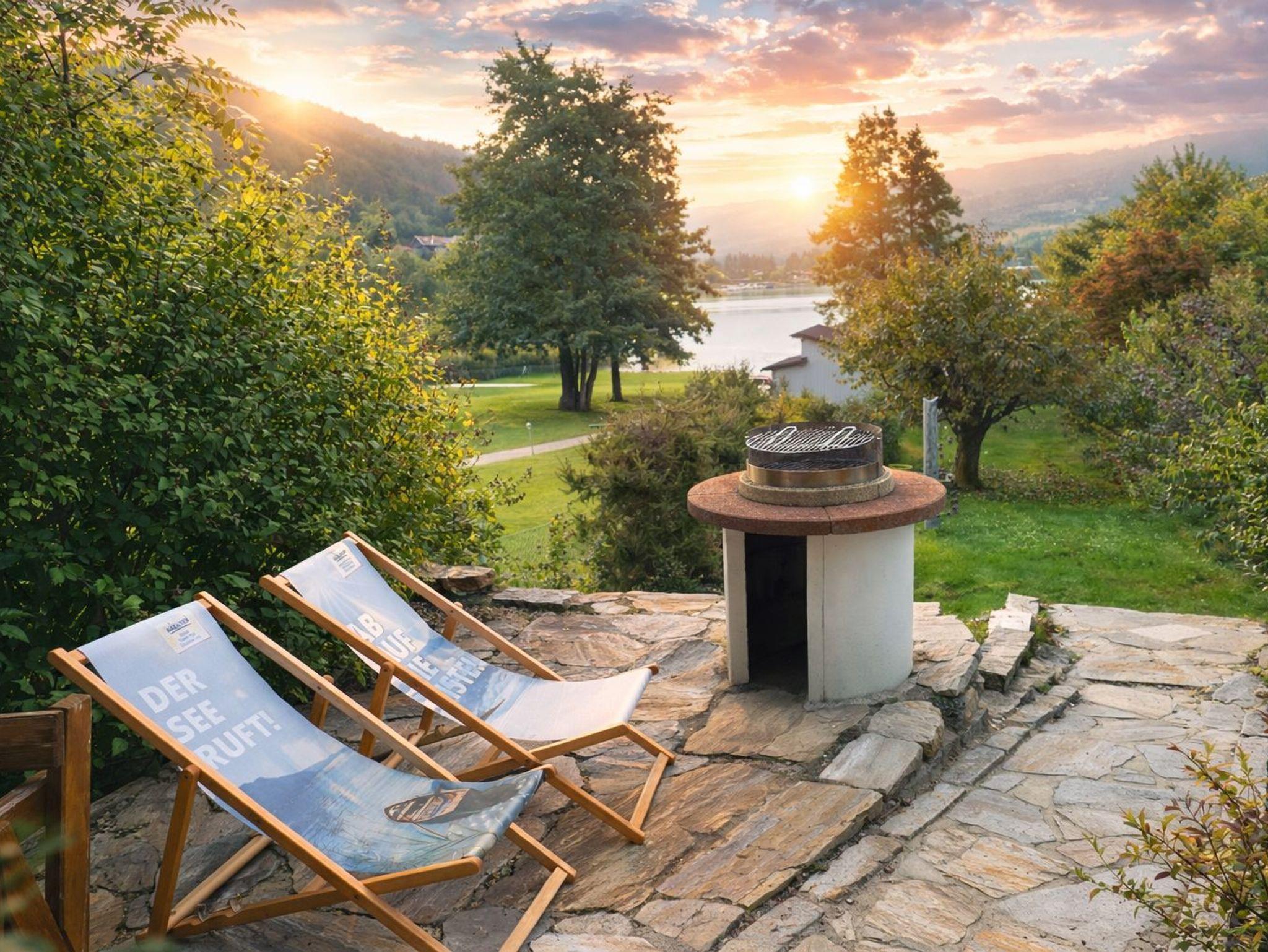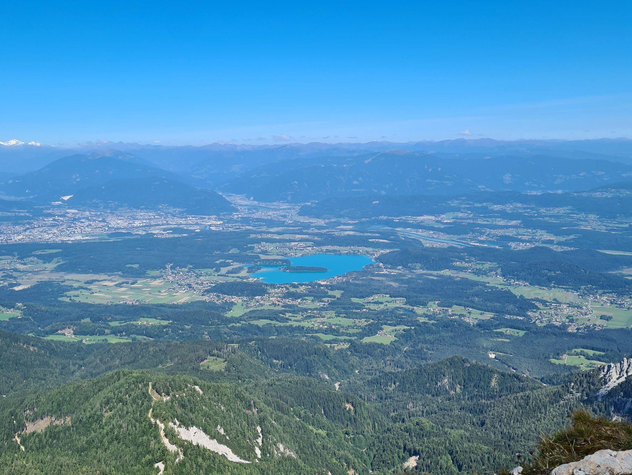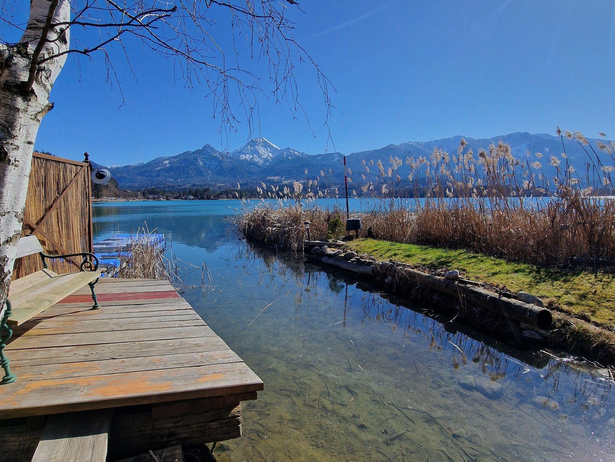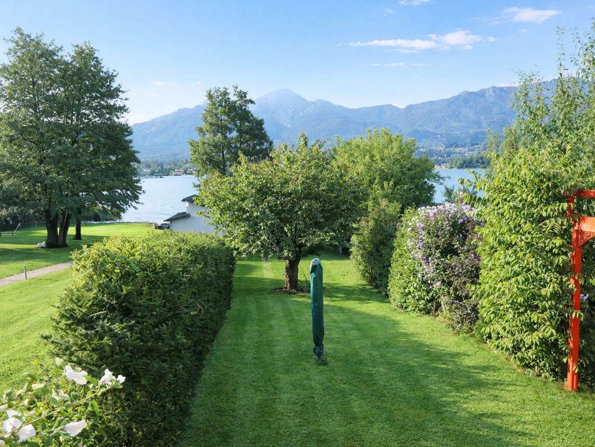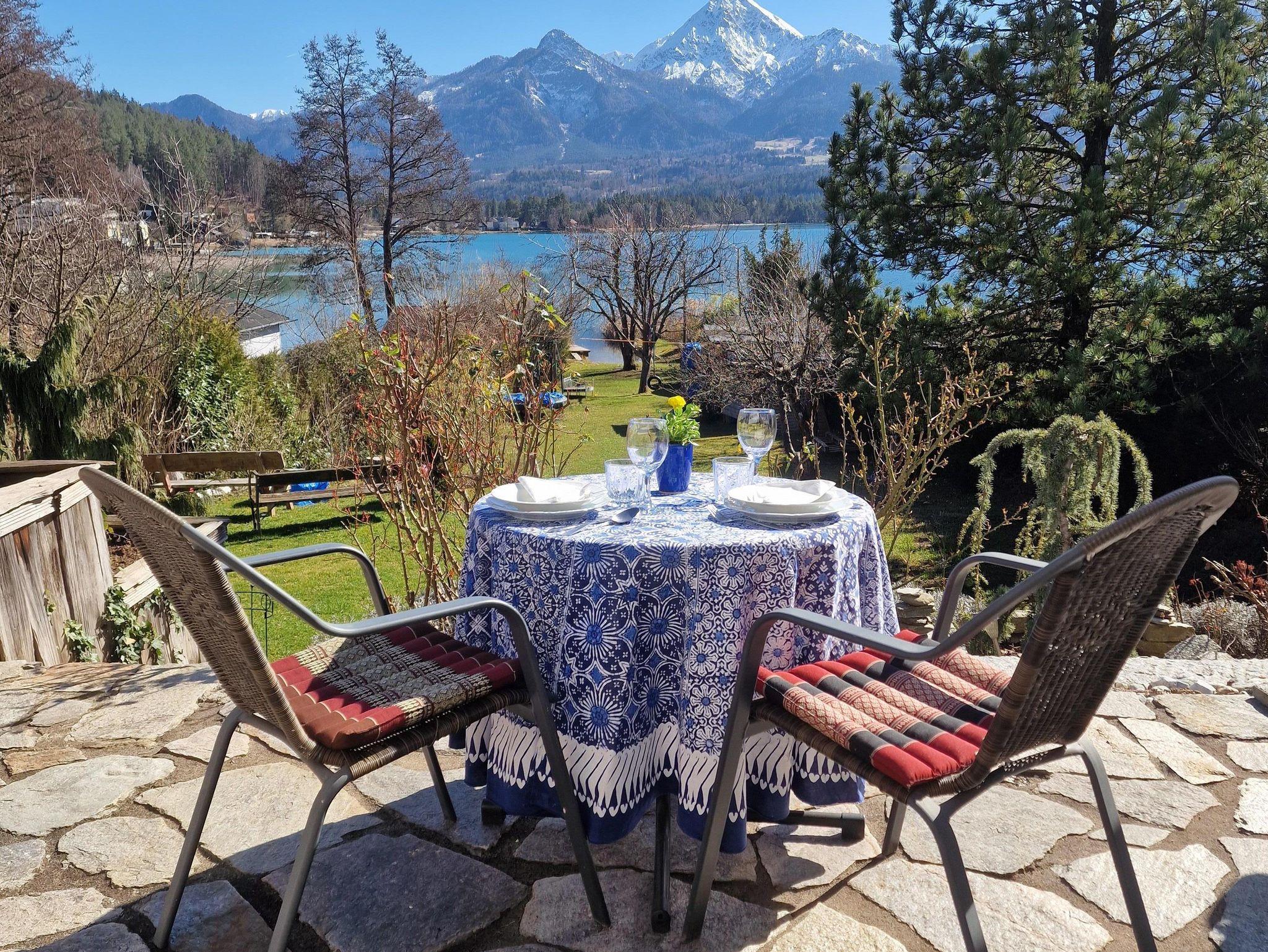Von der Terrasse aus haben Sie einen herrlichen Blick auf die Karawanken mit dem majestätischen Mittagskogel, der über dem türkisblauen Wasser des Sees thront. Diese Aussicht macht den Aufenthalt besonders erholsam und unvergesslich.