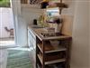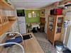 Vom überdachten Parkplatz gelangt man von außen zum Eingang der Wohneinheit. Der Eingangsbereich ist gleichzeitig die Küche mit einem kleinen Essbereich. Die Küche ist zweckmäßig eingerichtet und bietet den Komfort einer Singleküche.