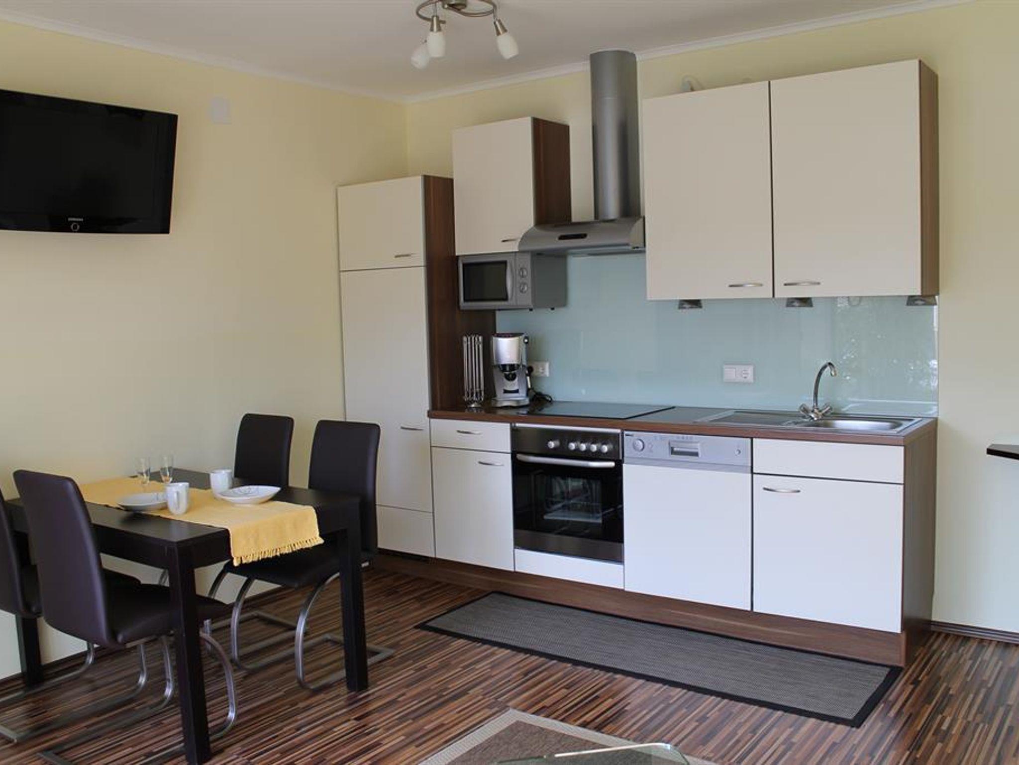 Komplett eingerichtet mit 1 Schlafraum, 1 Wohn-Schlaf-Essraum,Küchenzeile mit E-Herd ,Backrohr,Geschirrspüler, Küklschrank mit Gefrierfach,Geschirr,Filter und TABS Kaffeemaschine, Wasserkocher, Toaster, Eierkocher....SAT TV. WLAN -kostenlos: