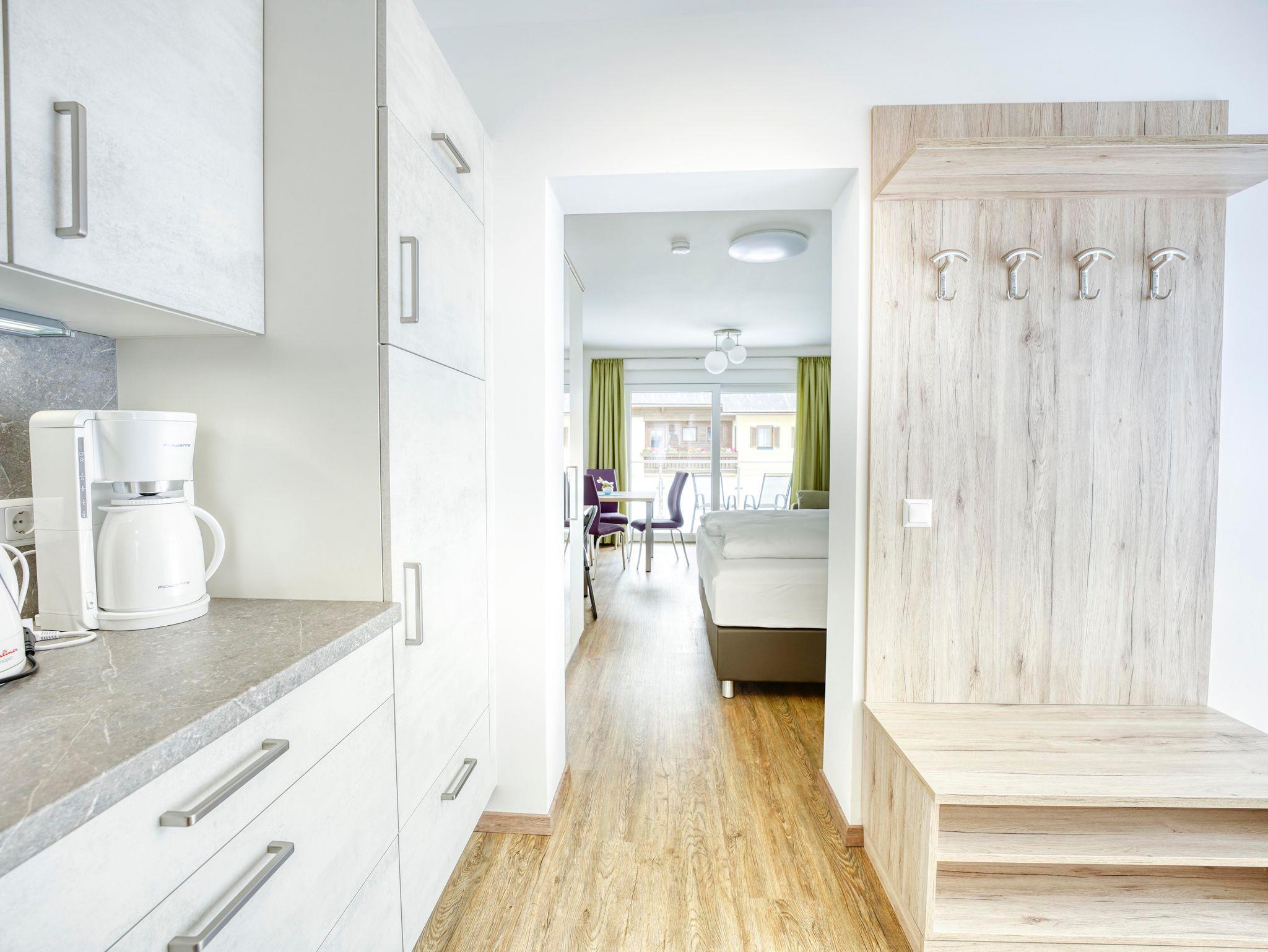 Unsere Ferienwohnung im Haus 1, ist mit 1 Wohnschlafraum, Küchenzeile - komplett eingerichtet mit Geschirrspüler Backrohr, Ceranfeld, Wasserkocher, Toaster und Kaffeefiltermaschine, Dusche, WC, Sat-TV, gratis WLAN und Balkon. Bade- und Handtücher, Bett und Tischwäsche sind vorhanden. Eigener Badestrand!