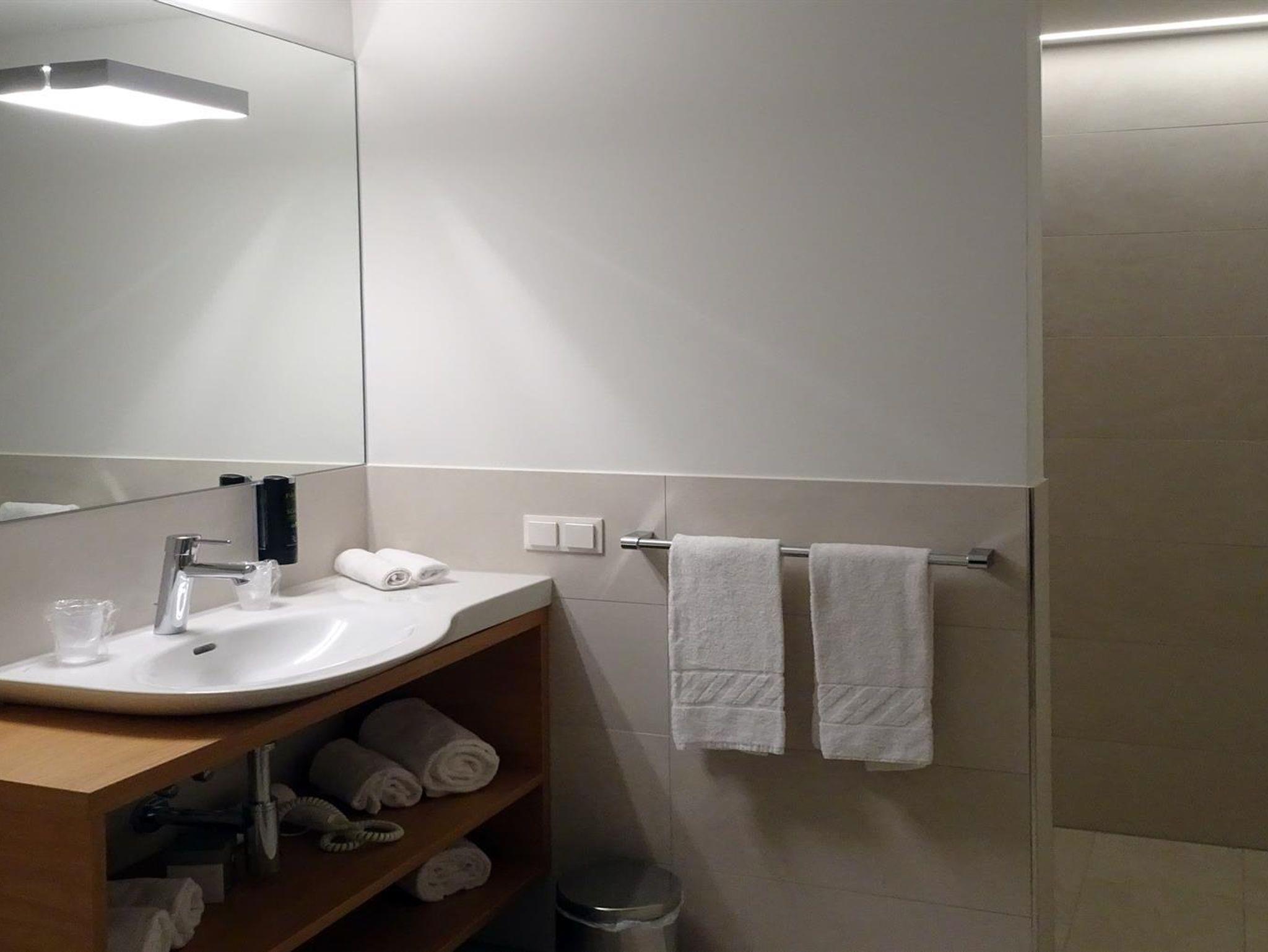 Die verfliesten Bäder verfügen zusätzlich über einen Heizkörper zur Trocknung der Handtücher und Textilien.