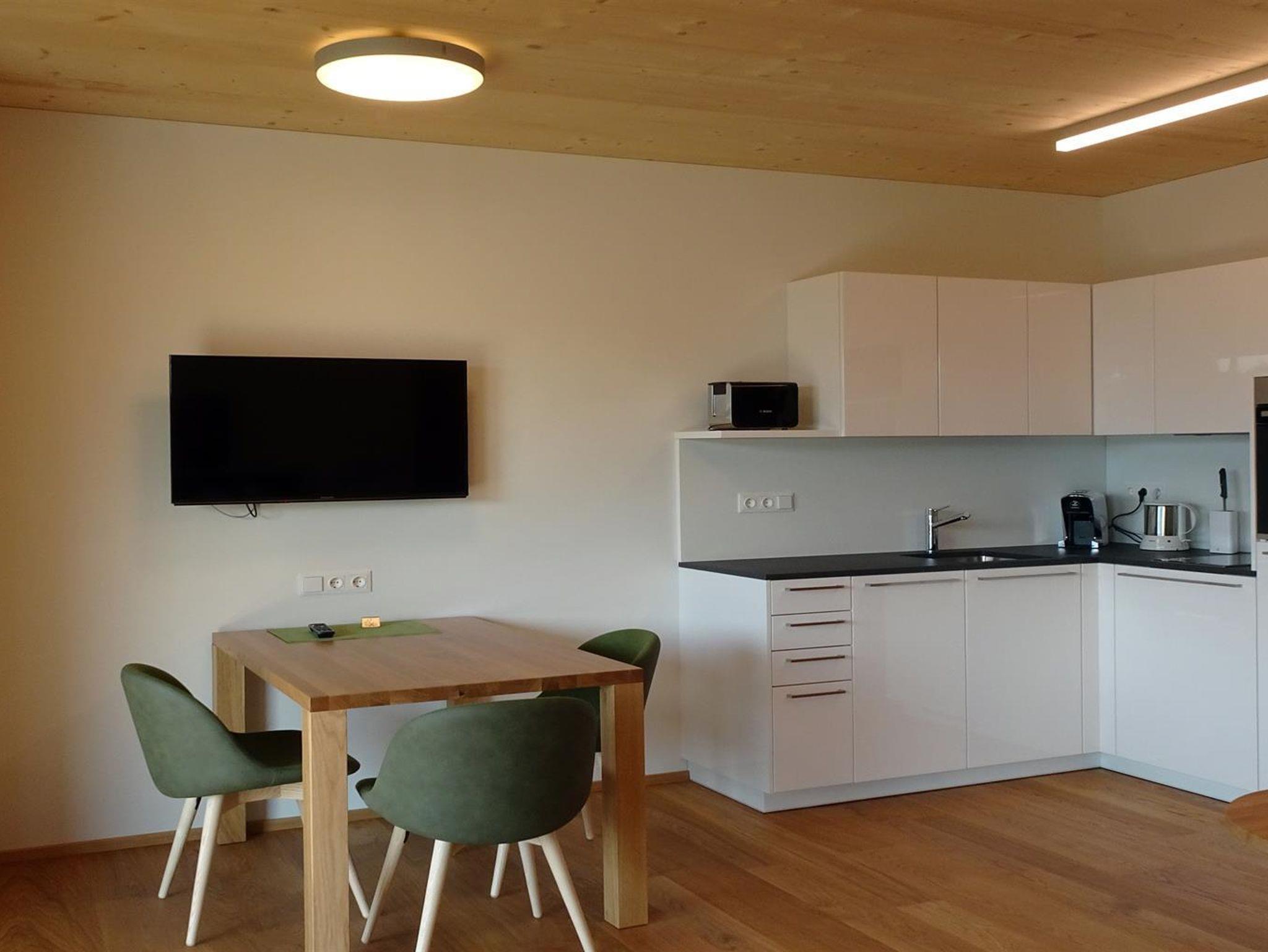 Alle Wohnungen verfügen über eine hochwertige Ausstattung mit individuell designten Eichenholzmöbeln, Küchen mit Steinplatten und bündigem Ceran-Kochfeld, Kühlschrank, Backrohr, Geschirrspüler, etc.
